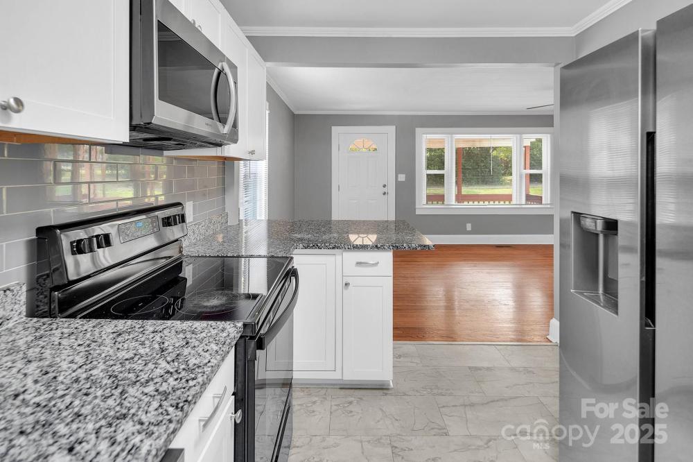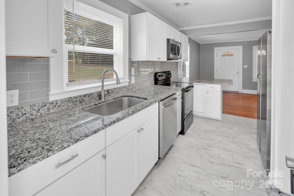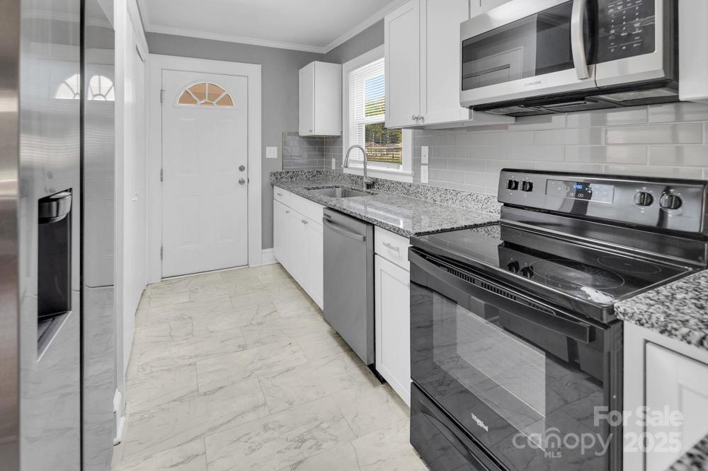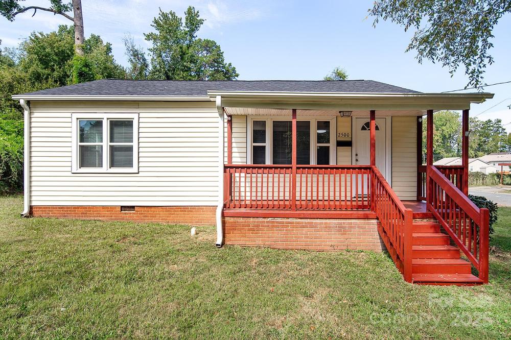 This FULLY RENOVATED 3-bedroom, 1-bathroom home is move-in ready with modern upgrades throughout. Gourmet kitchen features white shaker cabinets, granite countertops, stainless steel appliances, and a new front-load washer and dryer behind closet doors. Updated bathroom includes a new tub/shower, stylish sink/vanity, and open shelving for storage. Beautifully restored hardwood floors in all 3 bedrooms and living room, and durable luxury vinyl plank in the kitchen and bath. New water heater, HVAC and ductwork ensure efficiency and comfort. Enjoy the outdoors on your front and rear covered porches, spacious .17 acre corner lot with lush lawn, and new gravel parking (enter from Willow St). Located just 10 minutes from CLT Airport, SouthEnd, and Uptown, with a prestigious Country Club across the street. Surrounded by new builds averaging 300K, this 999 sqft home at 2500 Old Steele Creek Rd delivers exceptional value in a thriving neighborhood. Schedule a private tour with "Showing Time" today to experience this updated gem.