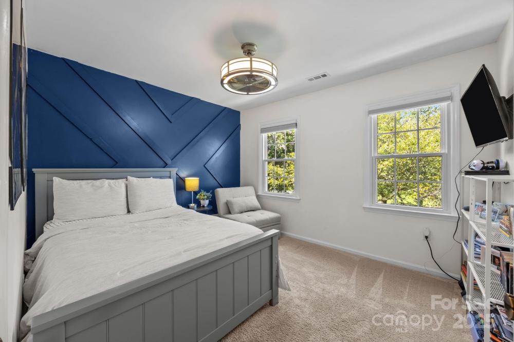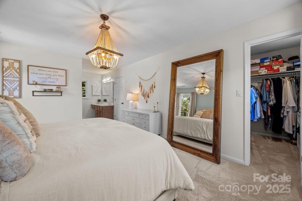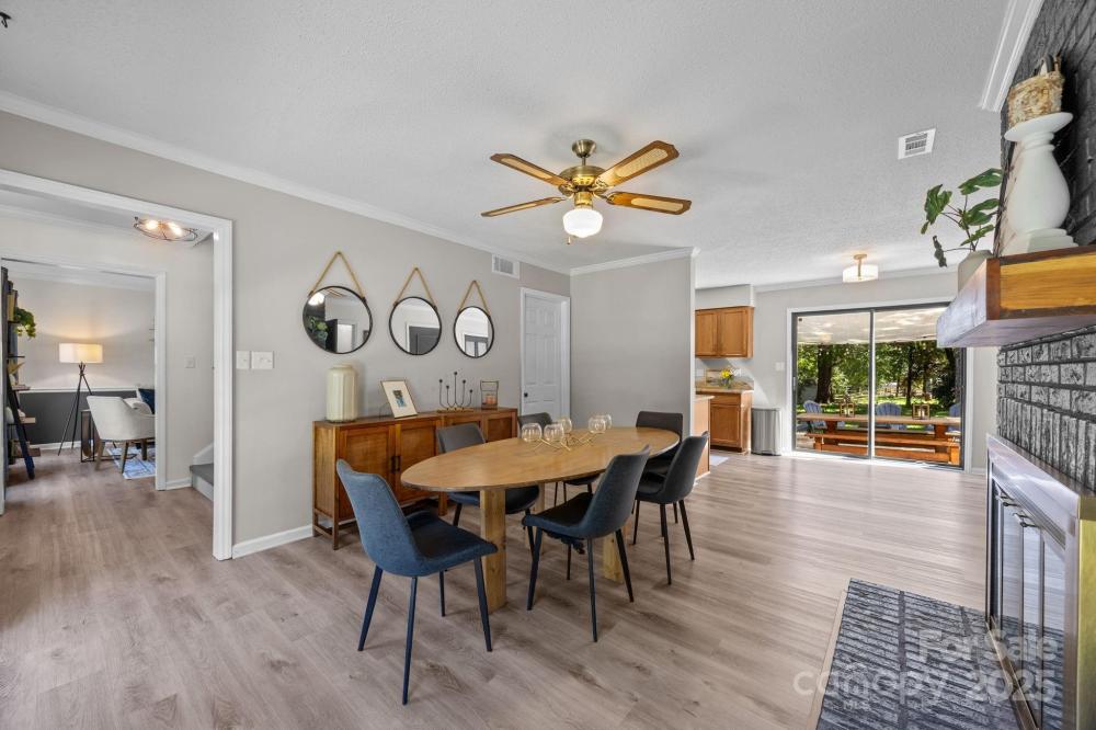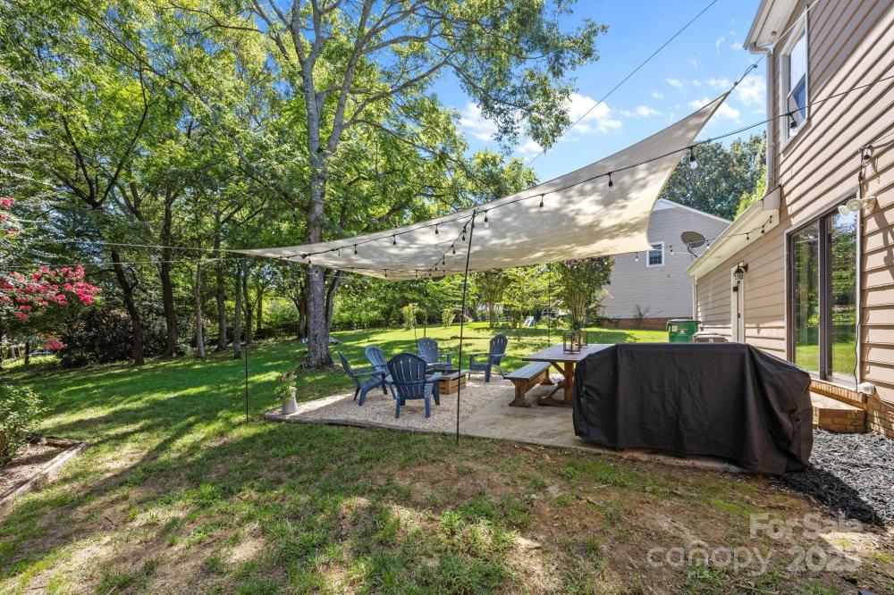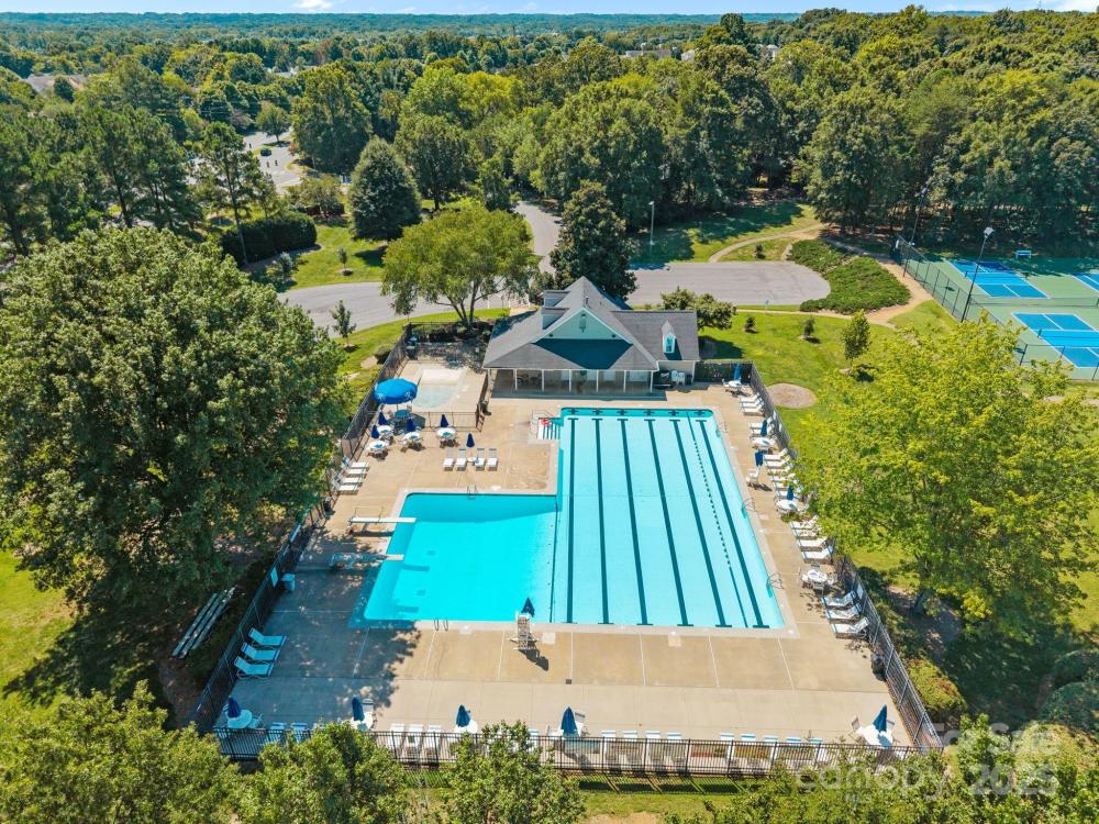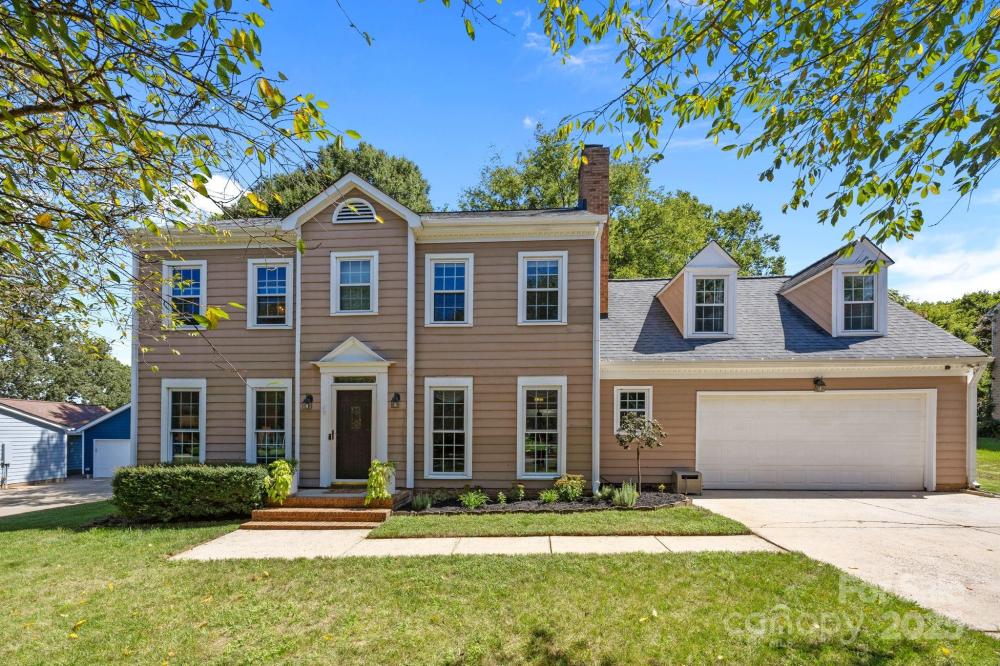 An Absolute Charmer and one of THE BEST deals for this zip code! Located in the sought after community of Raeburn featuring 4BR, 2.5BA, an elegant living room, office or den, a galley kitchen with a breakfast bar, a walk in pantry with wood shelving, also enjoy a dining space with a cozy fireplace and a breakfast area. Upstairs you will find a spacious Primary BR boasting his and her closets and a beautiful chandelier elevating the space, a single vanity, a private walk in shower and water closet area, an updated hall bath with wallpaper, plus feature walls in 2 of the secondary BRs, a huge bonus room or 4th BR with 2 walk in closets and walk in storage, a pull down attic with storage with ample storage. Extras include new LVP flooring throughout, designer lighting, upgraded fans, a modern rod iron railing at the stairwell, new paint throughout, an updated powder bath with wallpaper, a first floor laundry room, an oversized 2 car garage with built in storage and cabinets, 2020 AC and Furnace. Outside highlights this home's private, wooded lot with a large back patio, an awning, stringed lights, a firepit, a huge backyard with lots of possibilities, upgraded landscaping, a playhouse (as is condition) and more! And of course, location, location, location! Walk or bike to Blakeney, minutes from Stonecrest, Piper Glen, I-485, restaurants, and retail. Don't miss the beautiful community pool, tennis, pickleball, ball fields, playgrounds, sidewalks and mature trees throughout the community! This is the one!!
