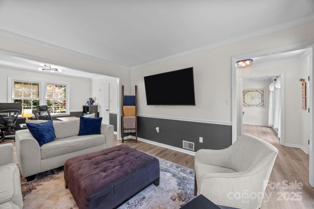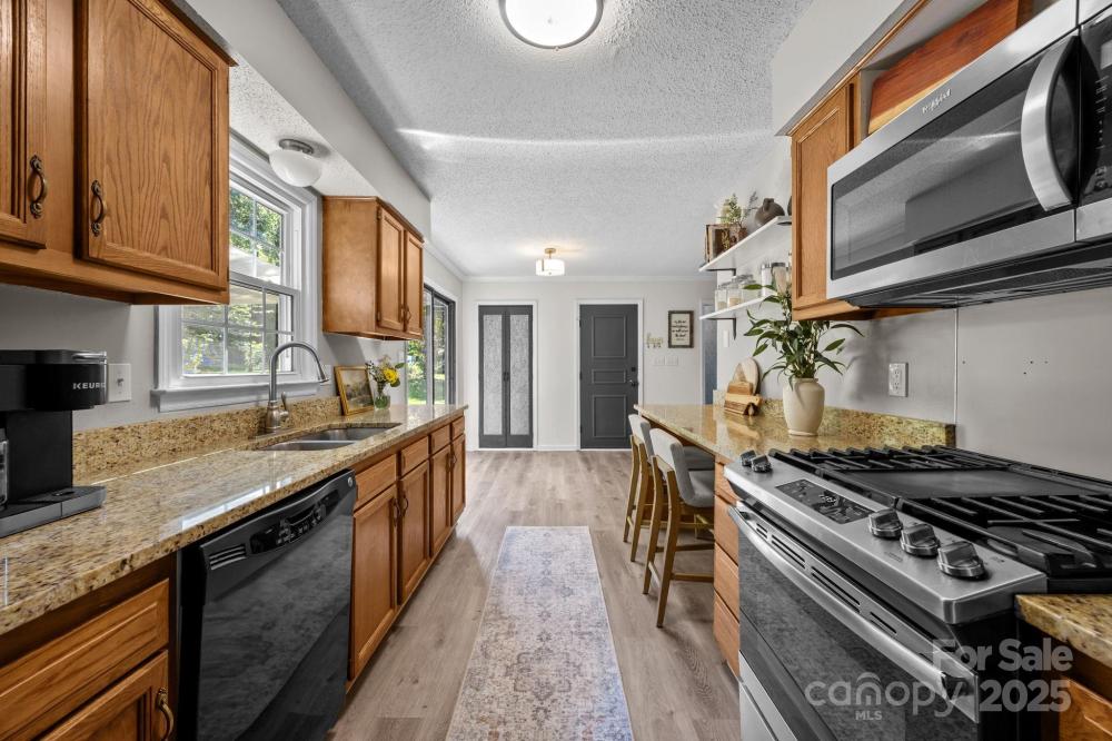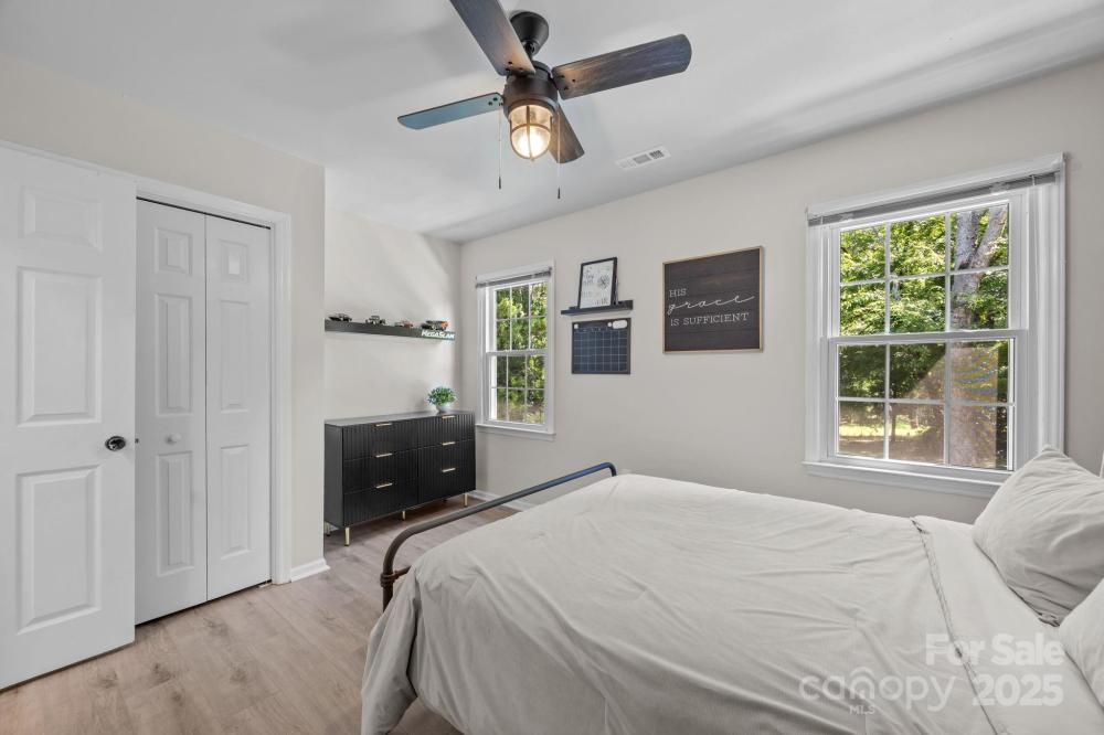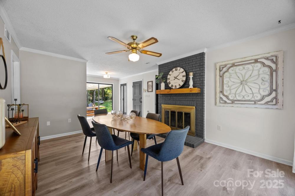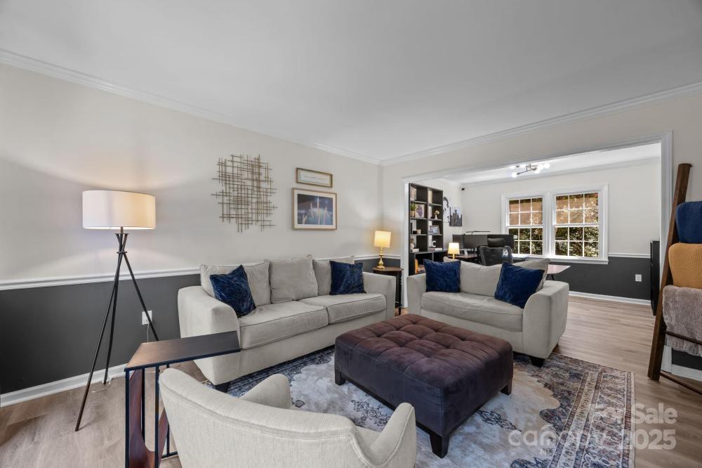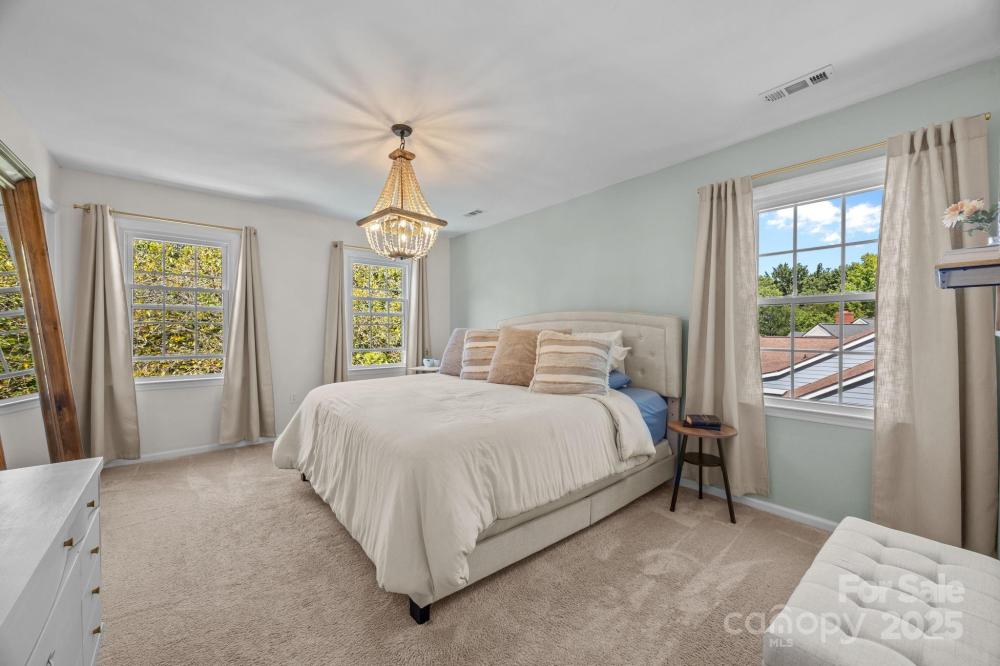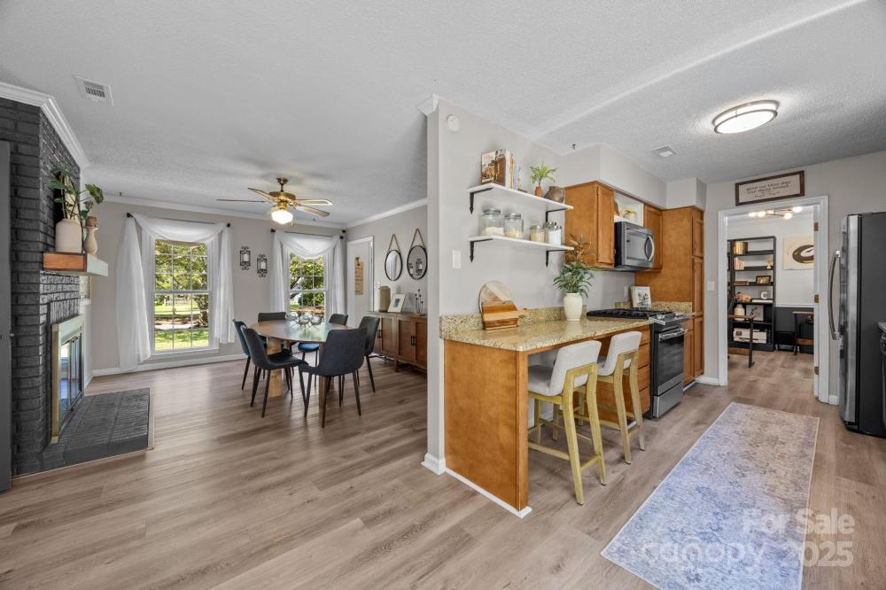 An Absolute Charmer and one of THE BEST deals for this zip code! Located in the sought after community of Raeburn featuring 4BR, 2.5BA, an elegant living room, office or den, a galley kitchen with a breakfast bar, a walk in pantry with wood shelving, also enjoy a dining space with a cozy fireplace and a breakfast area. Upstairs you will find a spacious Primary BR boasting his and her closets and a beautiful chandelier elevating the space, a single vanity, a private walk in shower and water closet area, an updated hall bath with wallpaper, plus feature walls in 2 of the secondary BRs, a huge bonus room or 4th BR with 2 walk in closets and walk in storage, a pull down attic with storage with ample storage. Extras include new LVP flooring throughout, designer lighting, upgraded fans, a modern rod iron railing at the stairwell, new paint throughout, an updated powder bath with wallpaper, a first floor laundry room, an oversized 2 car garage with built in storage and cabinets, 2020 AC and Furnace. Outside highlights this home's private, wooded lot with a large back patio, an awning, stringed lights, a firepit, a huge backyard with lots of possibilities, upgraded landscaping, a playhouse (as is condition) and more! And of course, location, location, location! Walk or bike to Blakeney, minutes from Stonecrest, Piper Glen, I-485, restaurants, and retail. Don't miss the beautiful community pool, tennis, pickleball, ball fields, playgrounds, sidewalks and mature trees throughout the community! This is the one!!