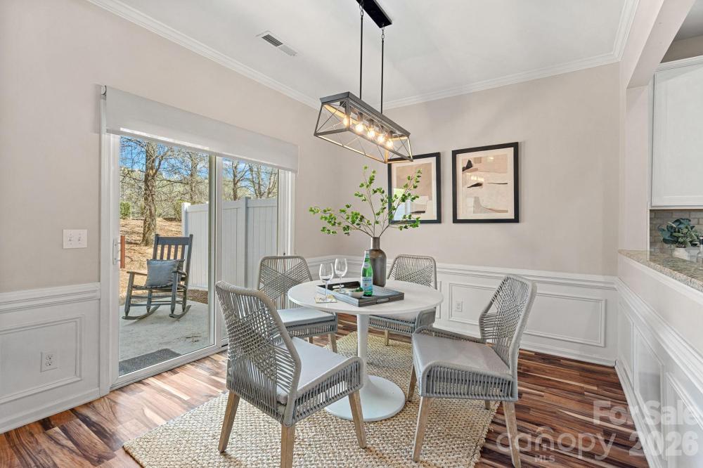 Welcome to this beautifully maintained 3BR/2.5BA townhome in a prime South Charlotte location! The open-concept main level features a spacious living area with a cozy gas fireplace, flowing seamlessly into the dining area and kitchen with granite countertops, gas cooking, and ample cabinetry. Upstairs, the oversized primary suite offers a walk-in closet, dual vanity, and separate tub and shower. Two additional bedrooms, a full bath, and upper-level laundry provide added convenience. Enjoy outdoor living on the private concrete patio—perfect for relaxing or entertaining. Additional highlights include a 2-car garage and low-maintenance living with HOA covering lawn care and access to a community pool. Ideally located near shopping, dining, and everyday conveniences!