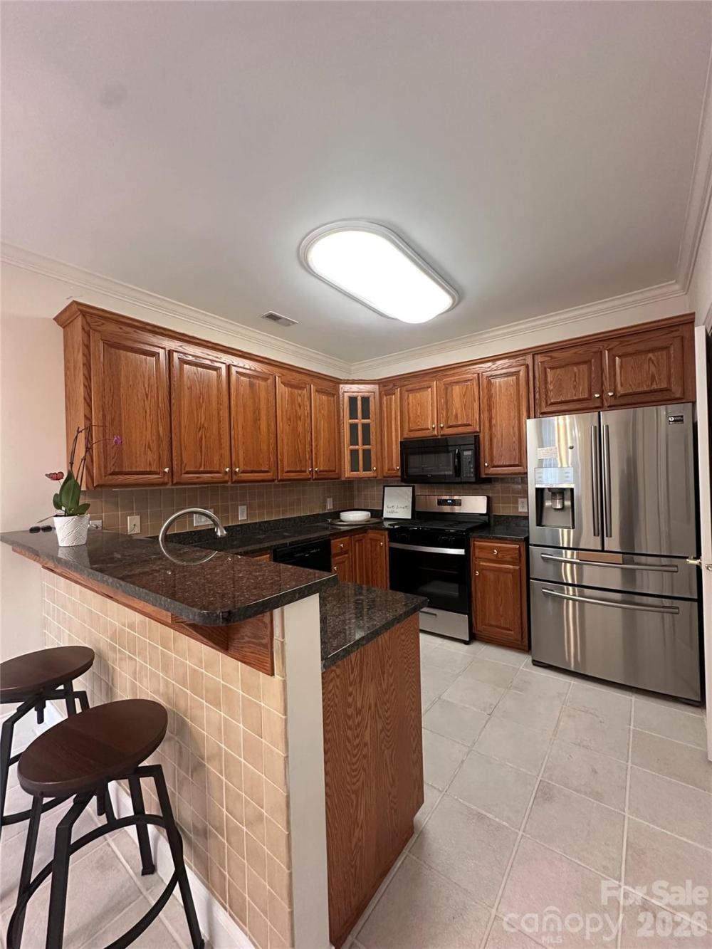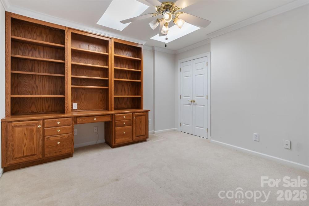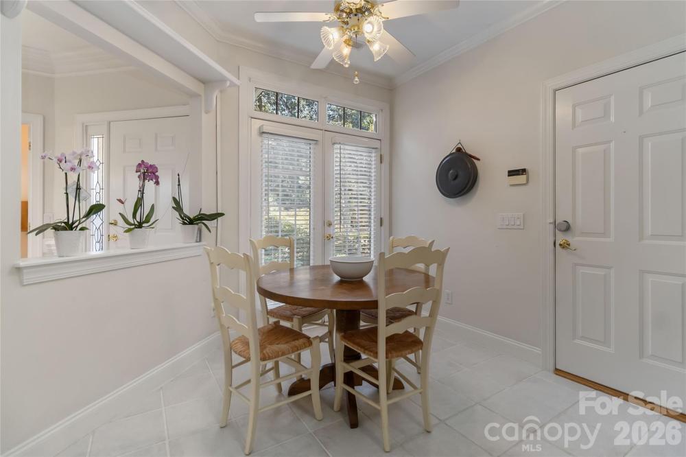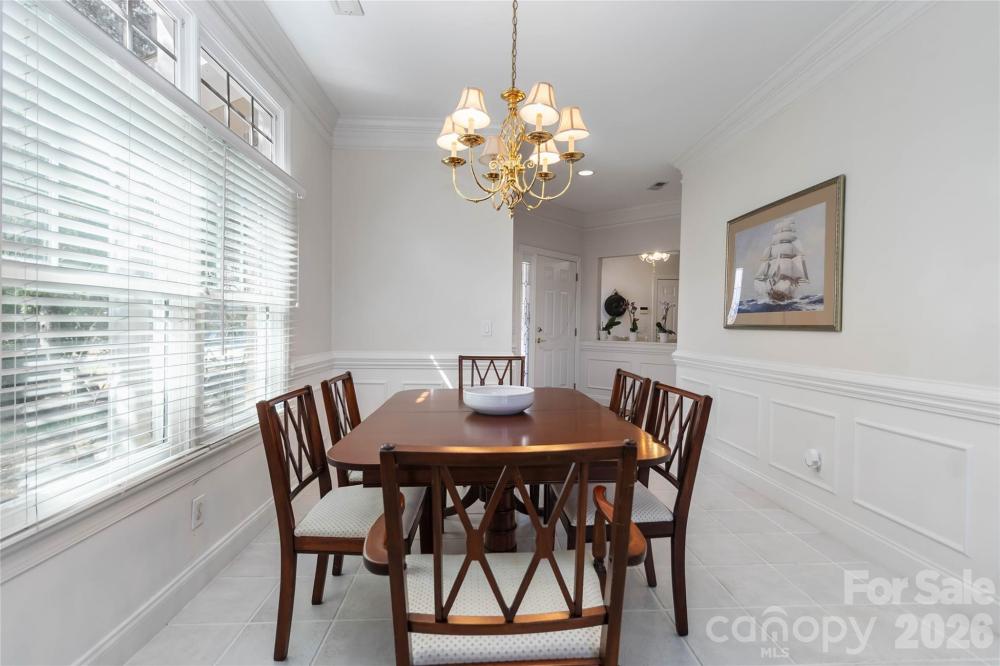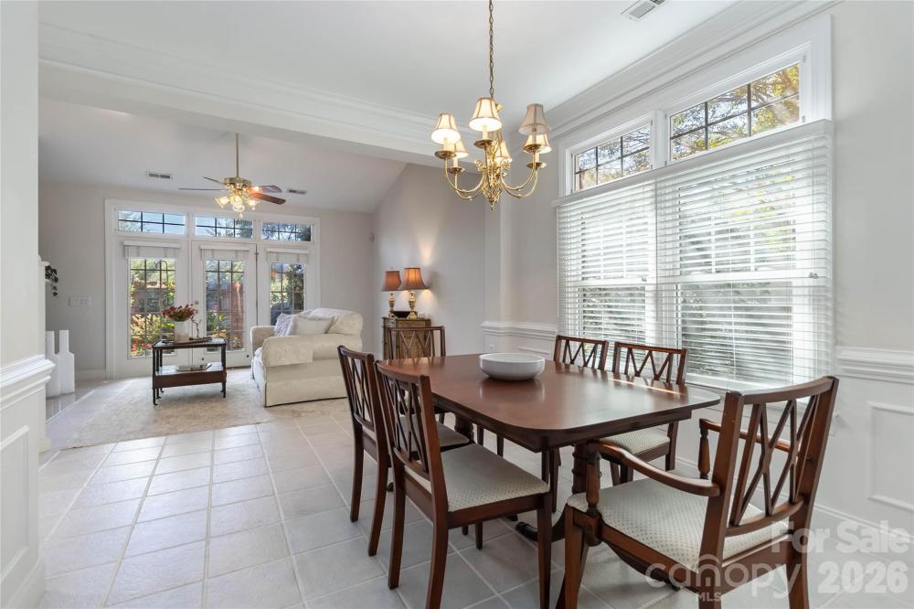 Public Announcement: Price Adjustment: Reduced from $525,000 to $499,500 That’s a total savings of over $25,000 for the buyer! Seller has just purchased a 4-burner, 5.1 cu. ft. freestanding natural gas range (stainless steel), which will be installed in the kitchen. (11/29/2025 Black Friday Deal from Lowe's) Welcome to The Villas at Ballantyne Trace, a beautifully maintained community offering elegant, low-maintenance living in one of South Charlotte’s most convenient and sought-after areas. This classic brick-front villa sits on a quiet corner lot surrounded by lush landscaping, mature trees, and timeless curb appeal. Step inside to a bright and welcoming foyer highlighted by wainscoting, crown molding, and a decorative leaded-glass entry door. The open-concept layout creates an effortless flow between living, dining, and kitchen areas—ideal for entertaining or everyday comfort. The spacious living room features high ceilings, a cozy gas fireplace, and built-in cabinetry, with a wall of French doors that fill the home with natural light and open to the private courtyard. The formal dining area is accented by detailed millwork and an elegant chandelier, offering a perfect setting for both casual and formal dining experiences. The kitchen is warm and functional, showcasing rich wood cabinetry, granite-style countertops, tile backsplash, a gas range, built-in microwave, and stainless-steel refrigerator. A convenient breakfast bar and adjoining eat-in nook overlook the courtyard garden. The primary suite on the main level provides a tranquil retreat with vaulted ceilings and large windows overlooking the garden. The en-suite bath features a jetted soaking tub, a tiled walk-in shower with grab bars, and a spacious vanity area—offering both comfort and accessibility. Upstairs, you’ll find three generously sized bedrooms and a full bath, providing flexibility for family, guests, or work-from-home needs. One of the bedrooms is currently designed as a library or office, complete with built-in shelving, desk space, and dual skylights that bring in abundant natural light. Another bedroom features dual closets, with one pre-wired for built-in speaker or media connections—perfect for a hobby or media space. Step outside to your private brick-walled patio garden, a true outdoor sanctuary. This beautifully landscaped courtyard is surrounded by flowering plants, manicured greenery, and climbing vines. The flagstone-style patio provides ample space for dining or relaxing, while a retractable electric awning (controlled by wall switch) offers shade and comfort at the touch of a button. A decorative wrought-iron gate and brick walls add privacy and charm to this serene setting. Additional highlights include a two-car garage with built-in storage cabinets and shelving, tiled flooring on the main level, elegant trim details, and abundant natural light throughout. Residents of The Villas at Ballantyne Trace enjoy a beautifully maintained neighborhood conveniently located near premier shopping, dining, medical centers, and major commuter routes. The area is also served by well-regarded local schools, contributing to the community’s strong appeal. Experience refined living, thoughtful design, and timeless beauty—all within minutes of everything Ballantyne has to offer. Roof was recently replaced and exterior maintenance are managed by the HOA. HOA financial documents available upon request. HOA has over 200k in reserves. Refrigerator, washer, and dryer convey with the property.