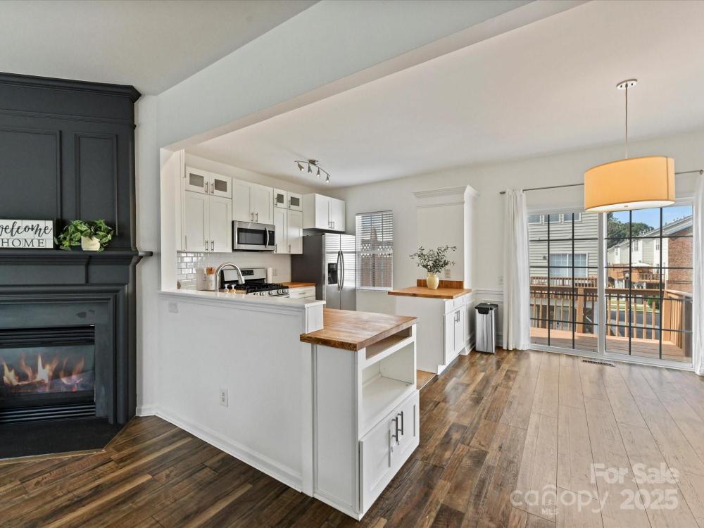 Welcome to 14130 Fitzroy Ln, a charming end-unit townhouse just steps away from the Ballantyne Village shopping center. As you step inside, you're greeted by the first bedroom which is ideal for an. office space, with glass doors. The laundry and landing zone are stylish and cute. Upstairs, the living room, adorned with a cozy fireplace, serves as the heart of the home, perfect for relaxing evenings or entertaining guests. It's open to the kitchen, with gret white cabinetry, a pantry closet, and lovely butcher block countertops. On the third level the bedrooms are generously sized, each with vaulted ceilings, en-suite baths, and large walk-in closets. providing a peaceful retreat. The bathrooms are well-appointed, ensuring convenience and privacy for everyone. The thoughtful layout of this townhouse emphasizes both comfort and practicality. Great Ballantyne schools, great shops and restaurants - you don't even need a car to get to dinner or coffee. Come take a look!