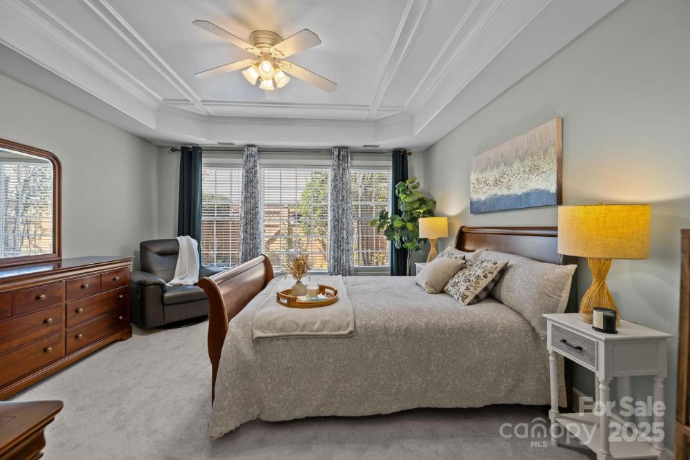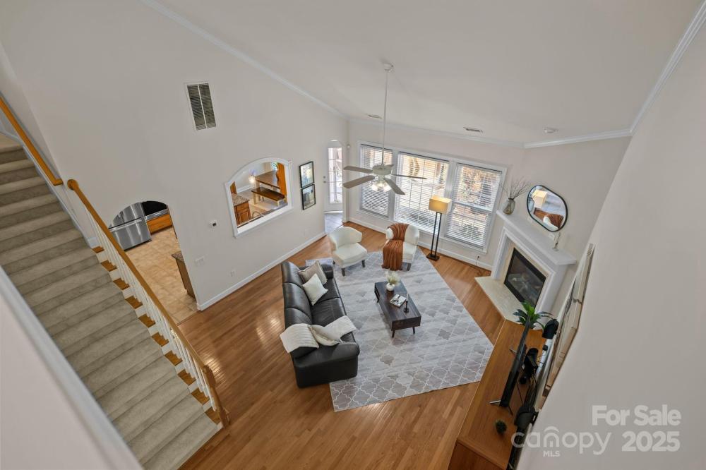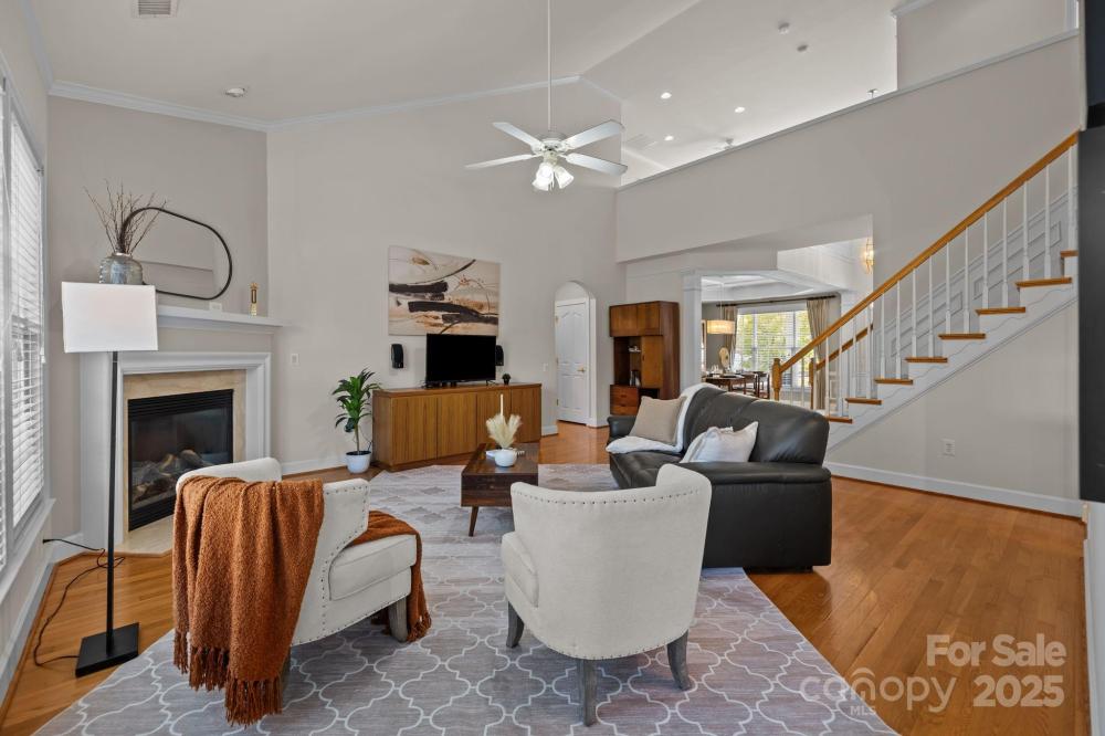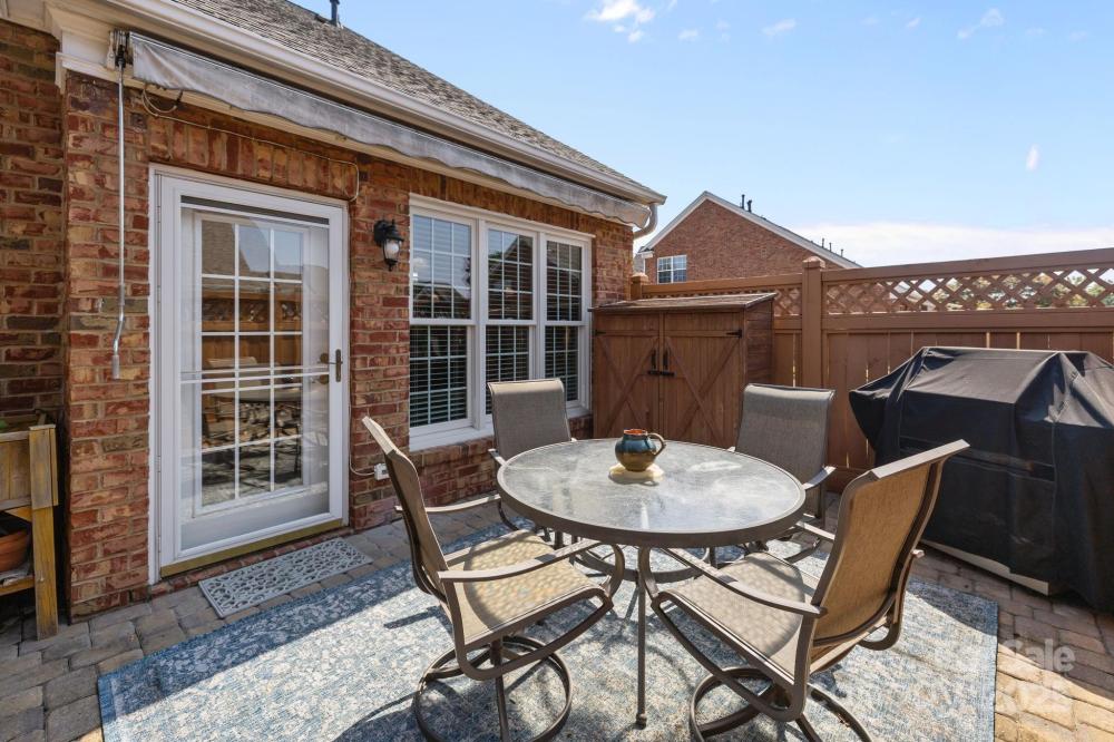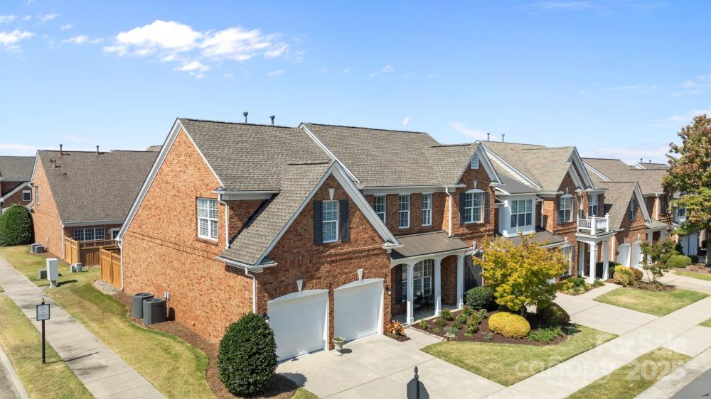 Welcome to your new Ballantyne retreat! This full brick end-unit townhome offers a light-filled, open layout designed for easy living. The main floor features a dramatic two-story living room with gas fireplace, spacious primary suite, and nicely equipped kitchen ready for your next culinary adventure. Upstairs, two additional bedrooms share a Jack-and-Jill bath, while the loft provides flex space for work or relaxation. Step outside to a lovely, private courtyard with an in-ground gas line and retractable awning for those sun-drenched afternoons. Additional highlights include: tankless water heater, replacement windows by Andersen on the main level, new carpet, generous walk-in attic, and a two-car garage with epoxy flooring. HVAC replaced in 2021 and new roof in 2019. The refrigerator, washer/dryer, and patio shed are all included. Enjoy the community pool or take a short stroll to Ballantyne’s best dining, shopping, and entertainment. Move right in and start living your best life in one of Charlotte’s most desirable locations!