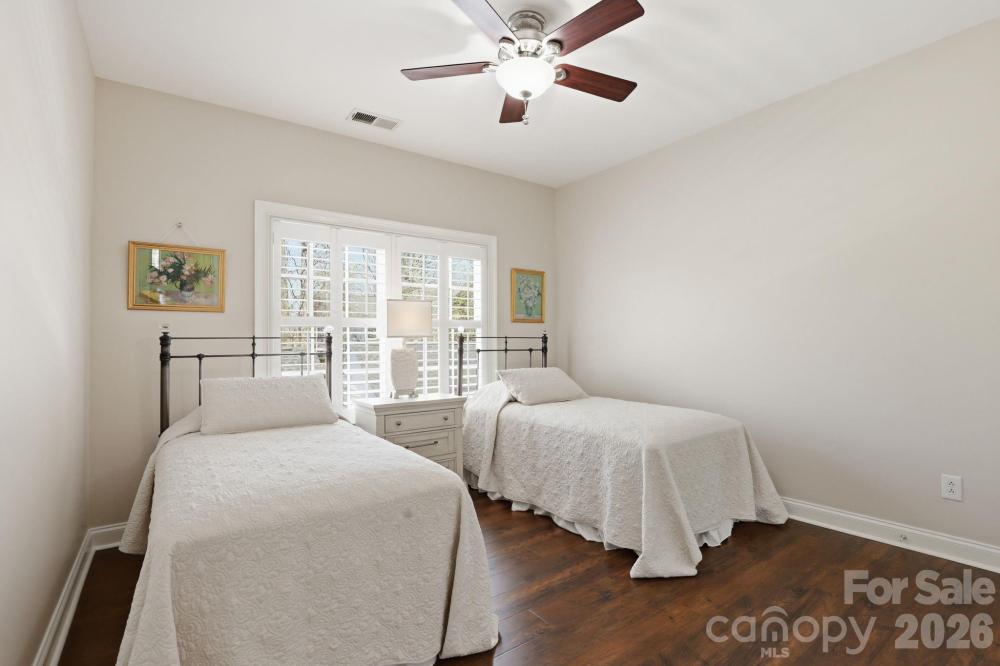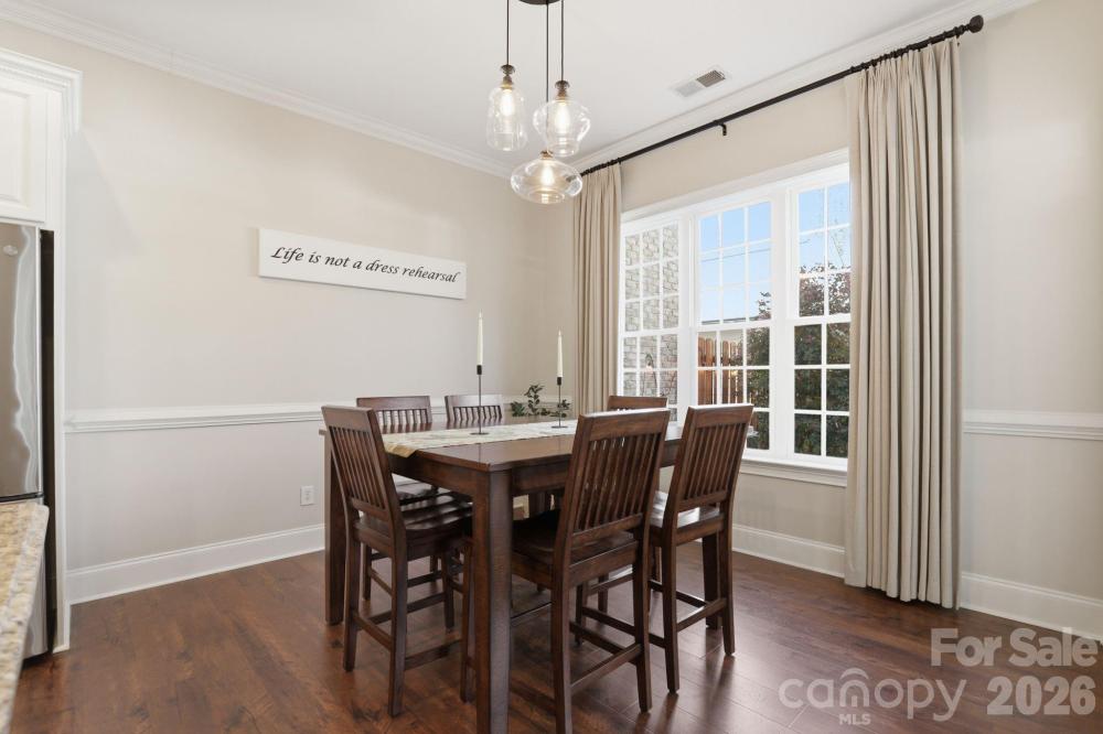 Immaculate, move-in ready townhome in a prime location with clear pride of ownership throughout. This classic Charleston-style home features double front porches that offer great outdoor space - perfect for morning coffee, winding down in the evening, or simply enjoying the quiet neighborhood setting. The main level is open, with 10’ ceilings. The kitchen flows easily into the living and dining areas, making the space comfortable for both everyday living and entertaining. Dishwasher and in-sink waste disposal (both 2023). Refrigerator included. Laminate wood and tile flooring, neutral paint, and updated light fixtures are throughout the home. Upstairs, the primary suite includes a spacious walk-in closet and direct access to the front balcony, creating an outdoor retreat. The upper level laundry room includes a sink, cabinetry, and washer/dryer (included). Outside, the fenced courtyard, ideal for relaxing or hosting guests, provides a more private setting with a water feature and new paver lighting. A detached garage offers additional storage with shelving. Major updates include a new roof (2025, HOA assessment paid), furnace (2020), A/C (2021), and water heater (2020). Zoned Nest thermostats on both levels. HOA covers water, sewer, trash, landscaping, and termite control. Long-term rentals are permitted. Located within walking distance to Stonecrest shopping and dining, and just minutes to Blakeney, Waverly, Ballantyne Bowl, and I-485, this home offers both convenience and a great lifestyle opportunity!