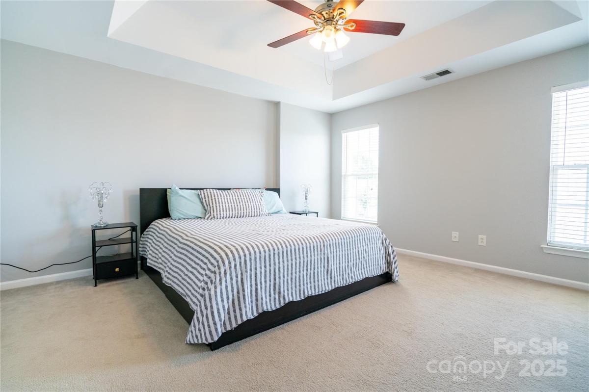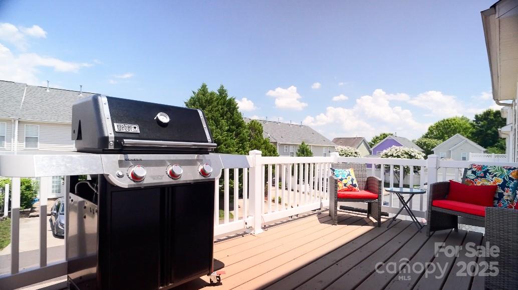 This freshly updated 3-story townhome offers style, space, and an unbeatable location in a top-rated school district. Featuring 3 bedrooms* and 2 full/2 half baths, it lives large with fresh paint, new fixtures, and upgraded LVP flooring on the main and second floors. The bright kitchen boasts painted white cabinets, granite counters, and a sleek backsplash, opening to a spacious living room with a gas fireplace and access to a private deck—perfect for morning coffee or evening cocktails. Upstairs, the primary suite shines with tray ceilings, a large walk-in closet, and dual vanities with a garden tub/shower combo. A flexible entry level room with French doors works beautifully as an office, gym, guest space—or a 3rd bedroom (*no closet). Walkable to Blakeney’s shopping, dining, and entertainment, with quick I-485 access. Move-in ready and perfectly placed for South Charlotte living!