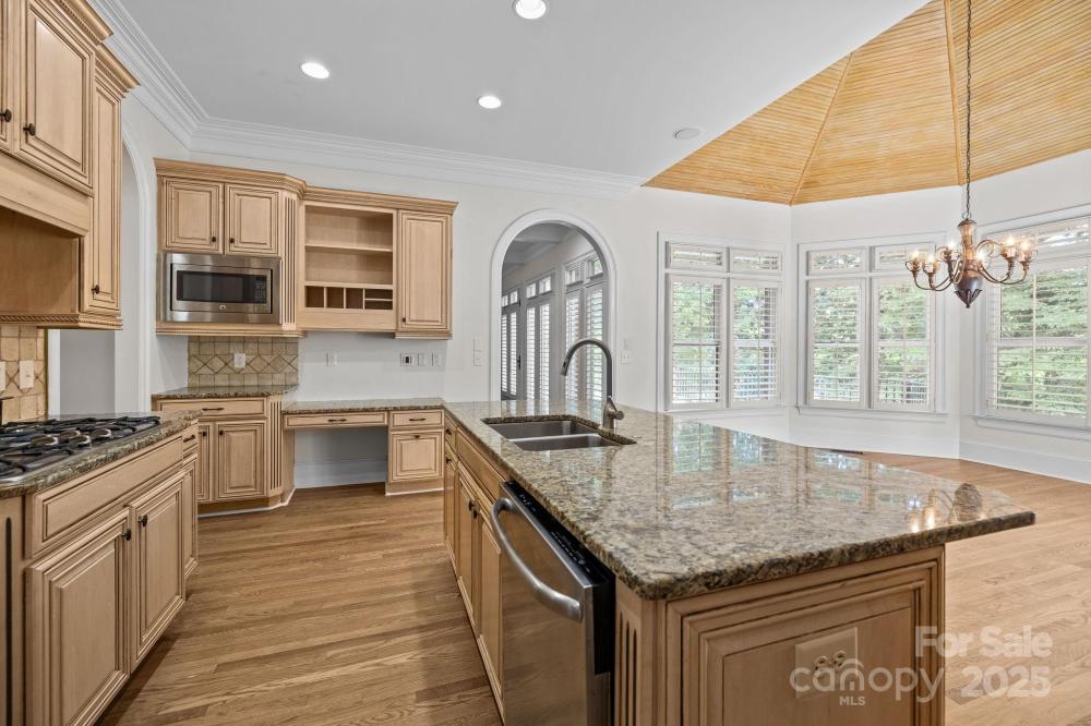 Professional measurements coming soon! Prestigious Ballantyne Country Club custom built home offers 3 levels of exquisite living located on the 14th hole of the golf course with professionally landscaped grounds. 6 BR and 6.2 BA home with open foyer, formal dining room and living room w/ fireplace. Large great room with coffered ceilings, fireplace and built-ins. Cooks kitchen with stainless steel appliances, gas stove, double oven and breakfast bar with granite counter tops, opens to breakfast area with beautiful intricate wood ceiling and views of the golf course. Primary bedroom and guest suite on main floor with views of the golf course. Second floor has 3 Add'l nicely sized bedrooms & a bonus room. LL is an entertainers dream complete with media area, large BR and BA, Large second family room w/stacked stone FP that leads to a covered terrace, billiards area, butler's bar, walk in wine cellar, & additional storage. Circular Driveway and 3-car garage! Roof 2025, Water heater 2025,2011, HVAC 2019,2019, 2000. Entire interior of the home was painted, hardwood floors refinished and new carpet. New butlers bar and all secondary baths have new cabinets with quartz tops.