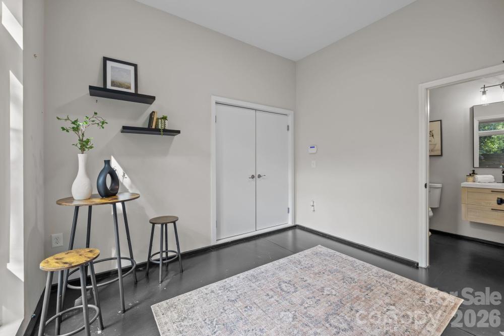 A rare opportunity to own a modern home in one of Charlotte’s most dynamic communities. Step inside to an open and light-filled main living space where contemporary architecture meets effortless entertaining. The sleek kitchen and sunken living room create a welcoming hub for gatherings while maintaining the clean lines and modern aesthetic that define the home. The primary suite offers a true retreat with a walk-in closet, spa-inspired bath, and a private attached flex space ideal for a home gym, executive office, lounge, or nursery. Additional bedrooms upstairs provide versatile spaces perfect for guests, remote work, or creative studios. The true showstopper is the rooftop terrace — an incredible space to entertain, unwind, and enjoy sunset views above one of Charlotte’s most vibrant neighborhoods. Just moments from restaurants, coffee shops, breweries, galleries, and convenient access to the LYNX Blue Line, this home offers the ultimate NoDa lifestyle where everything you love is within reach. Custom shades and curtains to convey. Home was designed by Charlotte Architect Curtis Sloop. Fireplace is sold as-is, no known issues. The recent addition is 545.5 sq ft, the projector, projection screen and turf to convey, the Trackman Golf Simulator attachment will not convey (can share information of how/where to purchase as there are many options available) or can discuss as an additional item to purchase from seller. Fresh paint, upstairs HVAC, refrigerator & dishwasher replaced 2024 and tankless water heater 2025. Floors and kitchen countertops just refinished.