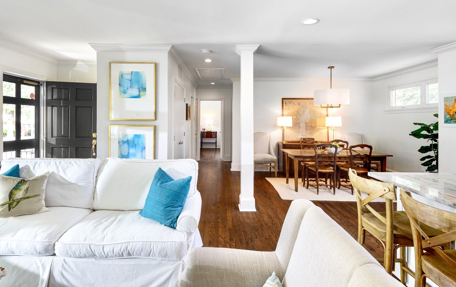 Description: Welcome to Ivey Drive – your home sweet home! The curb appeal is off the charts and that’s just the beginning. Built in the 1940’s, this home has been tastefully updated with an open floorplan and space for everyone. You’ll ooh and ahh over original hardwood floors, custom built-in’s and chair molding. The updated kitchen boasts stainless steel appliances, granite countertops and a gas range. Retire to the spacious primary suite where you’ll find a walk-in closet, dual vanity and walk-in tile shower. The secondary bedrooms are upstairs and share a connecting bath with classic black and white tile. Other OMG features include dedicated office space, rocking chair front porch and expansive back deck overlooking the fully fenced yard. Close to everything Midwood!