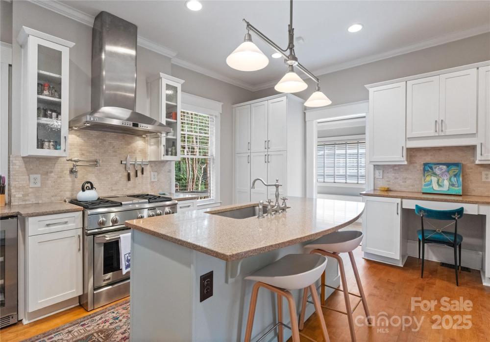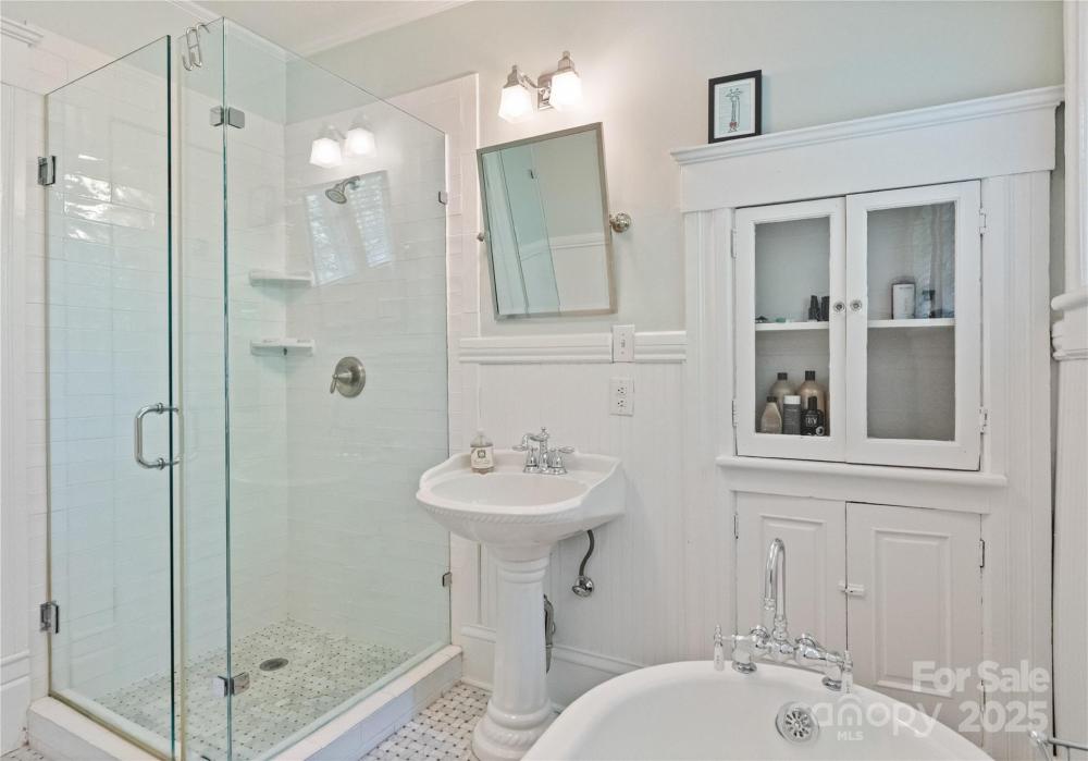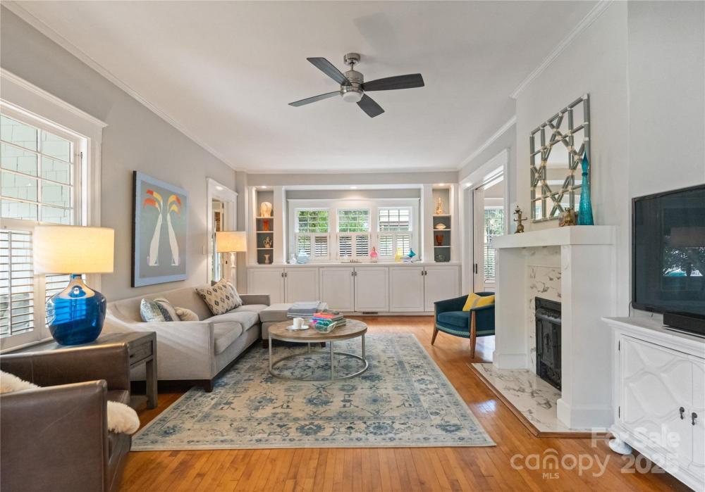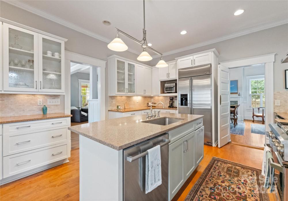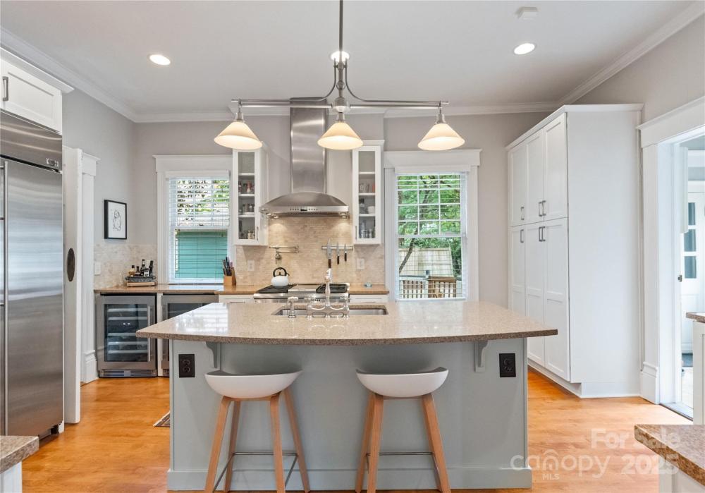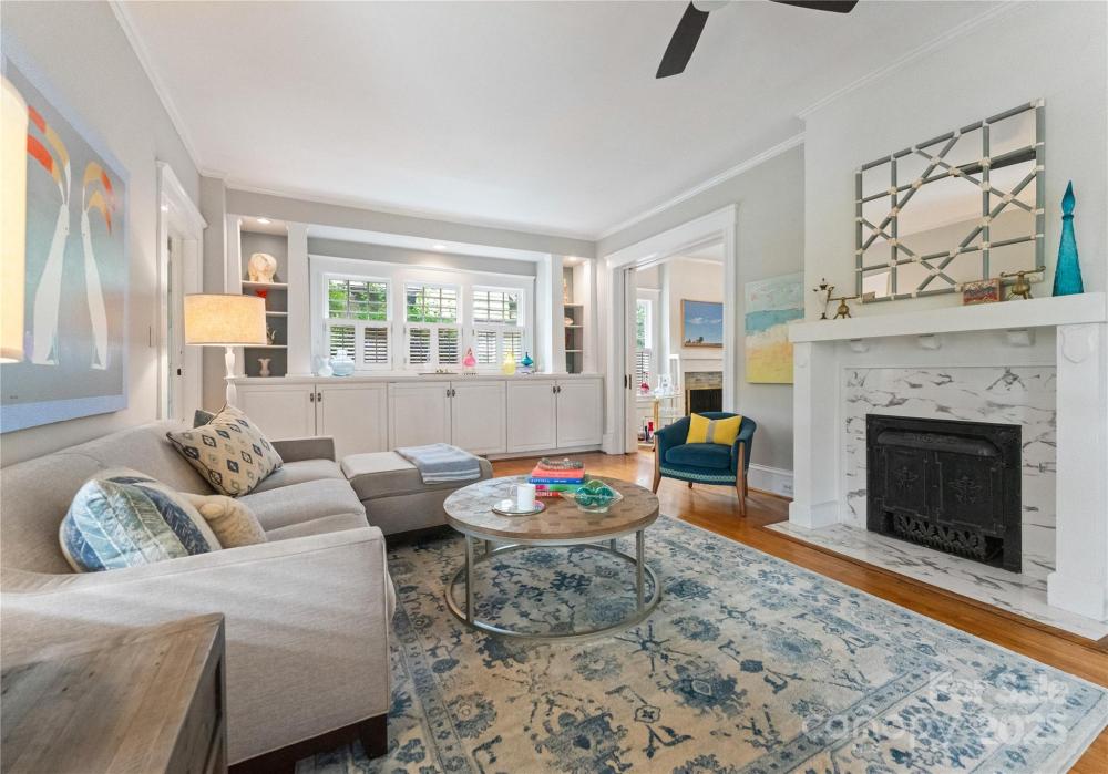 Timeless 1925 Bungalow in the Heart of Elizabeth. Step into history with this beautifully preserved 100-year-old bungalow, perfectly positioned within walking distance to the Gold Line, Novant Presbyterian, Independence Park and all of Elizabeth's fine shops and dining. A gracious oversized front porch welcomes you setting the tone for the home's iconic charm and livability. This 3 bedroom, 2.5 bath two story property features grand sun-filled rooms, from your foyer to your living room, dining room, sunroom and kitchen on main level. Gourmet kitchen features thoughtfully designed white cabinetry, GE Monogram appliances, dual beverage fridges, tile backsplash, pantry and desk niche. Convenient, large mud room with laundry and utility sink off your back entrance. Four iconic original fireplaces with decorative surrounds throughout the property. Elevated built ins showcase your front living room and quaint front sunroom. Upstairs features your oversized Primary Suite with luxury bath and walk in closet. Outdoors, enjoy your paver patio with fire pit area, an expansive deck built for entertaining, and a two-car detached hardy plank garage with unfinished space above built perfectly to finish out for an ADU if needed. This rare Elizabeth bungalow is not just a home, but a lifestyle-- classic, walkable and endlessly inviting.