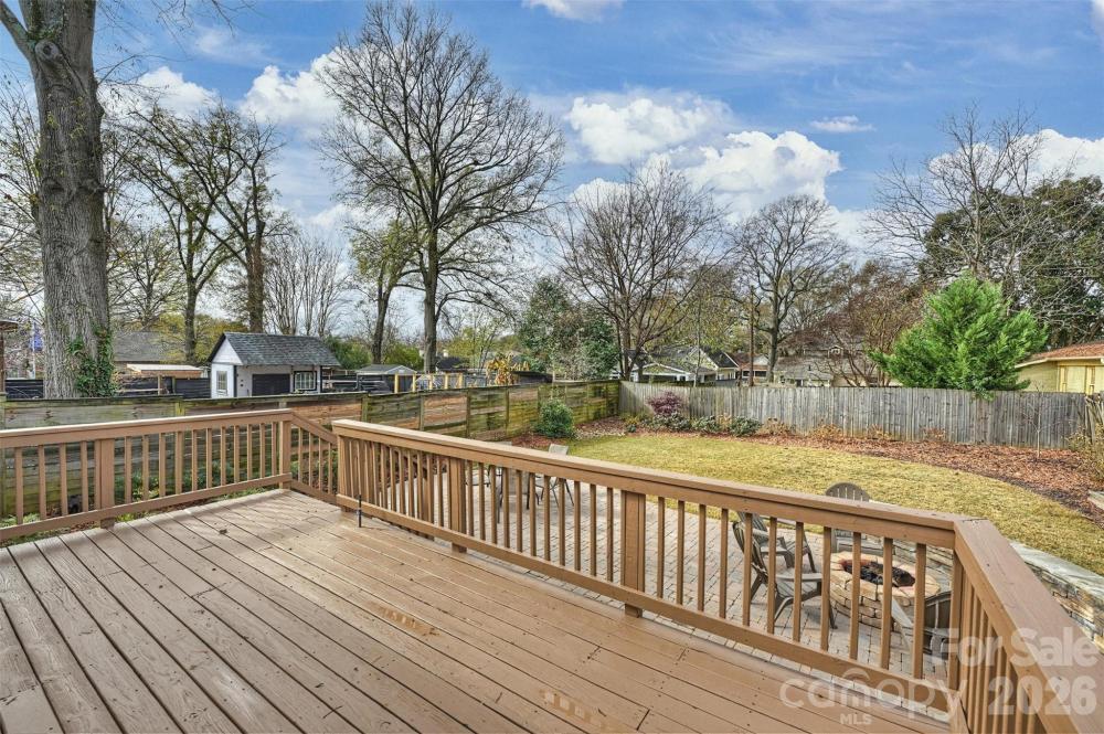 Picturesque 3BR/2BA bungalow living in the vibrant Villa Heights community. Delivering impeccable curbside appeal, this lovely haven is move-in ready and comes with the bonus of no HOA fees. The inviting front porch welcomes you in. Ideal for both entertaining or relaxing, enjoy the open floor plan designed for modern one-level living. The generous living and dining area is highlighted by high ceilings, oversized windows, and rich hardwood floors. The stylish island kitchen boasts ample gray shaker cabinets, a large walk-in pantry, and stainless steel appliances. The split bedroom floorplan offers both family access and privacy, with the primary suite overlooking the serene back yard. Rounding out this storybook home, step outside to enjoy your private backyard retreat. The landscaped fenced-in backyard with a large deck, brick patio and shed provides a lovely space for summer outdoor gatherings. Additional updates that add value to this home include newer solar panels, and maintenance management. Your forever home awaits.
