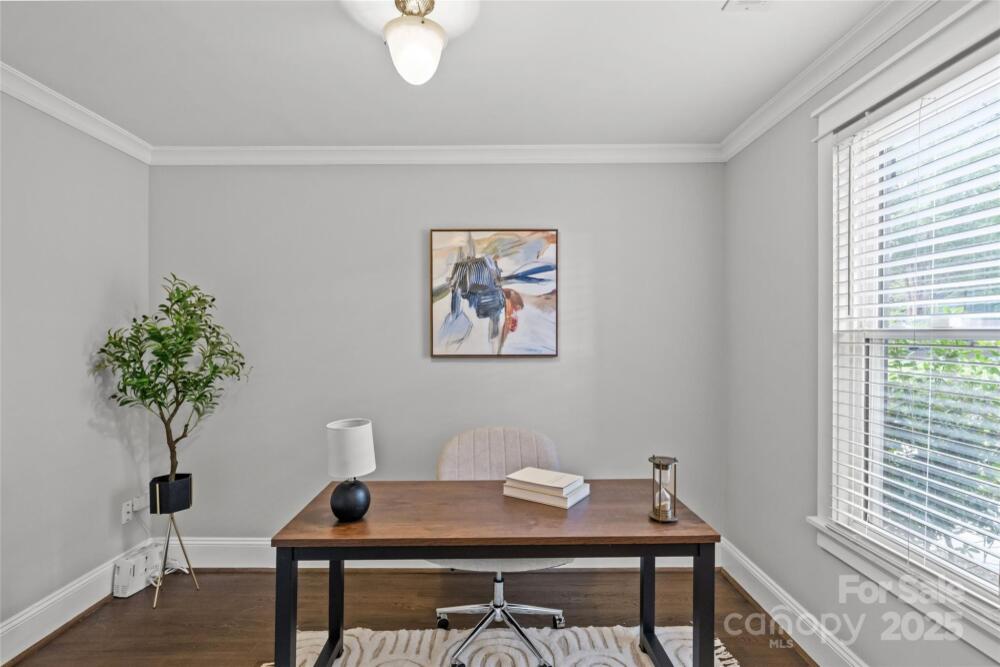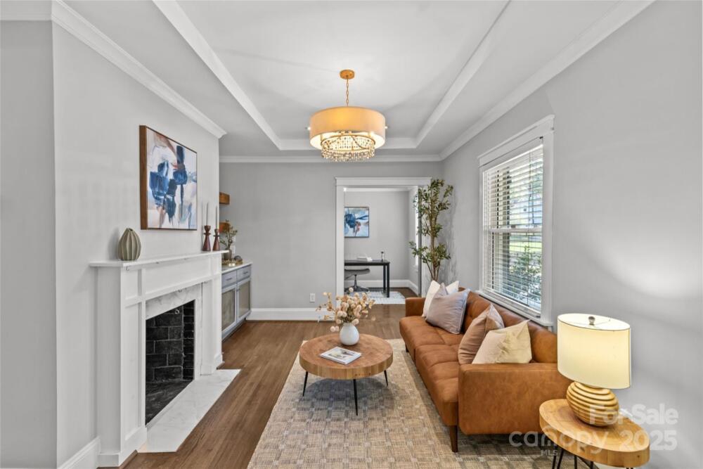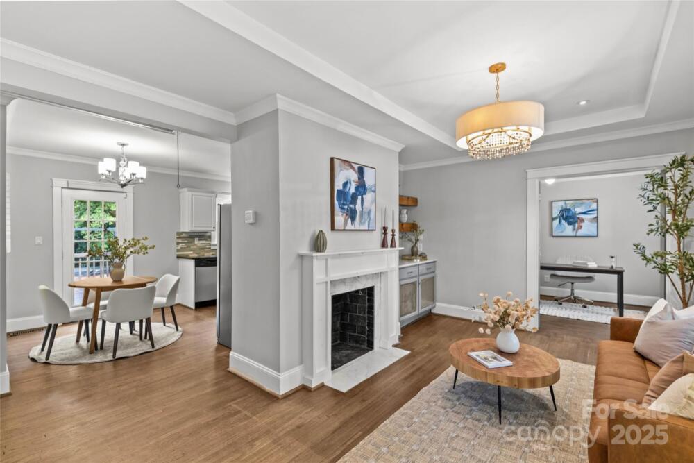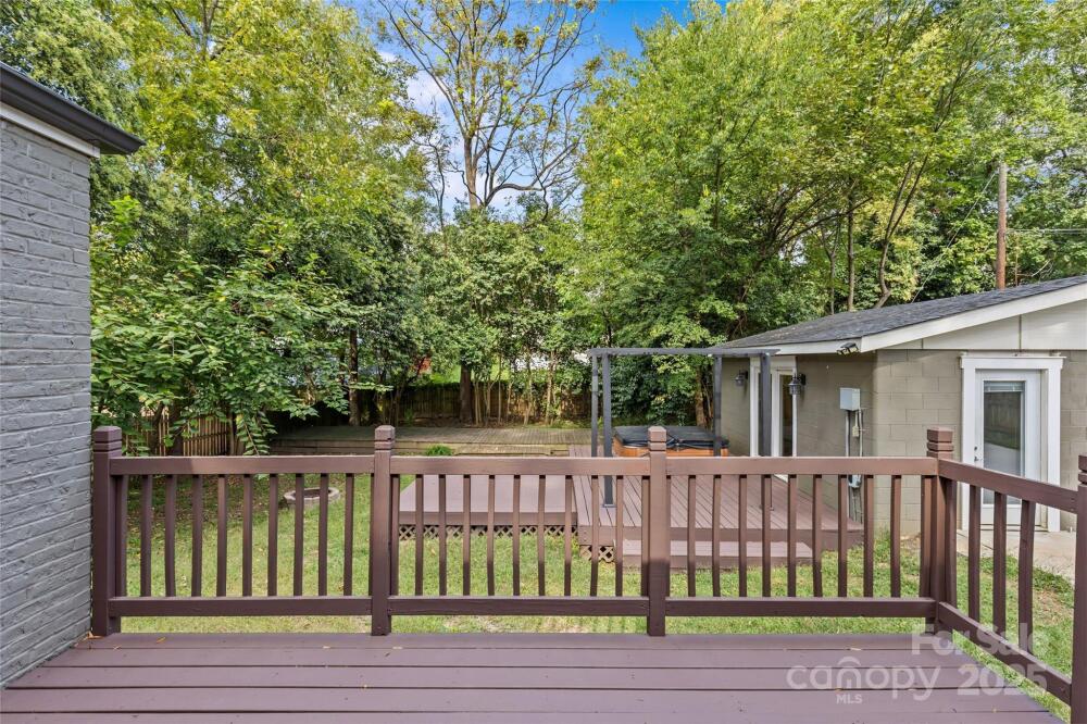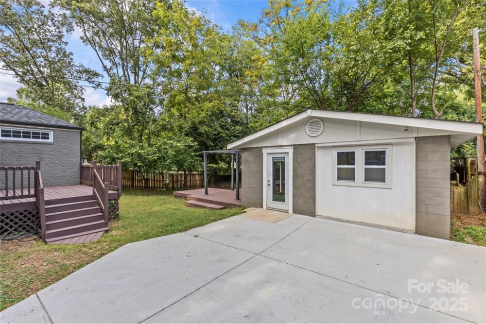 Welcome to this charming 3-bedroom, 2-bathroom brick bungalow located in desirable Villa Heights. This home beautifully blends original details with fresh updates for modern living. The oversized and covered front porch creates a lovely first impression. The living room is a perfect gathering space with a cozy fireplace and built-ins. The eat-in kitchen boasts freshly painted cabinetry (2025), black granite countertops, and stainless steel appliances. The spacious primary suite has a walk-in closet and an en-suite bathroom with classic finishes and a tub/shower combination. Secondary bedrooms are well-appointed and share access to a full bathroom. This home allows for a flexible floor plan, as the third bedroom could easily be used for a home office. The hardwood floors and nice natural light flow throughout the home, adding to its appeal. The backyard includes multiple back decks, making it ideal for indoor-outdoor living and the perfect spot for grilling, lounging, or entertaining. The fully-fenced backyard offers great privacy and has a beautiful mature tree canopy. A separate, detached 400 square foot studio has endless possibilities as a bonus room, home gym, guest house, and more. All just steps away from Sugar Creek Greenway access, Cordelia Park, NoDa, Plaza Midwood, Uptown, and more!