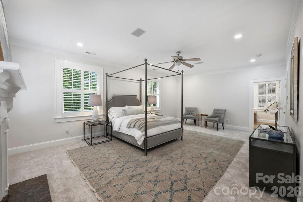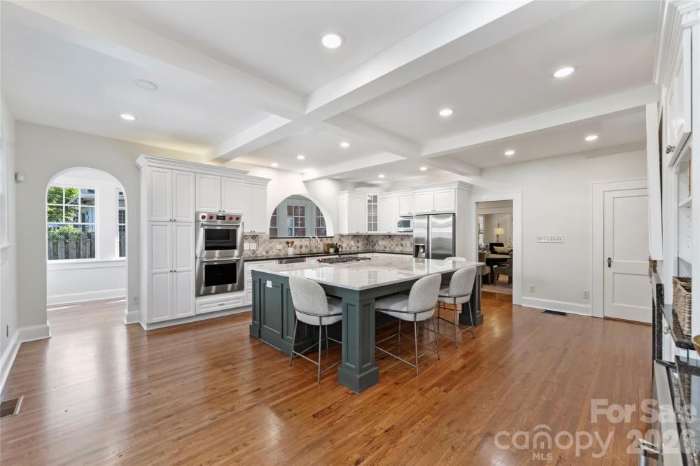 Timeless Elegance Meets Modern Comfort in the Heart of Dilworth. Nestled along prestigious Dilworth Road East, this exceptional residence seamlessly blends classic charm with contemporary sophistication. Offering approximately 4,500 square feet of living space, the home features six bedrooms, four full bathrooms, and a versatile main-floor office with easy access to a nearby full bath—perfect for use as a guest suite or the sixth bedroom. An inviting wraparound rocking-chair front porch sets the tone for the refined details found throughout. Inside, the open-concept main level is designed for effortless entertaining, anchored by a chef’s kitchen equipped with a Wolf cooktop, stainless steel appliances, double ovens, and an oversized quartz island. The kitchen flows gracefully into a sun-drenched sitting room and extends to a rear patio overlooking a tranquil backyard framed by brick walls and lush landscaping—an intimate retreat for quiet moments or lively gatherings. Elegant moldings, rich hardwood floors, and two fireplaces—one in the living room and another shared between the family room and kitchen—create a warm and inviting atmosphere. The spacious owner’s retreat is a true sanctuary, featuring a cozy fireplace, spa-like en-suite bath, and a generous walk-in closet. Upstairs, a full bar and entertainment area provide the perfect setting for hosting guests or enjoying relaxing evenings at home. This home offers a rare blend of historic character and modern amenities, all just moments from Dilworth’s premier shops, restaurants, parks, and minutes to Uptown and SouthPark.
