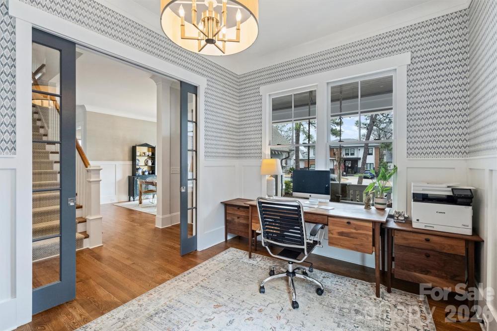 Welcome to 2316 Springdale Ave—an exceptional custom-built home in the heart of Dilworth, just minutes from South End and Uptown. This meticulously designed 6-bedroom, 5.5-bath residence offers refined finishes, thoughtful functionality, and flexible living across every level. The main floor features a private office with glass pocket doors, a formal dining room filled with natural light, and an expansive living room that seamlessly connects to the chef’s kitchen, complete with premium Wolf and Sub-Zero appliances and a bright breakfast nook. Step outside to a screened-in porch with a wood-burning fireplace overlooking the private backyard—perfect for year-round entertaining. Designed for both luxury and everyday convenience, the home includes a spacious walk-in pantry, a mudroom with built-in lockers and a dog shower, and a two-car garage with ample space for large SUVs. Upstairs, the luxurious primary suite offers a spa-inspired bath and generous walk-in closets. Three additional en-suite bedrooms and a large bonus room with its own full bath provide versatile space for family, guests, or play. All bedrooms feature custom Hunter Douglas shades. The finished basement expands the living space with a large recreation area, gym, private guest suite with walk-in closet and full bath, plus abundant storage. Combining elevated design with exceptional livability in one of Charlotte’s most sought-after neighborhoods, this Dilworth gem offers the perfect blend of comfort, style, and location.