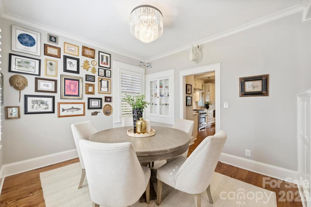 Welcome to this beautifully updated home located in Dilworth, one of Charlotte’s most desirable neighborhoods. Built in 1925, this charming residence perfectly blends historic character with modern updates, offering over 2,200 square feet of thoughtfully designed living space. Featuring 3 bedrooms and 2.5 bathrooms, the home showcases tons of natural light, an open floor plan, large backyard and covered outdoor living space.The open-concept main living area flows seamlessly into a well-appointed kitchen featuring a large center island, marble countertops, stainless steel appliances, a gas range, and a cozy breakfast nook. The den opens directly to the expansive covered porch, creating the ideal indoor-outdoor lifestyle. The porch, designed for year-round enjoyment with built-in heaters, overlooks the fully fenced, level backyard. Upstairs, the spacious primary suite features a walk-in closest and renovated bathroom with a frameless glass walk-in shower, soaking tub, and double vanity. Home also features a dedicated laundry room, irrigation around home, renovated half bath, 2 sheds, and ample storage in the basement and attic. Situated in the heart of Dilworth, this home is just moments from South End’s top restaurants, breweries, and shopping, while still offering the charm and tranquility of one of Charlotte’s most beloved historic neighborhoods.