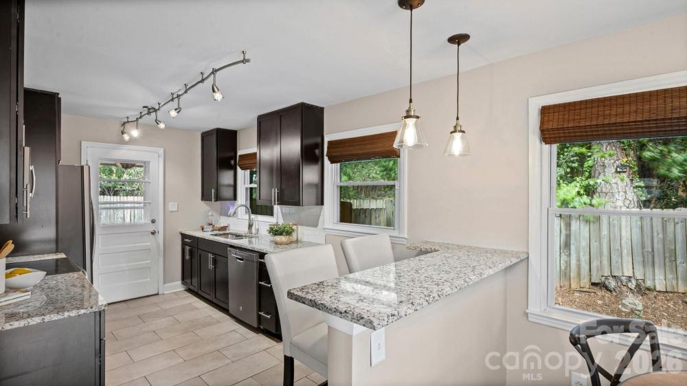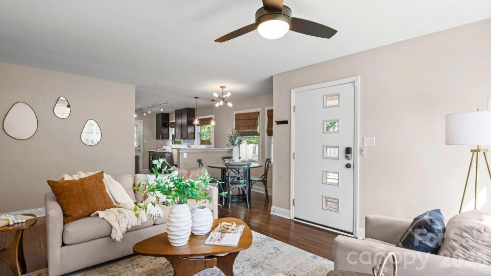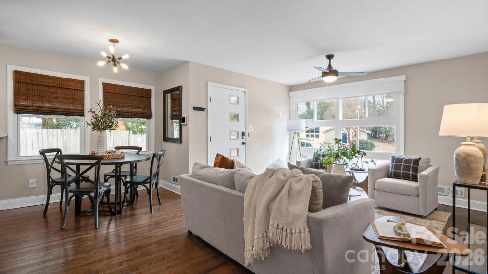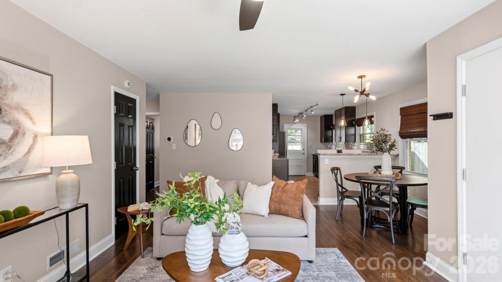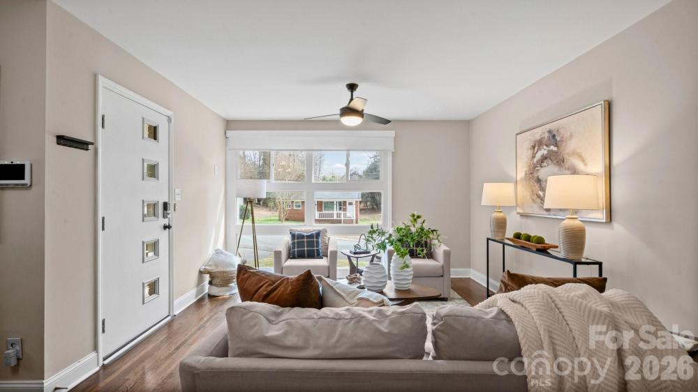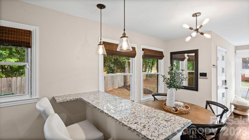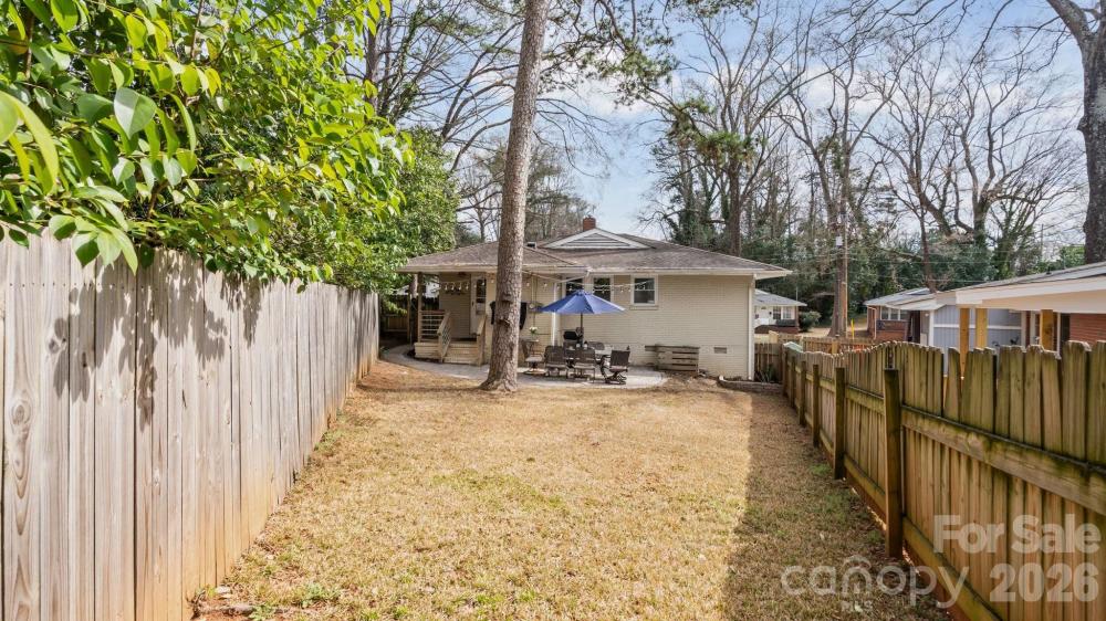 This fully renovated, cozy mid-century modern ranch bungalow in Echo Hills offers the perfect blend of style, comfort, and convenience. Located next to Oakhurst neighborhood and just minutes from Uptown, Plaza Midwood, and South Park areas, this home features an open floor plan and a private, fenced backyard—ideal for quiet enjoyment or entertaining. You’ll be within walking distance of local breweries, Bojangles Coliseum, and Ovens Auditorium. The stunning front picture window fills the main living area with natural light, complemented by an electric shade for privacy when needed. The kitchen showcases granite countertops, stainless steel appliances, and a bar area perfect for casual dining. Both bathrooms have been beautifully updated with modern finishes. A tree-lined buffer on one side of the property enhances privacy and serenity. HVAC replaced in 2022. Move-in ready and available now—come make this your new address and enjoy the good “Fortune” of calling this beautiful home your own.