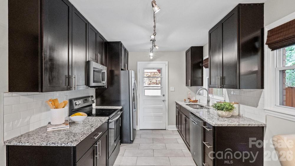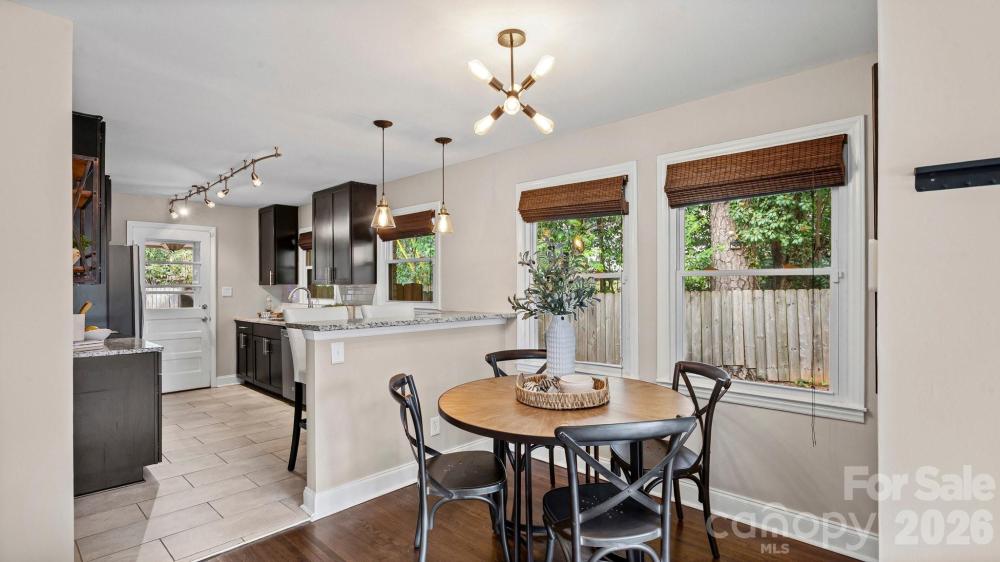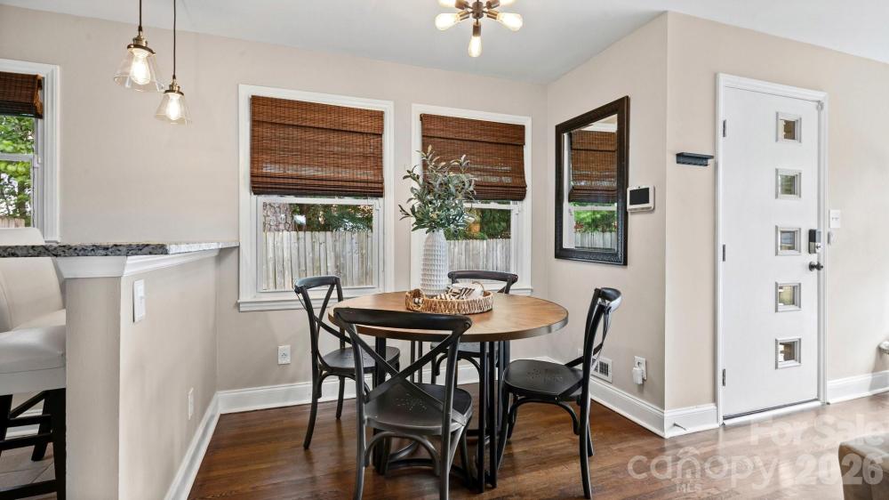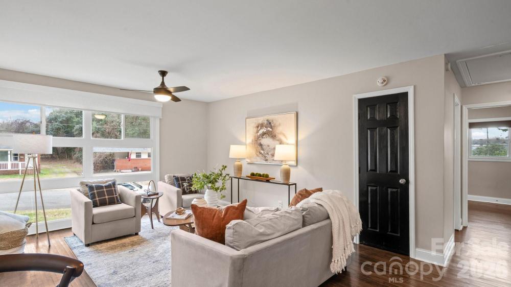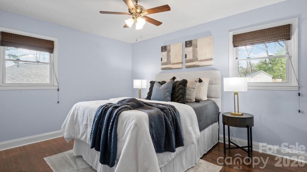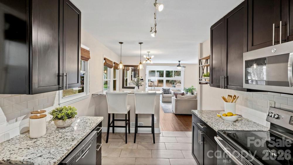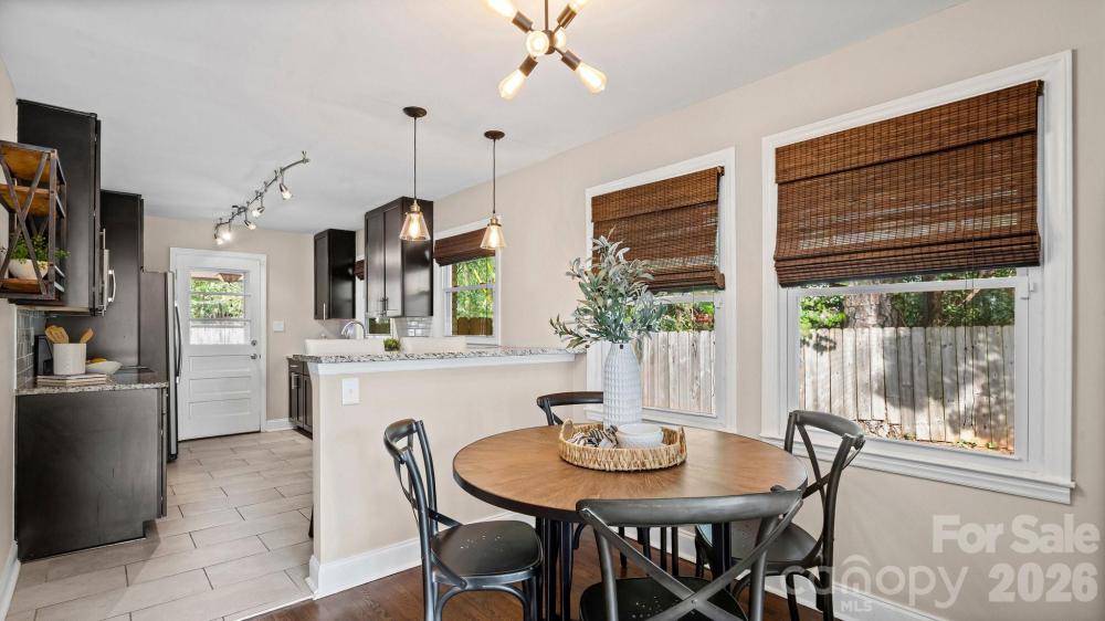 This fully renovated, cozy mid-century modern ranch bungalow in Echo Hills offers the perfect blend of style, comfort, and convenience. Located next to Oakhurst neighborhood and just minutes from Uptown, Plaza Midwood, and South Park areas, this home features an open floor plan and a private, fenced backyard—ideal for quiet enjoyment or entertaining. You’ll be within walking distance of local breweries, Bojangles Coliseum, and Ovens Auditorium. The stunning front picture window fills the main living area with natural light, complemented by an electric shade for privacy when needed. The kitchen showcases granite countertops, stainless steel appliances, and a bar area perfect for casual dining. Both bathrooms have been beautifully updated with modern finishes. A tree-lined buffer on one side of the property enhances privacy and serenity. HVAC replaced in 2022. Move-in ready and available now—come make this your new address and enjoy the good “Fortune” of calling this beautiful home your own.