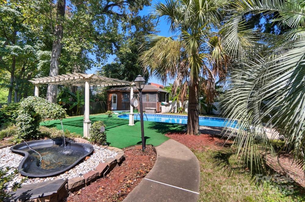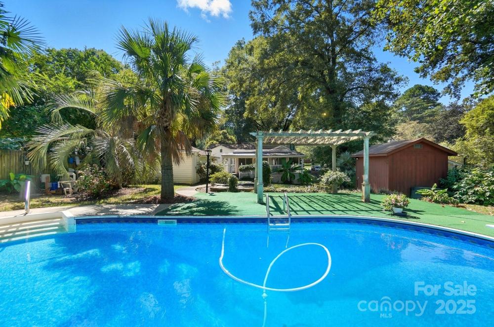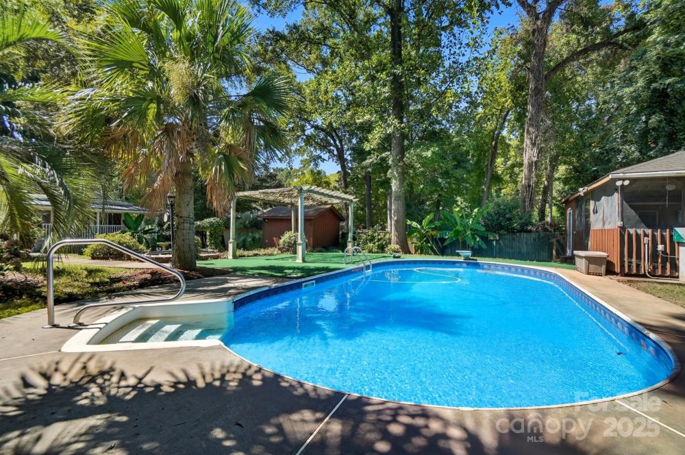 Professional photos coming Friday, September 19th! Just 5 miles to Uptown Charlotte—this prime location offers both convenience and opportunity. This classic brick ranch with no HOA is ready for its new owner to add their personal touch. Inside, the kitchen features updated cabinetry and flooring, a gas stove and the refrigerator, washer, dryer remain. The home appears to have hardwood flooring under the front living room, hallway, and two bedrooms, as well as tile under the carpet in the front bathroom (condition unknown). A spacious sunroom provides plenty of natural light and extra living space. The property is landscaped for privacy and includes an inground pool with gas heater, a workshop, and two additional sheds for storage.Cameras are on property and all showings must be agent accompanied. Do NOT walk this property without an agent on site. Please review agent remarks for additional information before scheduling.