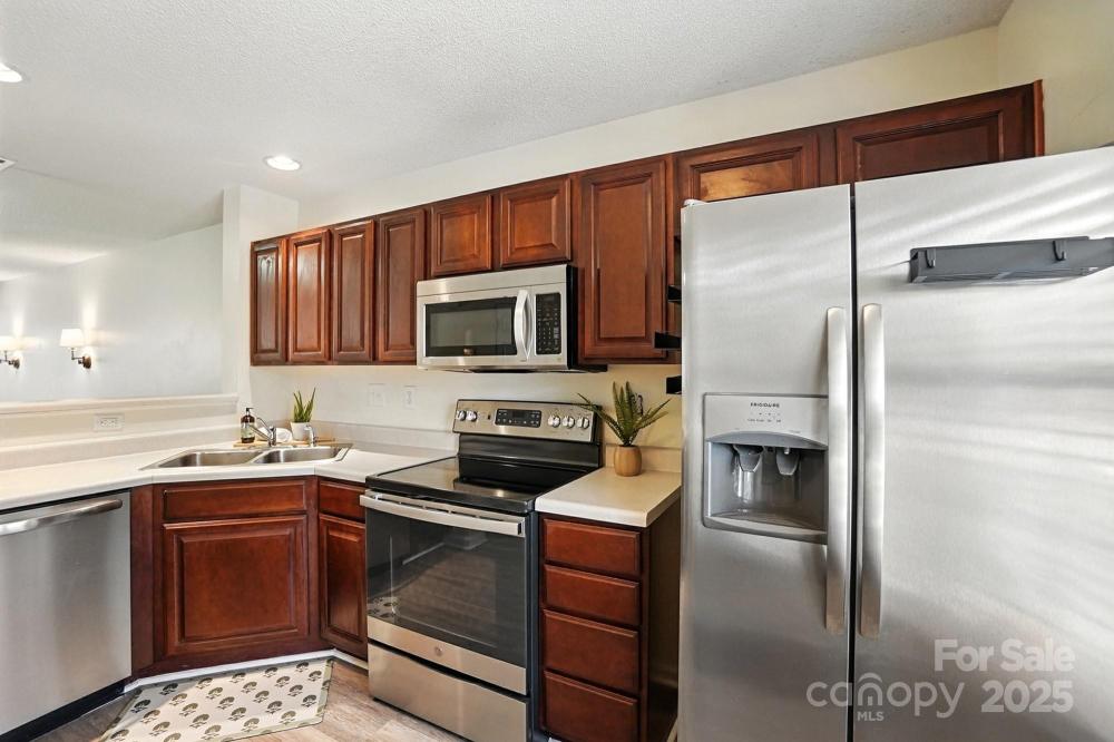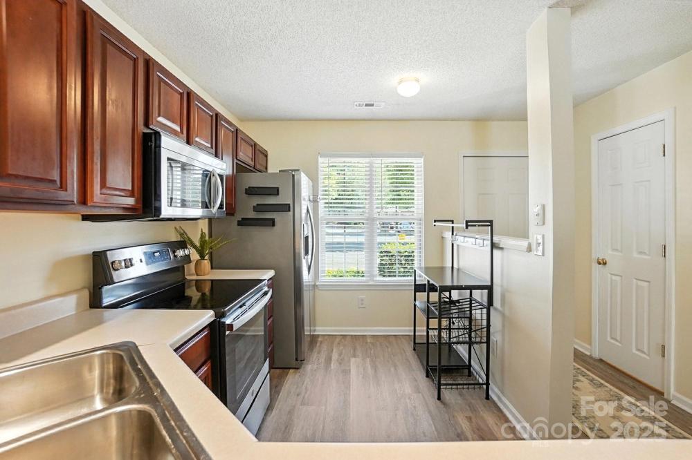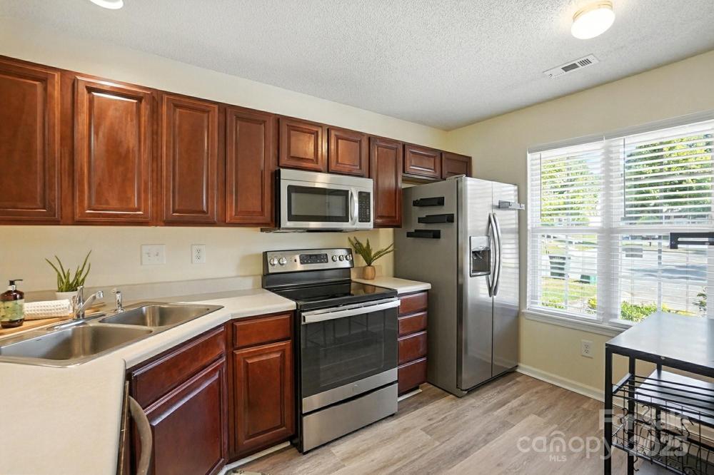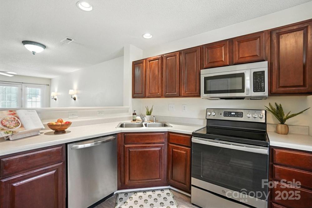Welcome to Holly Ridge! Discover low-maintenance living in this charming townhome community, ideally located just minutes from I-485, I-77, shopping, dining, Target, and the mall. This 2-bedroom, 2.5-bath townhome offers a spacious, open floor plan. Each bedroom has its own full bath, providing comfort and convenience. The home includes newer LVP flooring throughout, a cozy fireplace in the main living area, and peace of mind with a 2-year-old HVAC system. Enjoy relaxing outdoors on the inviting front porch or on the back patio with wooded views. Community amenities include pool, clubhouse, hot tub, picnic area, and tree-lined sidewalks. With lawn care, roof, and exterior maintenance covered by the HOA, you can truly enjoy easy townhome living.