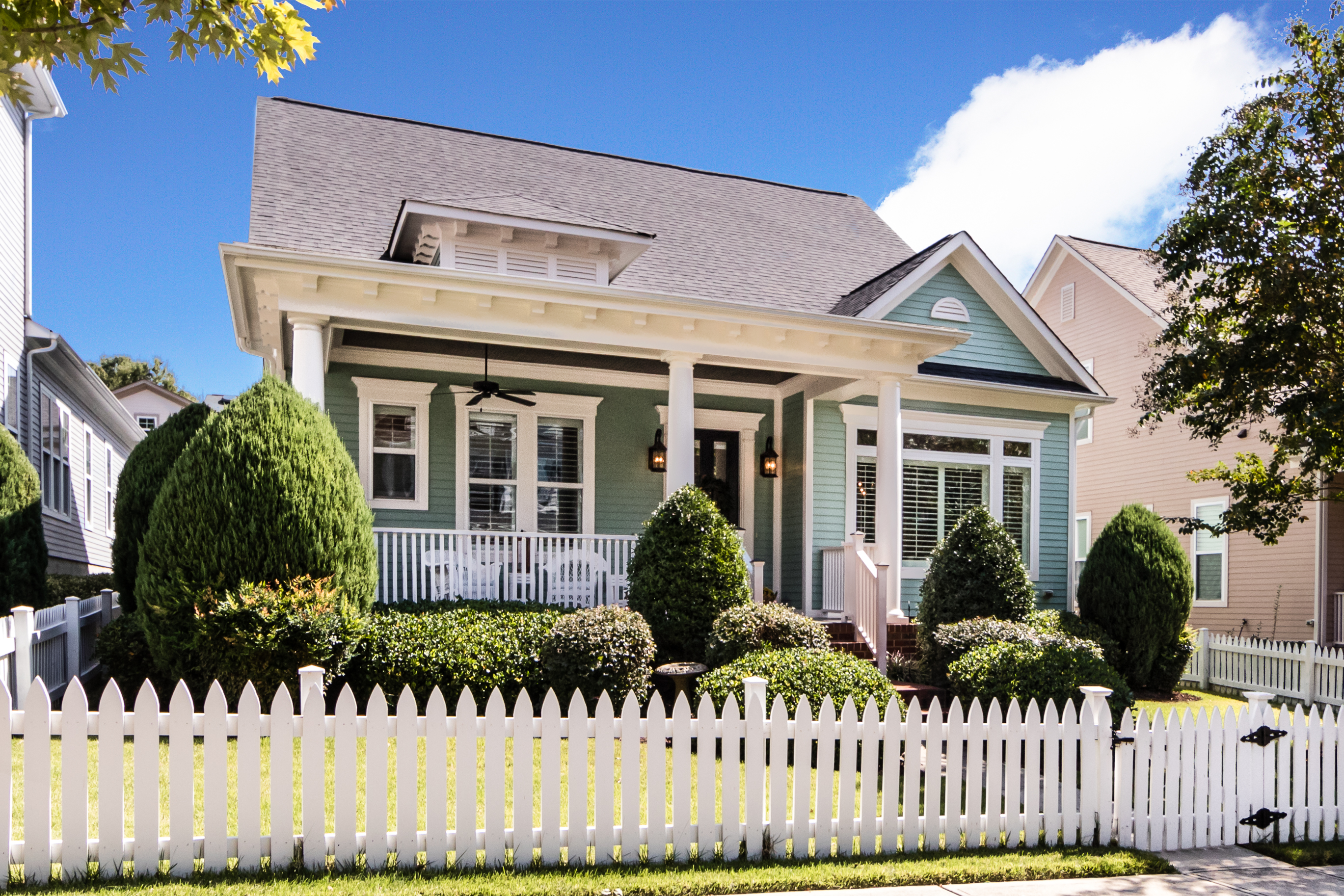 Charleston-style home with covered front porch and fenced yard in Ardrey Commons