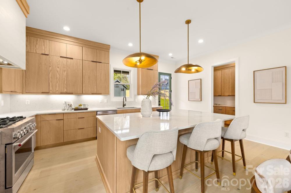 Stunning single family new build by KO Construction in vibrant Oakhurst, just minutes to Plaza Midwood, Cotswold and Uptown Charlotte. Step inside to an inviting open-concept floor plan graced by soaring 10-foot ceilings, abundant natural light, and elevated designer finishes throughout. Custom details abound, including shiplap-accented ceilings in the primary suite, intricate wall trim, elegant crown molding, and sophisticated lighting fixtures that elevate every room. The spacious great room impresses with custom built-in shelving featuring a cozy gas fireplace - ideal for gatherings year-round. A versatile main-level guest bedroom (or home office) with its own full bath offers privacy and convenience. Upstairs, retreat to a grand primary suite that’s a true showstopper: flooded with light, featuring a trey ceiling, expansive walk-in closet, and a spa-like en-suite bath with premium selections. Three additional bedrooms provide comfort, including two with private ensuite baths meticulously crafted with high-end designer touches. A large loft space serves as a flexible bonus area—perfect for a home office, playroom, media lounge, or gym. Outside, relax on the covered rear balcony overlooking a spacious, private backyard with a refurbished storage shed. This functional, modern layout combines timeless craftsmanship with contemporary style in one of Charlotte’s most sought-after intown locations. Minutes from the eclectic shops, restaurants, and nightlife of Plaza Midwood and Cotswold Village, with quick access to Uptown Charlotte via Independence Boulevard. Don’t miss this rare opportunity to own new construction on a third of an acre in an established, tree-lined neighborhood with charming appeal; all within a short drive to Cotswold Village shopping center.