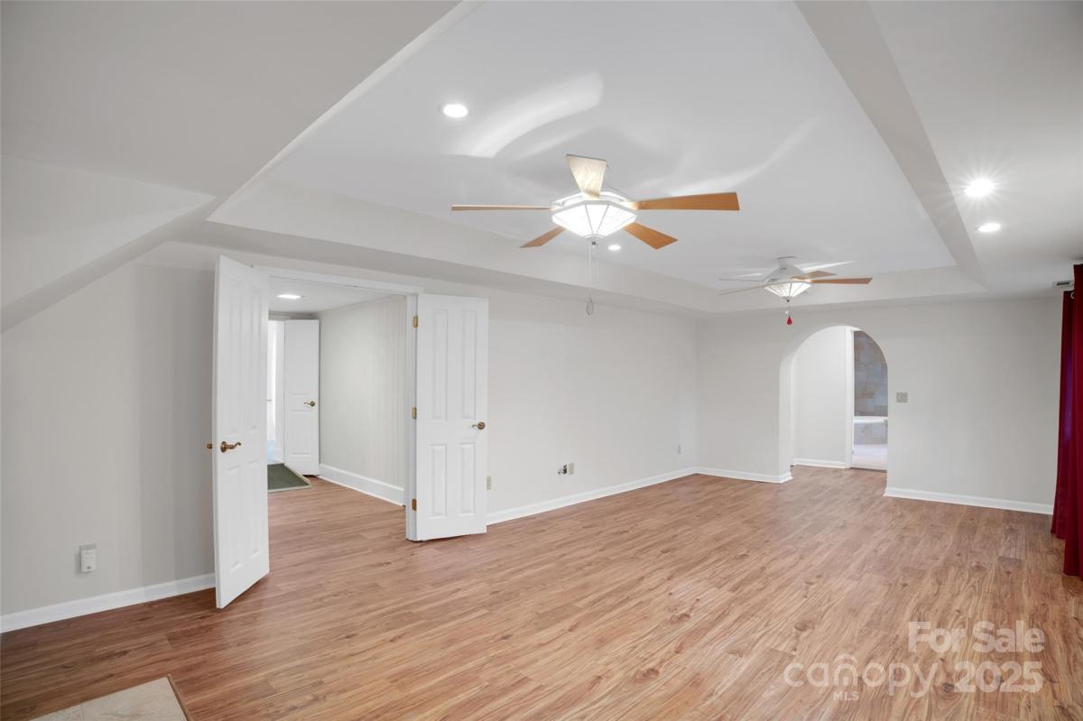 Spacious home, flexible interiors with over an acre of private outdoor living and outstanding location convenience to Uptown and Matthews. Lovely split tri-level residence that's thoughtfully crafted with the option of multigenerational living, boasting two gas fireplaces, 5 spacious bedrooms and 4.5 well-appointed bathrooms. With office space, a tiled, covered patio, radiate floors in the primary bathroom, and a separate workshop thoughtful touches are found throughout. The quiet Burtonwood neighborhood found in the MoRA community, has no HOA, near Mason Wallace Park, OMG Donuts, Hawthornes Pizza, Starbucks, and Independence Library. 6-month Home Warranty offered.