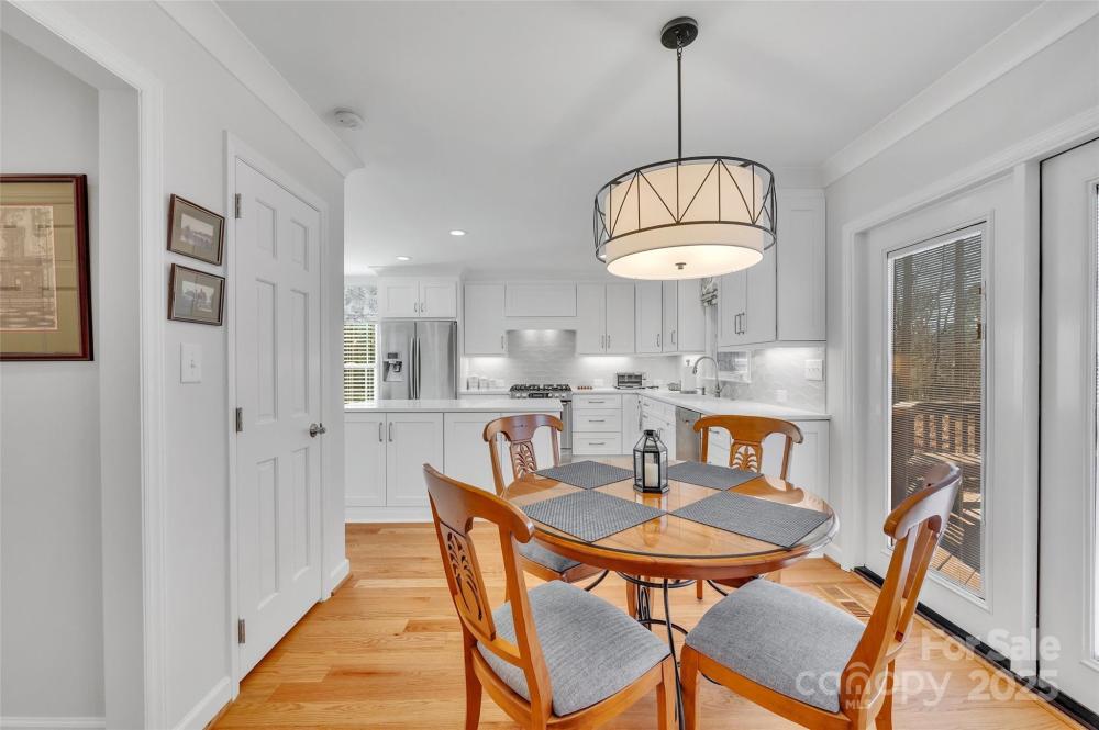 Great opportunity to own a wonderfully updated, original owner, full brick home located in the highly desirable neighborhood of Burtonwood. Upgrades include: beautiful wood floors on the main level, a bright & airy open-concept chef's kitchen with quartz countertops, dual fuel gas range with gas cooktop, electric oven, stainless steel appliances and a microwave drawer. In addition, there is recessed lighting, soft close cabinets/drawers and a large center island. The spacious primary bedroom features an updated ensuite bathroom with a convenient walk-in shower and ceramic tile flooring. The 2nd bedroom upstairs has a walk-in closet and a very convenient updated ensuite bathroom. This bathroom can also be used by occupants of the large 3rd bedroom. The energy-efficient windows by Andersen were installed in 2018. The HVAC was installed in 2014 and is maintained by Morris-Jenkins. In 2021 the architectural roof was installed. This home has an abundance of closets and storage spaces, lots of privacy, a fenced-in backyard, and is surrounded by lush mature landscaping and a heavy tree canopy. Enjoy your surroundings year round, either indoors in the sunroom or outside on the large, recently stained deck built by Archadeck. There is also an existing natural gas line for a grill. Easy access to the main roads in and out of town as well as nearby South Park, Cotswold, and Plaza Midwood. There is also a community park and the very popular Greenway just minutes away.