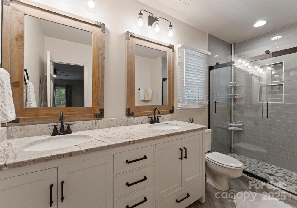 Welcome home to this beautifully remodeled two-story Southern Charmer in the sought-after neighborhood, Stonehaven! With timeless curb appeal and a wraparound front country porch, this 4 bed, 2.5 bath home blends classic charm with new modern updates. Stylish gourmet kitchen with white cabinetry, granite, stainless appliances and pantry. Breakfast area off kitchen and also separate dining room, or perfect for a home office. Oversized cozy living room with wood burning fireplace sets the calming vibes throughout. Step out to your large deck great for entertaining and serene views over your .47 acre fenced lot with firepit and storage shed. Drop zone space convenient to laundry off your side entry. Upstairs features a large primary suite with luxury bathroom- dual sinks, walk in shower, and walk in closet! NEW mohawk engineered hardwoods throughout, new fans, new lighting, new paint, new hardware, 2019 windows. Perfectly manicured zoysia grass front lawn. Meticulously cared for property and incredible VALUE!