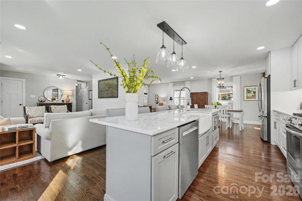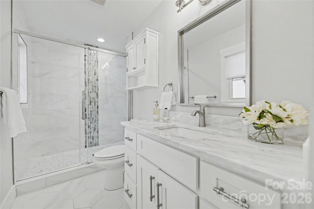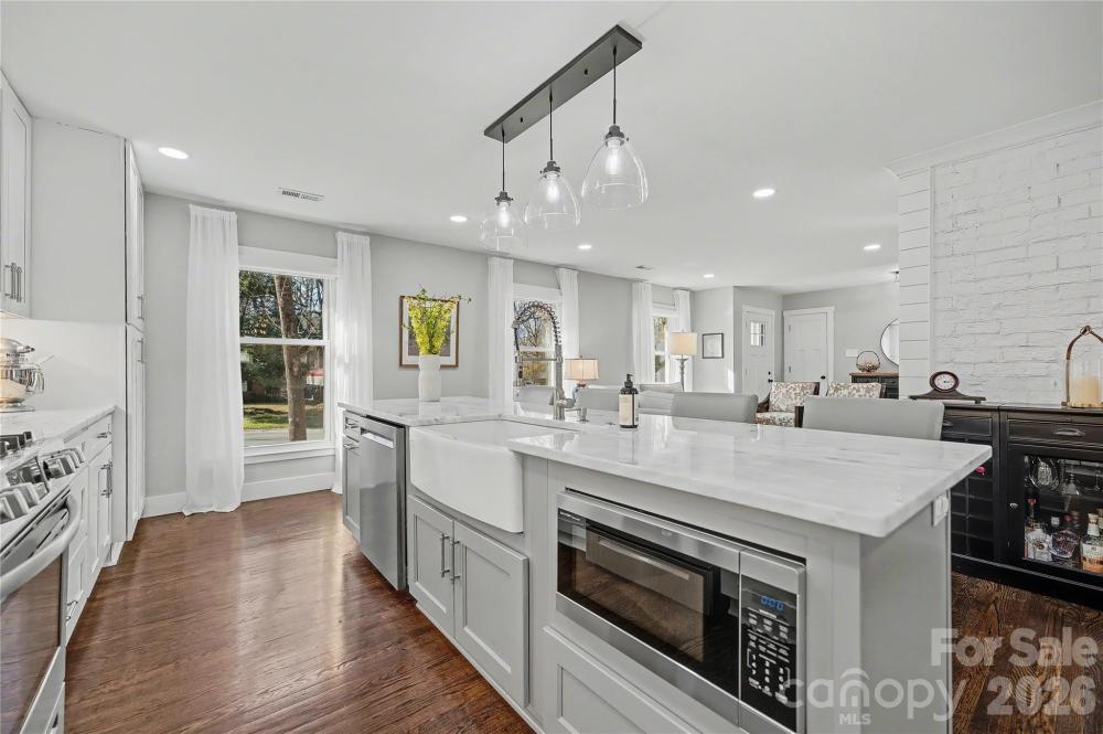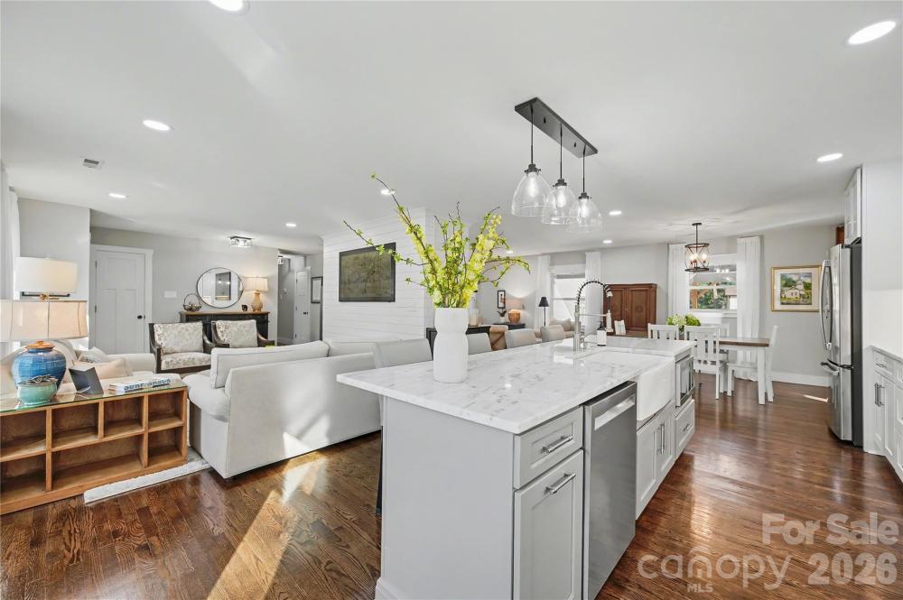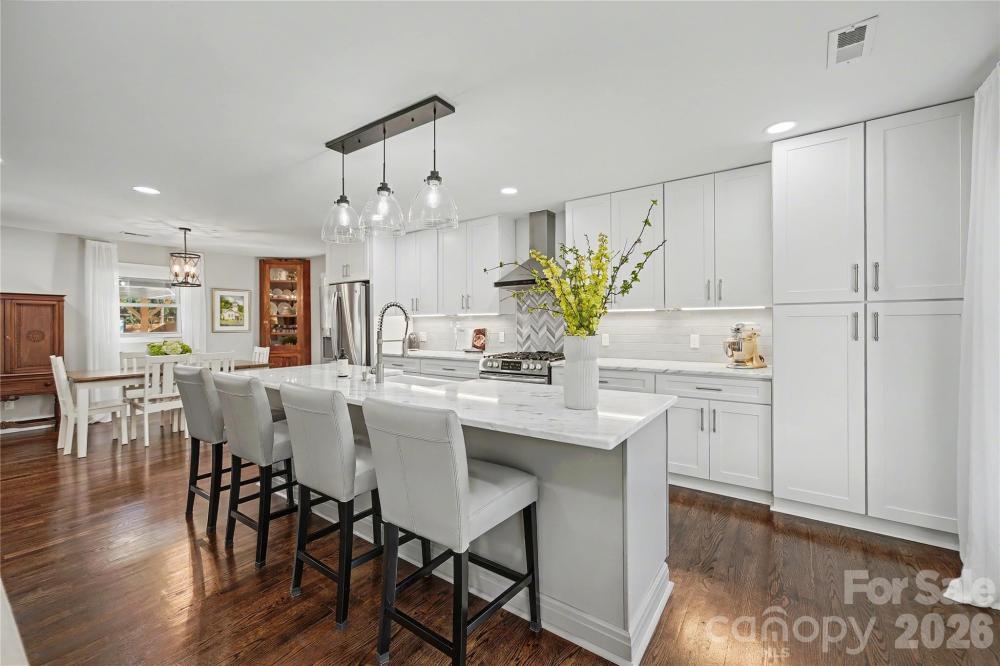 This stunningly renovated full-brick ranch home will exceed buyer's expectations in quality, style, layout and functionality. Wonderful curb appeal, large private lot and covered entry welcome you into the elegant open floor plan with gleaming hardwood floors and beautiful light. The stylish living room has shiplap accents and recessed fixtures. Luxurious kitchen boasts a large island with marble countertops, beautiful cabinets, stainless steel appliances, pendant lights and farm sink with elegant designer faucet. Perfect for entertaining with room for seating at the island and easy access to the dinning room and patio. Spacious den has custom built-ins with quartz countertops and direct-vent gas fireplace with remote. Open modern feel but with comfortable spaces to relax. Primary bedroom has spa-like ensuite bath with marble counters and large shower. Primary has two closets each done by Closets by Design. There are two additional bedrooms for family, guests or office space. All bedrooms have hardwood floors. Lovely guest bathroom with marble countertop. Sellers have created several exceptional spaces which include a redesigned mudroom, play/flex nook and new enlarged laundry room. Mudroom keeps everything organized with cabinets-some glass, cubbies and bench. Adorable play/flex nook with enclosed bench with shiplap accents and cabinets. Fabulous laundry, not typically found in many ranch homes-has utility sink and custom cabinets and shelves. Home has tons of storage! Rinnai Tankless Water Heater installed. Convenient covered back entrance leads to an amazing fenced and gated backyard. Quality privacy fence was added with electric gate. French drains added that lead to the street. Wonderful sunny yard for many activities. Beautifully designed carport with large floored and lighted storage closet and trash enclosure were added recently as well as easy to maintain Trex patio for relaxing or entertaining. Gas line available on patio/deck. Great shed at the back of the lot has newer roof in 2023. Main home had new roof in 2021. Gutter filters added as well. New HVAC in 2022. Fixture exceptions- freezer in laundry room and the grill on patio. Located on a quiet tree-lined street close to Cotswold, MoRA, SouthPark with easy access to Uptown! Beautifully Renovated and Upgraded! Move-In Ready! Thank you for all of the interest. The sellers have received multiple offers so are asking for best offers by Saturday January 17th at 10:00 AM.