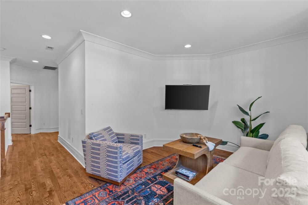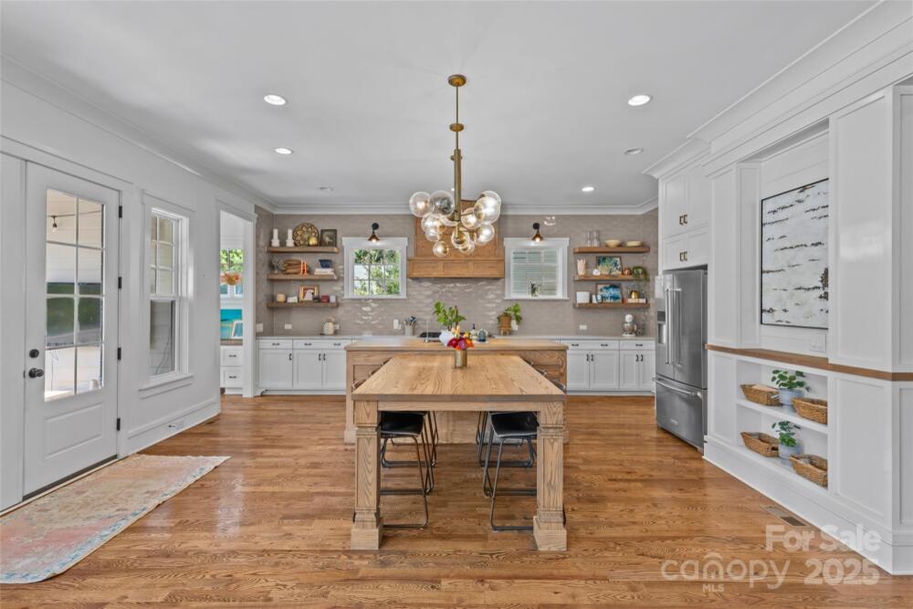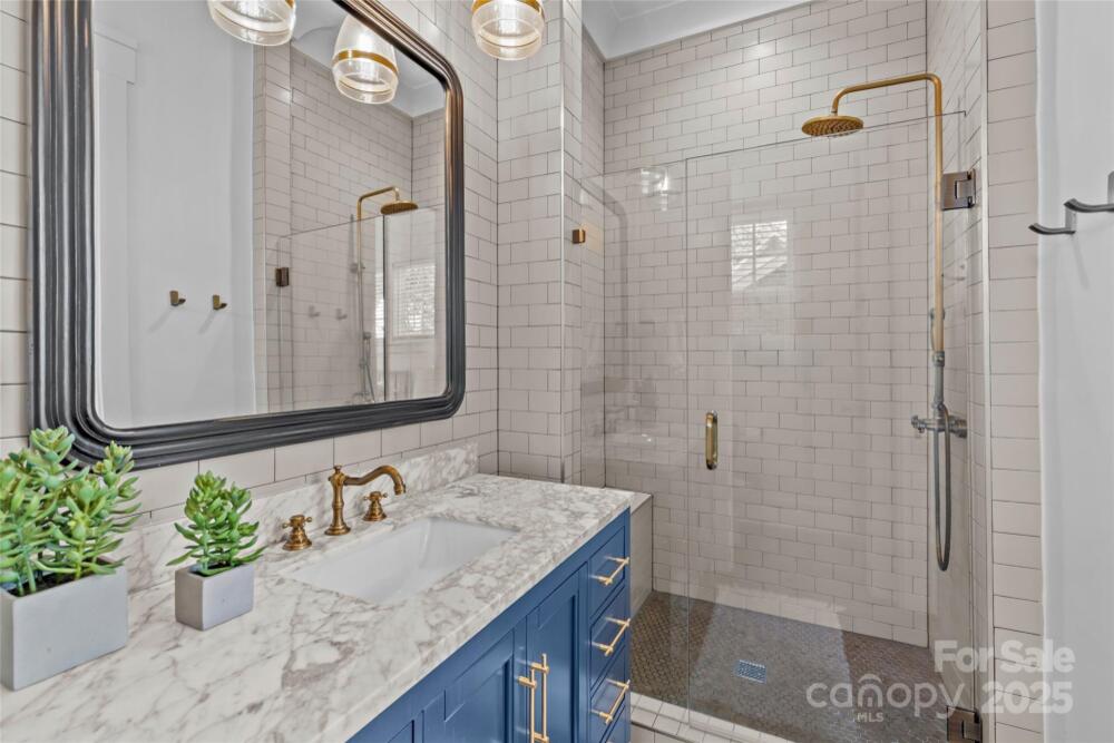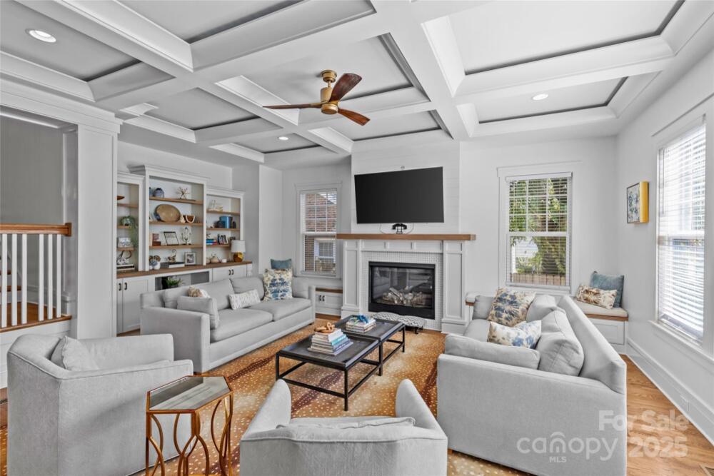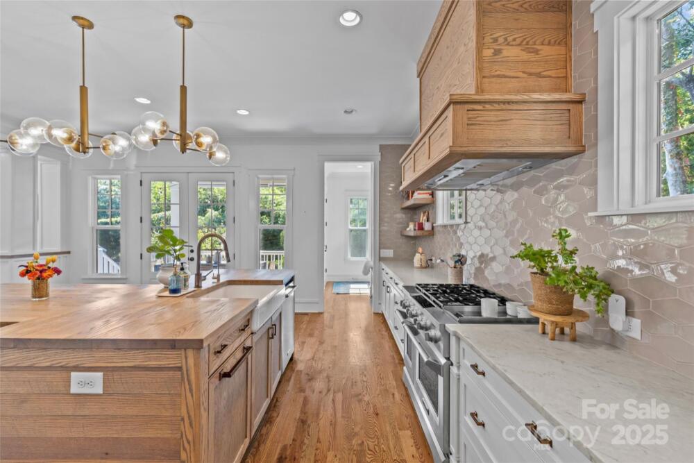 Nestled on a no-outlet street in desirable Chantilly, this modern and stylish craftsman-style home awaits. Built in 2018 by Carolina Craftsman Builders, this 5-bedroom, 3.5-bathroom home is designed with hosting in mind. The chic formal dining room features french doors, wainscoting, and connects to the kitchen via a butler’s pantry/bar. The timeless kitchen has classic white cabinetry, counter-to-ceiling backsplash tile, a natural wood island with seating, and a walk-in pantry. The open-concept living room boasts decorative ceiling moldings, built-in bookcases, and a cozy gas fireplace with a beautiful mosaic. The convenient, main-level bedroom and full bathroom are perfect for guests. A spacious loft at the top of the stairs creates endless flexibility. The inviting primary suite on the second level is a true retreat, thanks to a walk-in closet and a tranquil en-suite bathroom with a double vanity, clawfoot tub, and a separate shower. Secondary bedrooms are well-appointed and share a full bathroom with a double vanity and shower/tub combination. The fifth bedroom also makes for a wonderful dedicated office on the second level. Thoughtful architectural details, elegant finishes, and hardwood floors add to the home’s appeal. Great storage for easy organization throughout, including a main-level mudroom with a built-in workspace/cubbies and an upstairs laundry room. A fenced backyard is a private paradise with a covered deck, large patio, and mature landscaping. Walking distance to the best of Plaza Midwood, Elizabeth, and the Chantilly Ecological Sanctuary and Park!