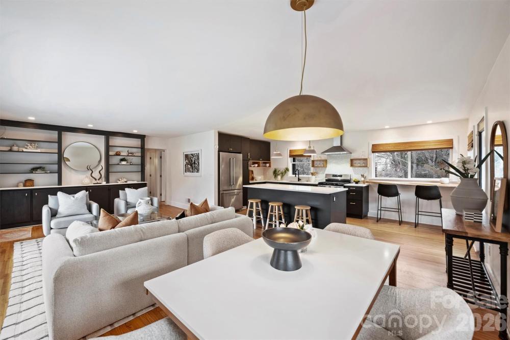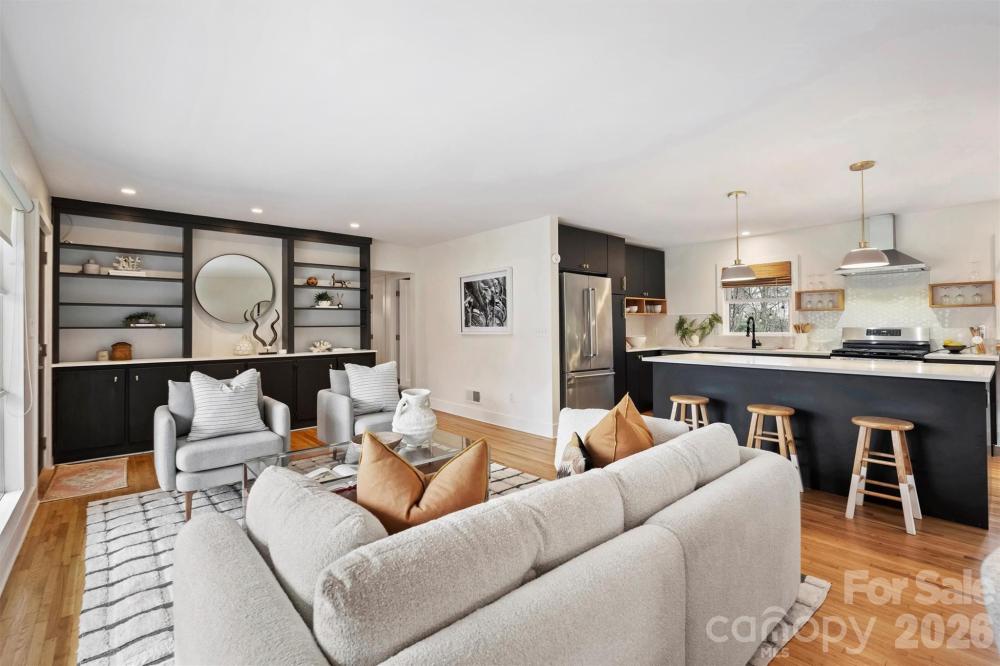 Swanky Renovated Mid-Century Modern Brick Ranch In The Heart Of Country Club Heights! Just Steps From Shamrock Park, Shamrock Gardens Elementary, And Charlotte Country Club, It Truly Doesn’t Get Better In Terms Of Location In The Plaza Area! This Stylish Home Features A Gorgeous Modern Kitchen With A Large Island And Top-Of-The-Line Appliances. The Main Level Offers Three Bedrooms And A Beautifully Renovated Full Bathroom, Accented With Wallpaper And Thoughtfully Curated Finishes. The Fully Finished Lower Level Adds Incredible Flexibility And Can Easily Function As An Airbnb, In-Law Suite, Studio Apartment, Or Additional Living Space. It Includes An Open Living Area With A Fireplace, A Kitchenette With Sink, Mini-Fridge, Plus An Area Perfect For An Office, Bedroom, Gym, Or Creative Studio. The Options Are Truly Endless. The Attached Garage Offers Extra Storage, Workshop Potential, Or Space For A Small Car. The Backyard Is Immaculate And Serene, Featuring A Raised Gravel, Stone, And Wood Patio Ideal For Entertaining Or Relaxing. Enjoy Unbeatable Walkability To Plaza Midwood And NoDa Favorites: Summit Coffee, Humbug, Pure Pizza, And More, While Being Minutes From Uptown. This One Is Truly Special!
