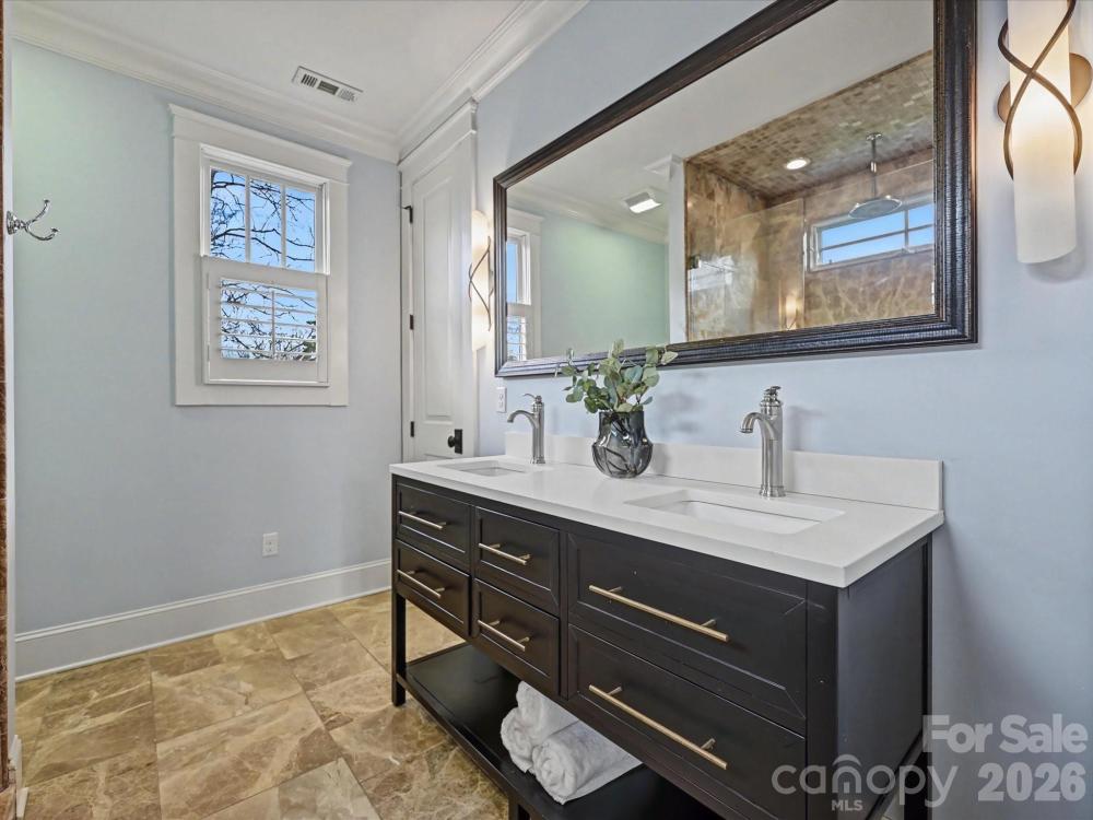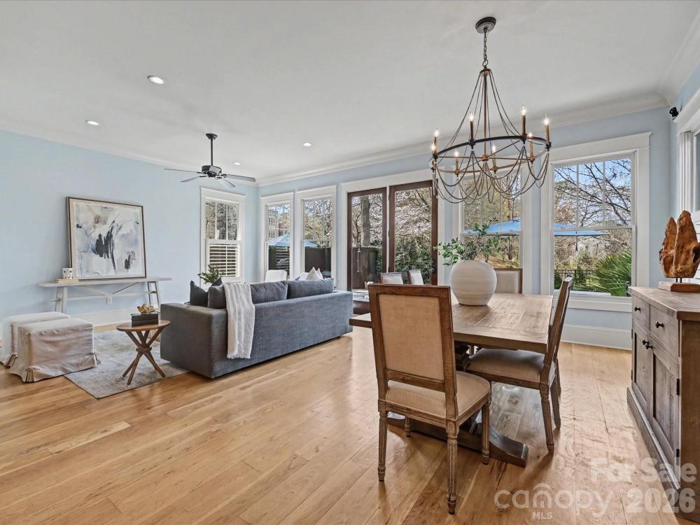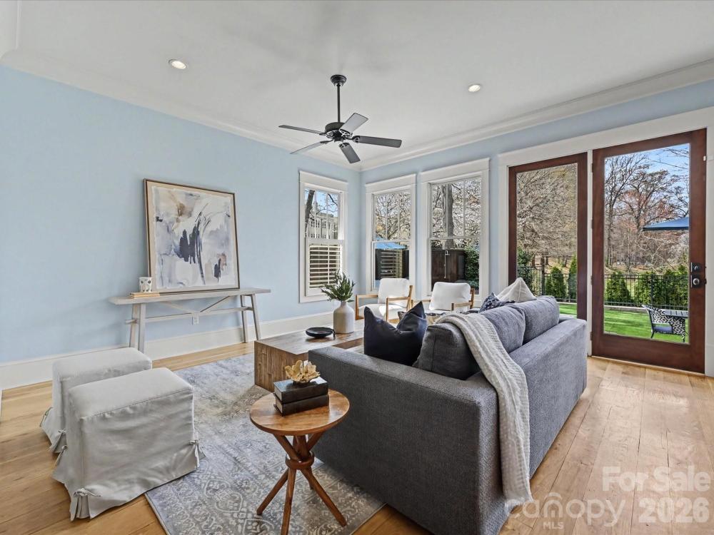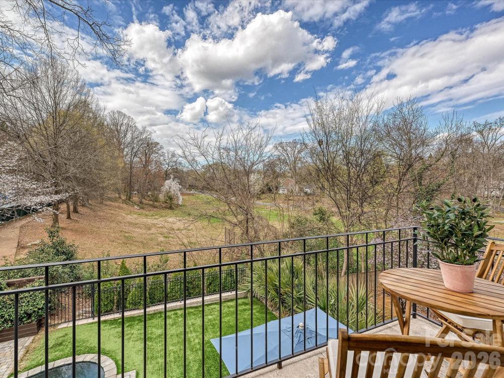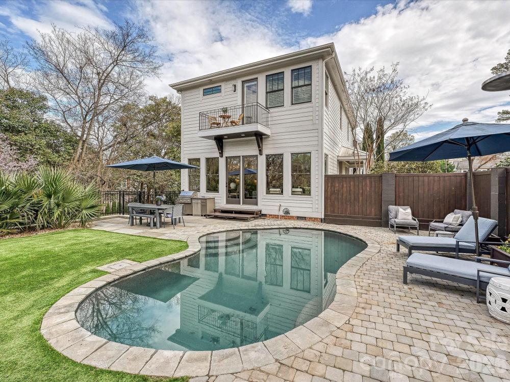 Introducing 1111 Pierce Street, a stunning columned Dilworth duet overlooking Latta Park. Living like a single-family home, this residence features a private turfed backyard and saltwater pool. One of only five properties contiguous to Latta Park, this opportunity is rare and unmatched. Easy living awaits in this immaculate custom-built home. Step inside the airy, open floor plan featuring a chef’s kitchen, dining room, living room, and sitting room with custom wine storage all on the main level with 10-foot ceilings. The beautifully updated chef’s kitchen features a spacious quartz island with custom cabinetry, a 36-inch gas range with griddle, pot filler, GE Monogram refrigerator, and double ovens. Natural light pours in through large windows and beautiful doors that open to the picturesque backyard. Step outside to your private sanctuary, complete with a gleaming saltwater pool, bluestone pool deck, exterior bathroom, and outdoor shower. With Latta Park just beyond the trees, the backyard feels like an extension of the park itself. Upstairs are three bedrooms, two full baths, and a fourth bedroom or bonus room. The spacious primary suite offers a tray ceiling and a Juliet balcony overlooking the pool and the lush park landscape. The primary bath features luxurious heated floors and a generous stone shower. White oak flooring runs throughout the home, complemented by wool carpeting in the bonus room and stone tile in the bathrooms and laundry. Enjoy the best of Dilworth living. Walk to the Greenway, Midtown, South End, CMC, and the boutiques and restaurants of East Blvd. This exceptional Dilworth residence offers the rare chance to enjoy park-side living in the heart of Charlotte.