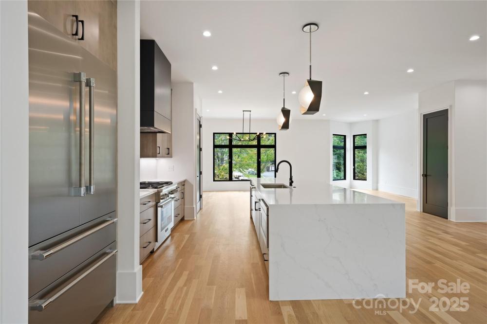 Brand-new modern 4-story townhome in coveted Myers Park, walkable to Dilworth shopping/dining, East Blvd & Sugar Creek Greenway. Spanning 4,022 sqft., this residence features 10’ ceilings, 8’ doors, blonde white oak hardwoods, and a private elevator to all levels, including the expansive rooftop terrace. The chef’s kitchen boasts custom cabinetry, Thermador appliances, waterfall-edge island, gas range/pot filler & French-door refrigerator. The primary suite offers a spa-like bath with soaking tub, rain shower, sleek tile, water closet & custom walk-in closet. Each ensuite bedroom is finished with custom tile. The versatile third level includes a full bath and open living space that is roughed in for an entertainment bar, and separate room ideal for an office, lounge, or 4th bedroom. Additional highlights include a laundry room with sink & side-by-side space and abundant natural light. A rare opportunity to own a luxury new construction home in Charlotte’s premier neighborhood.