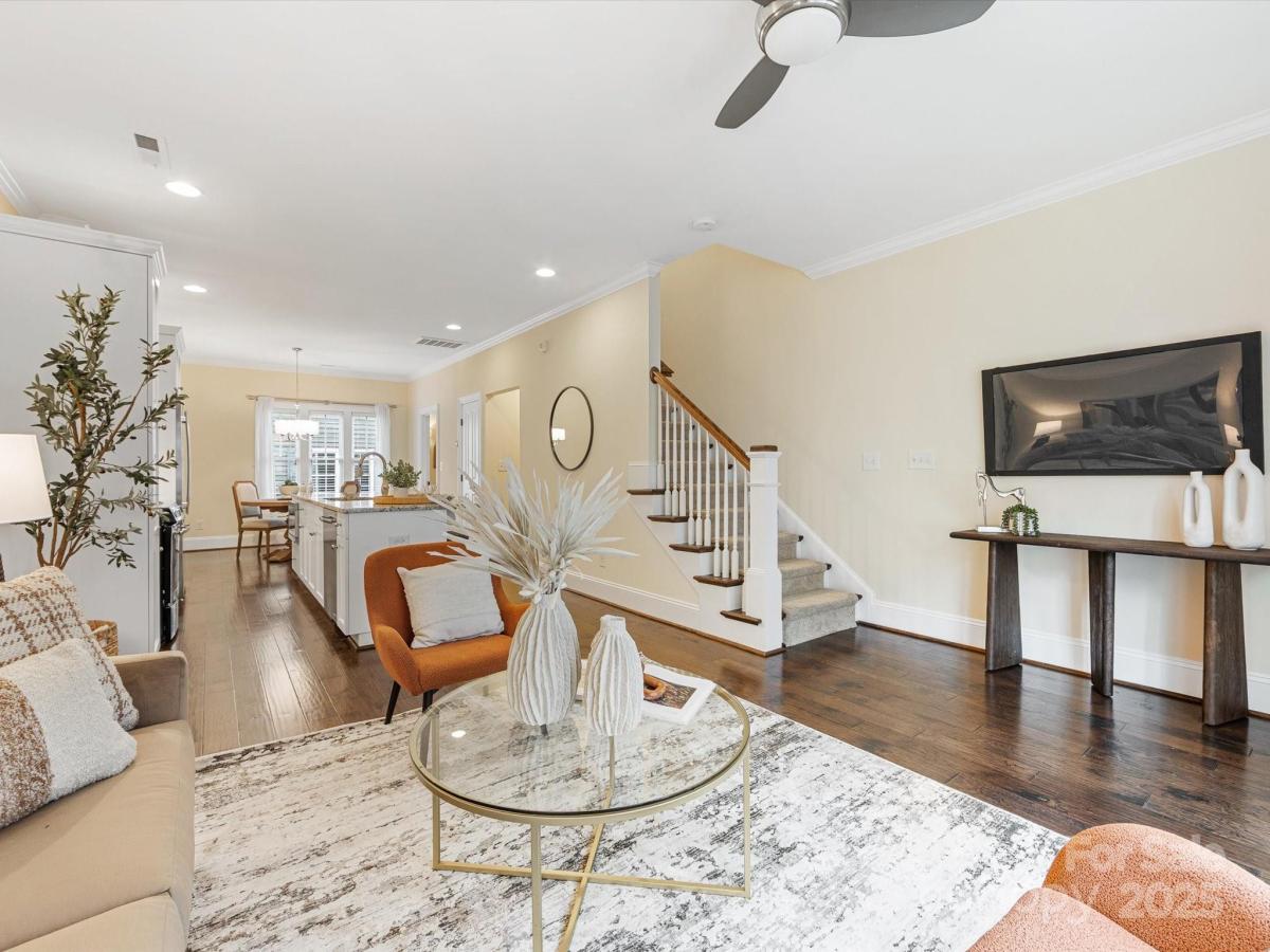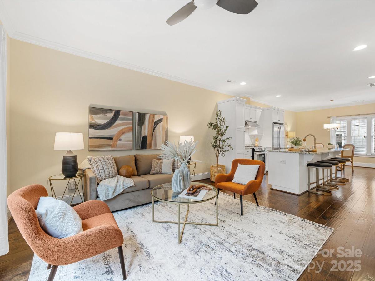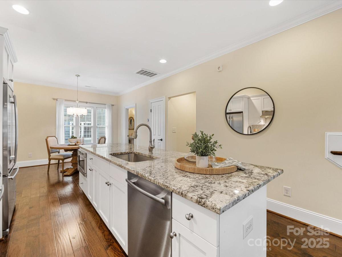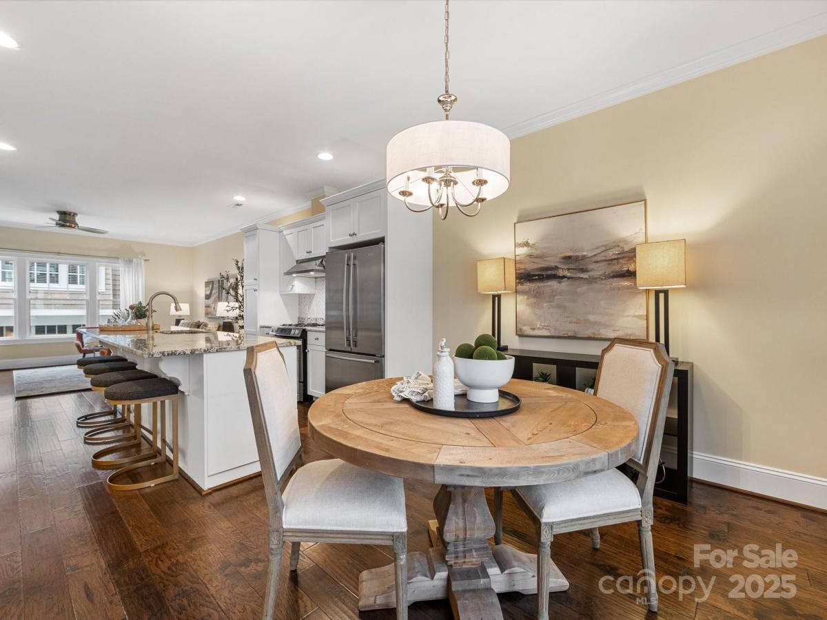 Live in the heart of historic Dilworth with close proximity to shops, restaurants and parks in Dilworth and SouthEnd. This three-story townhome allows for flexibility with an option for working from home, privacy with two split bedrooms on the upper level and the convenience of being located in such a prime location. Enter down a quaint walkway to a charming gated front patio with a charming dutch door entry. A main level office/flex space allows quiet work from home options or another place to gather. Head up one level to an open main living area that includes a chef's kitchen with gas ranch, granite counters, a chevron tiled backsplash, and with cabinetry with large center island. A dining area and living room are on either side and have large windows allowing for tons of natural light. Beautiful hardwood floors on the main and upper level. Upstairs you'll find a spacious primary suite with two closets, dual vanity, added storage and an oversized walk-in shower. Second bedroom also includes an ensuite. Laundry is conveniently located on third floor. The garage is accessed by the rear alley and is a rare find in Dilworth- such a nice added bonus. It includes shelving, a storage niche and large storage closet. Don't miss this rare opportunity for a prime Dilworth location with many upgraded features inside.