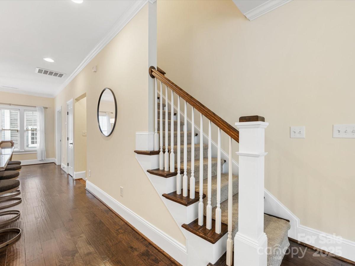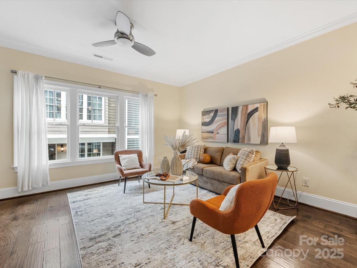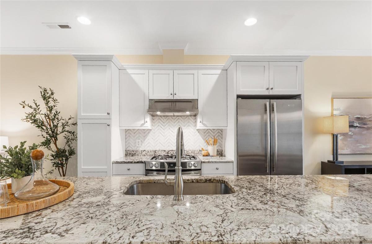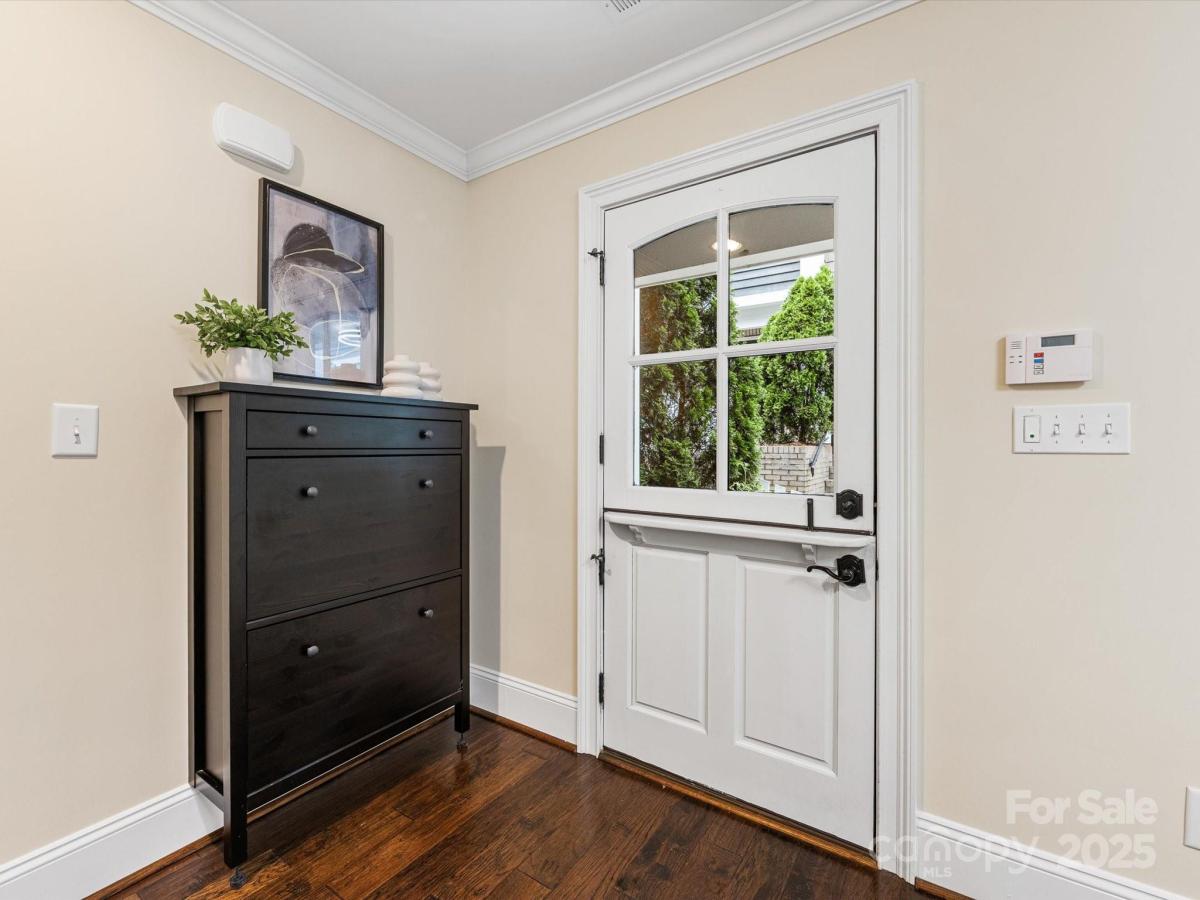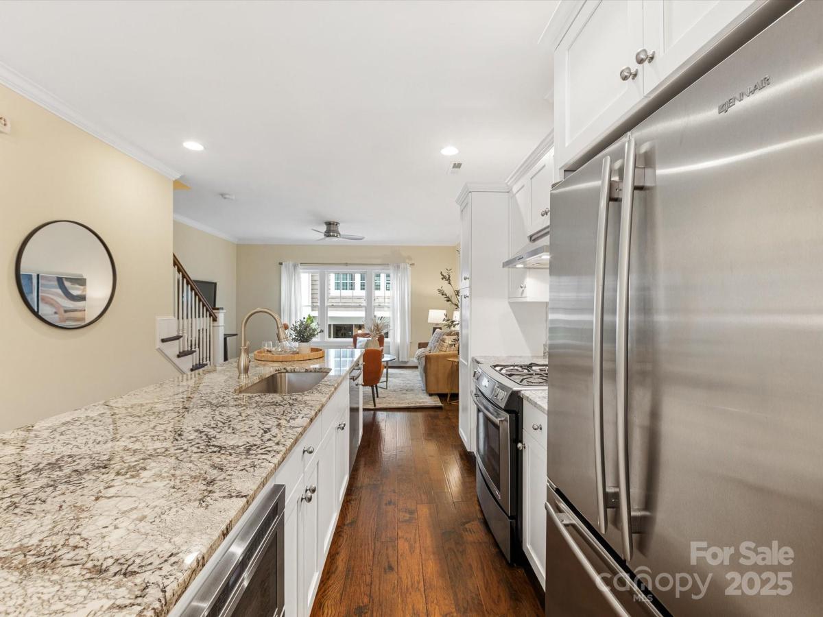 Live in the heart of historic Dilworth with close proximity to shops, restaurants and parks in Dilworth and SouthEnd. This three-story townhome allows for flexibility with an option for working from home, privacy with two split bedrooms on the upper level and the convenience of being located in such a prime location. Enter down a quaint walkway to a charming gated front patio with a charming dutch door entry. A main level office/flex space allows quiet work from home options or another place to gather. Head up one level to an open main living area that includes a chef's kitchen with gas ranch, granite counters, a chevron tiled backsplash, and with cabinetry with large center island. A dining area and living room are on either side and have large windows allowing for tons of natural light. Beautiful hardwood floors on the main and upper level. Upstairs you'll find a spacious primary suite with two closets, dual vanity, added storage and an oversized walk-in shower. Second bedroom also includes an ensuite. Laundry is conveniently located on third floor. The garage is accessed by the rear alley and is a rare find in Dilworth- such a nice added bonus. It includes shelving, a storage niche and large storage closet. Don't miss this rare opportunity for a prime Dilworth location with many upgraded features inside.