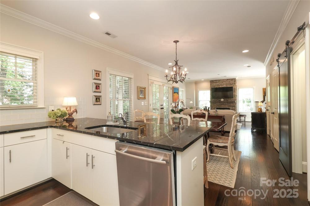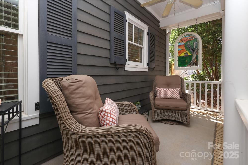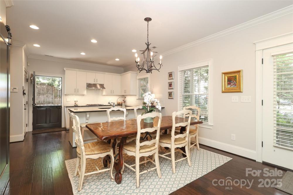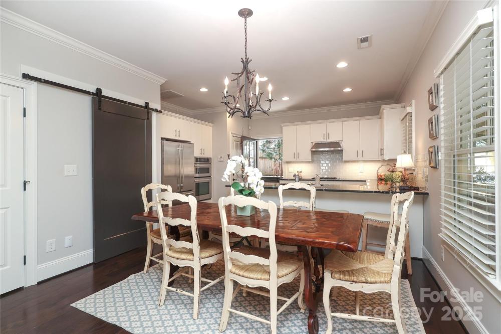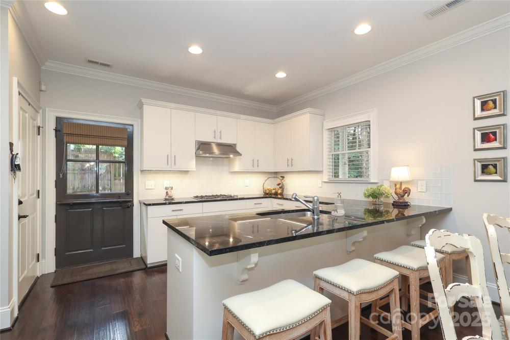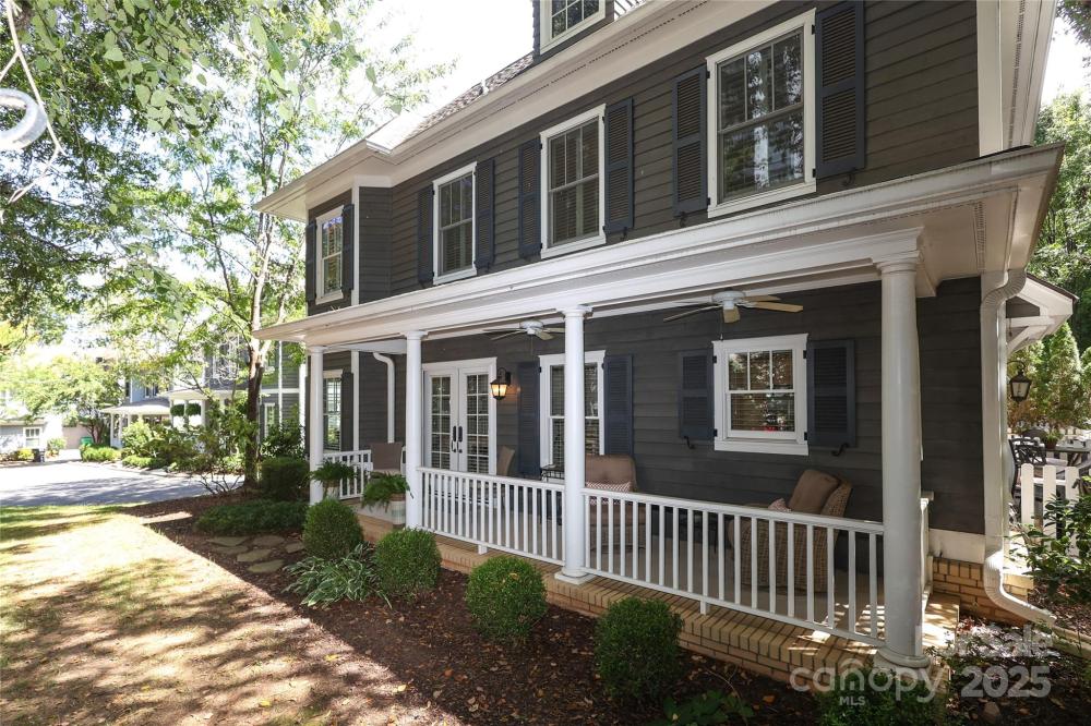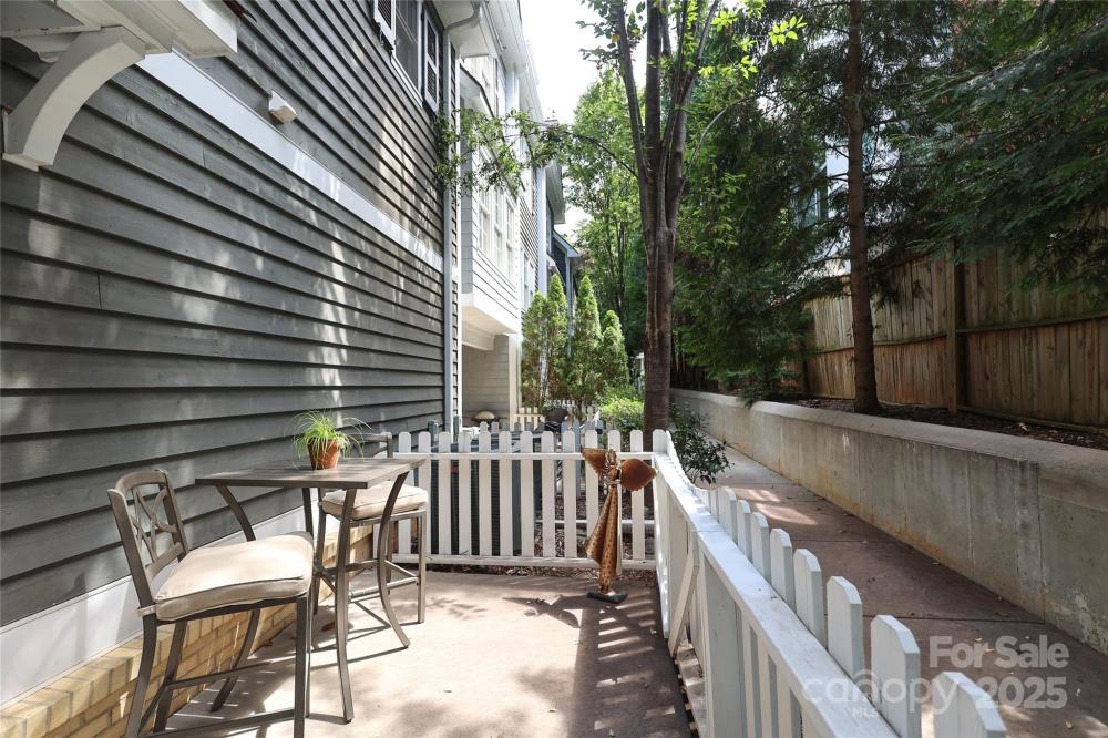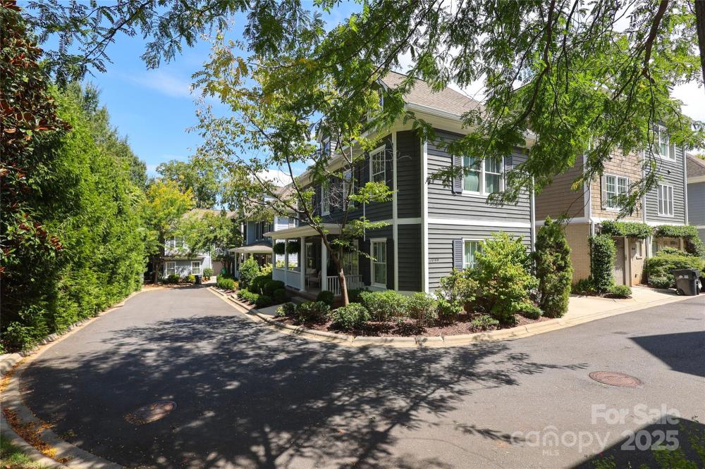 Live in the heart of one of Charlotte's most sought-after neighborhoods-just steps away from the best shops, restaurants and nightlife Dilworth and Southend have to offer. Tucked away in a charming, private Charleston style community with gas lanterns, this townhome exudes character with its timeless curb appeal. Inside you'll find an open floor plan perfect for entertaining featuring hardwood floors throughout the living and bedroom areas. The kitchen boasts white cabinetry, an expansive peninsula, gas cooktop and a subway tile backsplash. A hidden dry bar behind a sliding barn door adds a fun & functional surprise and a clever dutch door opens to the back patio. Enjoy even more indoor/outdoor living with a set of french doors that lead you to a covered side porch perfect for morning coffee or evening wind-downs. Upstairs is a spacious primary suite with his and hers closets with closet systems and a spacious primary bath. Two more bedrooms with a shared full bath complete the upstairs. Don't miss this rare opportunity for low maintenance living in a premier location.
