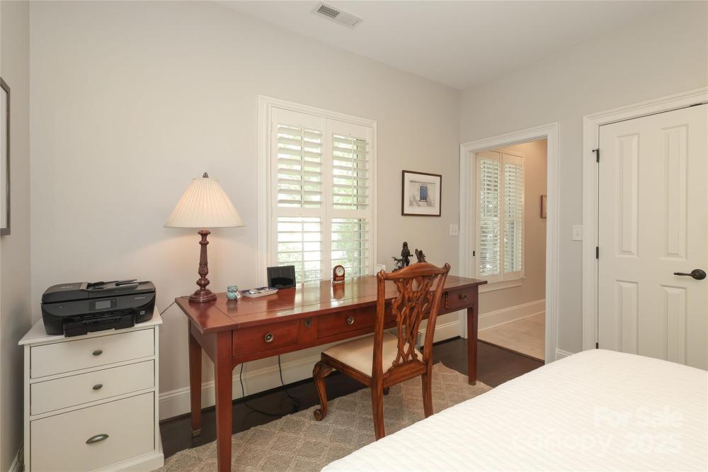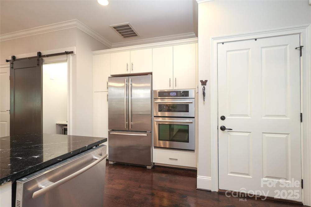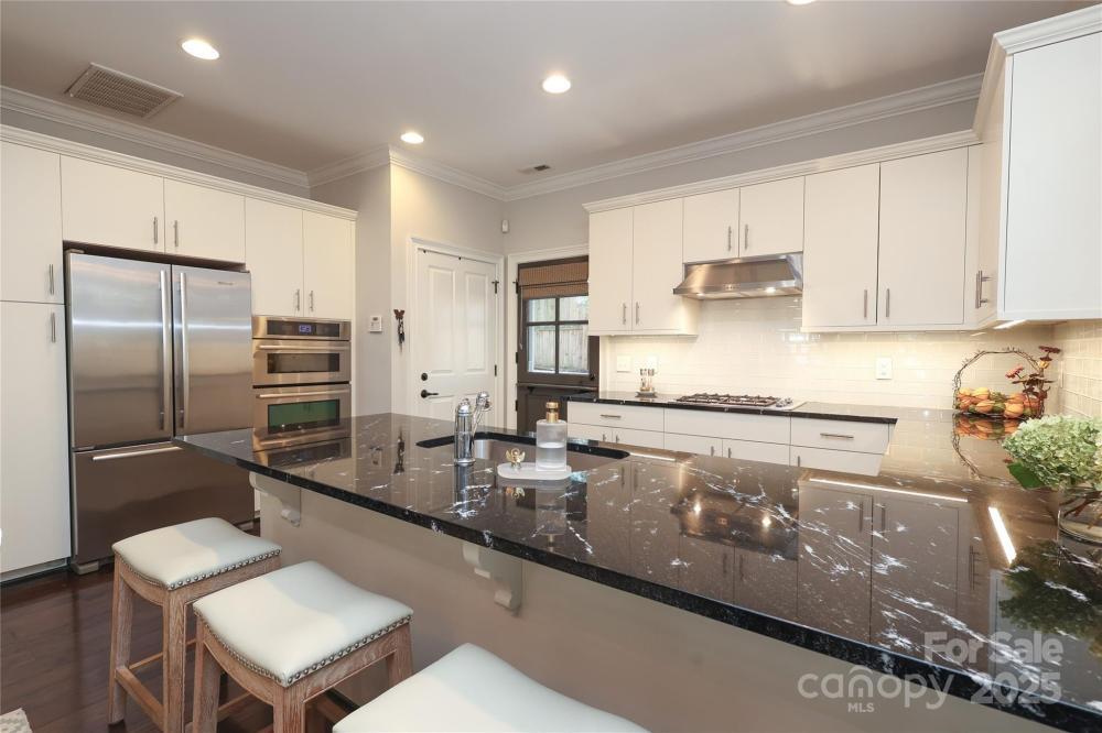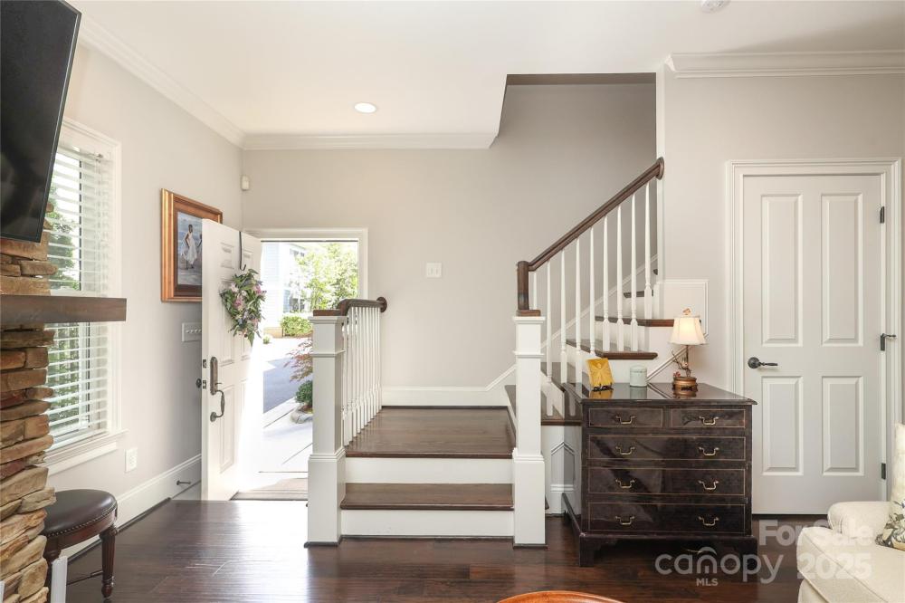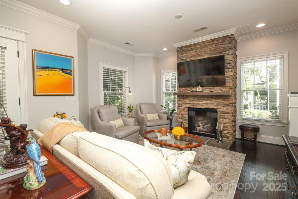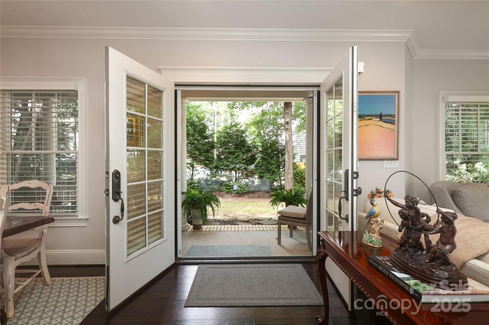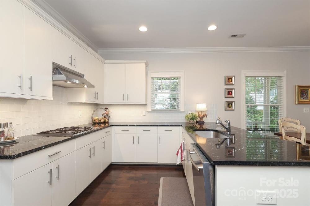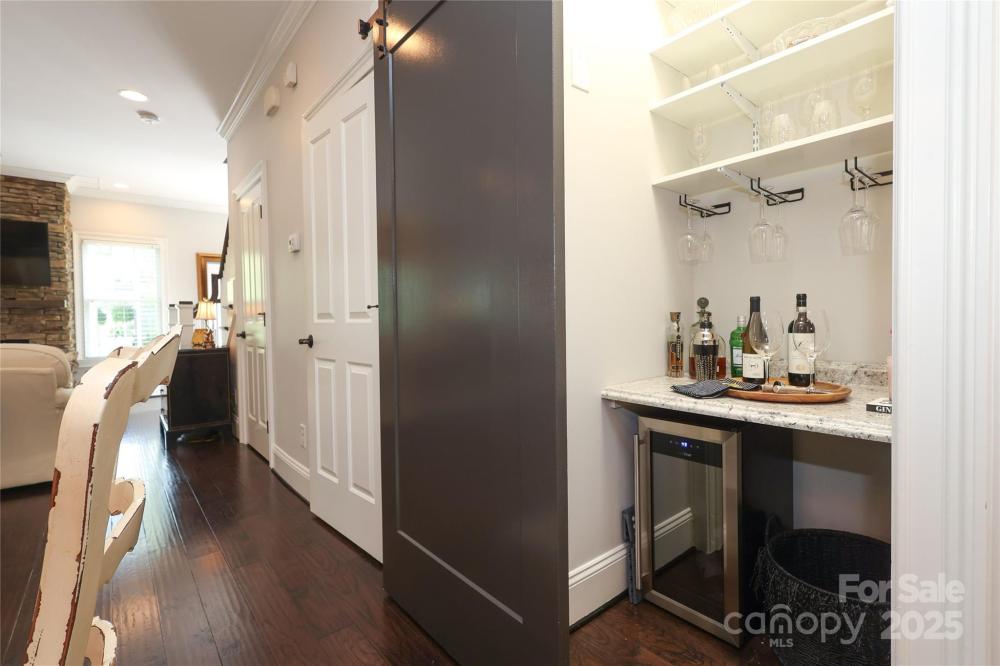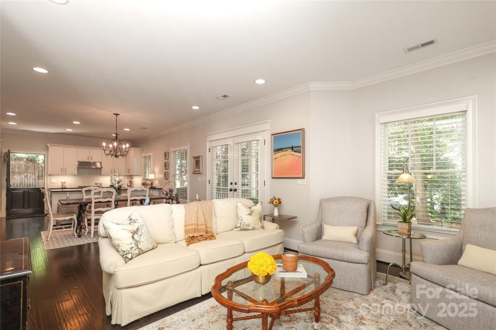 Live in the heart of one of Charlotte's most sought-after neighborhoods-just steps away from the best shops, restaurants and nightlife Dilworth and Southend have to offer. Tucked away in a charming, private Charleston style community with gas lanterns, this townhome exudes character with its timeless curb appeal. Inside you'll find an open floor plan perfect for entertaining featuring hardwood floors throughout the living and bedroom areas. The kitchen boasts white cabinetry, an expansive peninsula, gas cooktop and a subway tile backsplash. A hidden dry bar behind a sliding barn door adds a fun & functional surprise and a clever dutch door opens to the back patio. Enjoy even more indoor/outdoor living with a set of french doors that lead you to a covered side porch perfect for morning coffee or evening wind-downs. Upstairs is a spacious primary suite with his and hers closets with closet systems and a spacious primary bath. Two more bedrooms with a shared full bath complete the upstairs. Don't miss this rare opportunity for low maintenance living in a premier location.