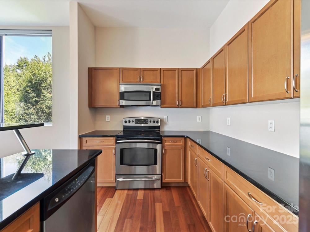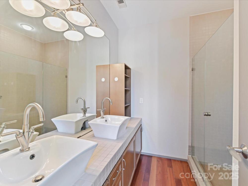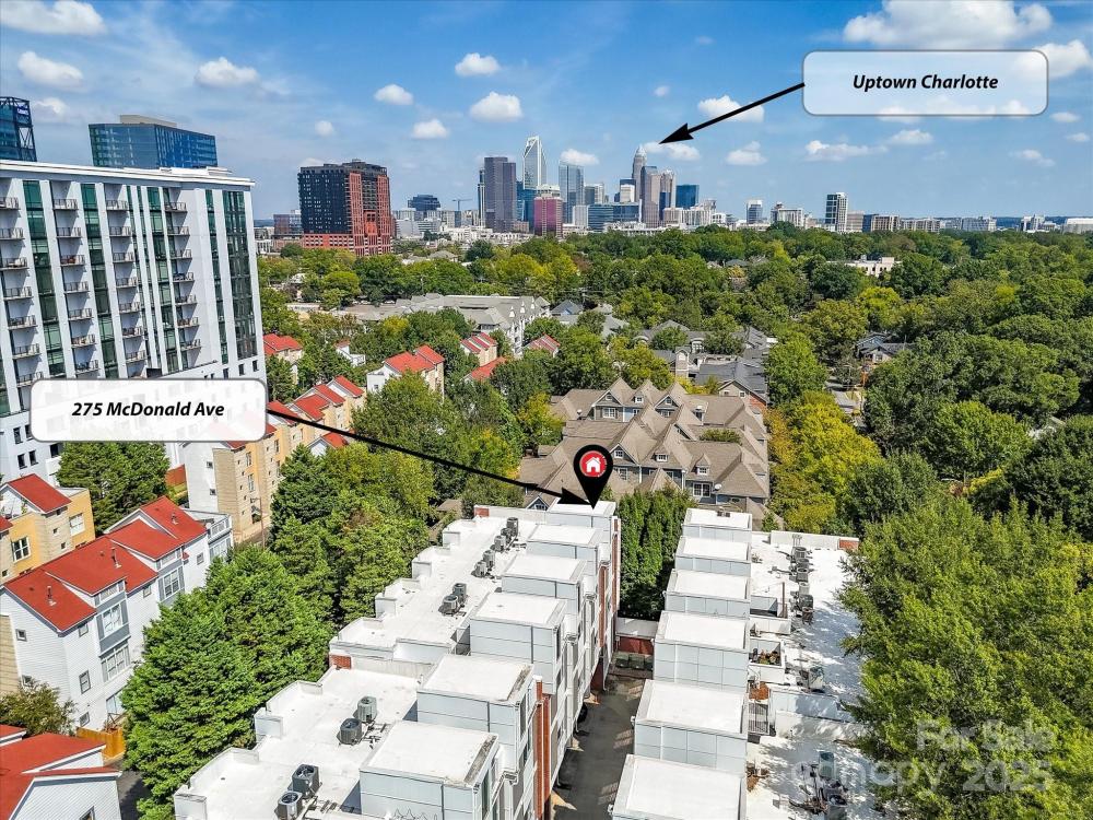 Welcome to Lofts Dilworth, a contemporary condo complex located in the heart of Dilworth and just minutes to Southend! Enjoy the wonderful walkability to some of Dilworth's best restaurants or enjoy the ease of shopping at the Atherton Mill in Southend. This 3 bedroom 3 FULL bath condo is a rare floorplan in this complex and with it being an end unit, located closest to the city, you cannot beat the Uptown Charlotte & Southend skyline views from your very own rooftop terrace! The main level consists of two spacious bedrooms, each with their own ensuite bath and a laundry room that features a stackable washer & dryer which convey with the unit. The upper level features a sleek and modern kitchen that is open to the main living room and breakfast nook and then a third bedroom with it's own ensuite third full bath. Enjoy the lovely exterior views from every level out the floor to ceiling windows that flood the property with natural light. Hard to find this price for this much square footage in the heart of Dilworth! This condo has been freshly painted throughout and had a new HVAC unit installed in 2024. The windows have treatments/shades that will convey.***THE SELLER IS OFFERING A $10k CREDIT TO THE BUYER WITH AN ACCEPTABLE OFFER TO HELP WITH A RATE BUY DOWN***