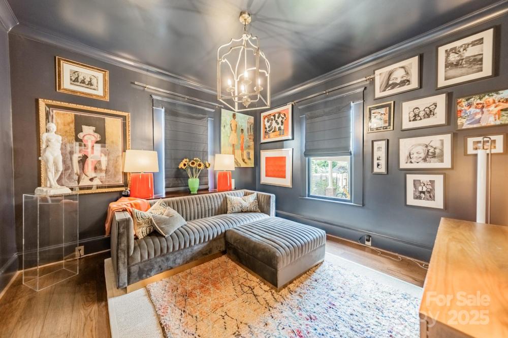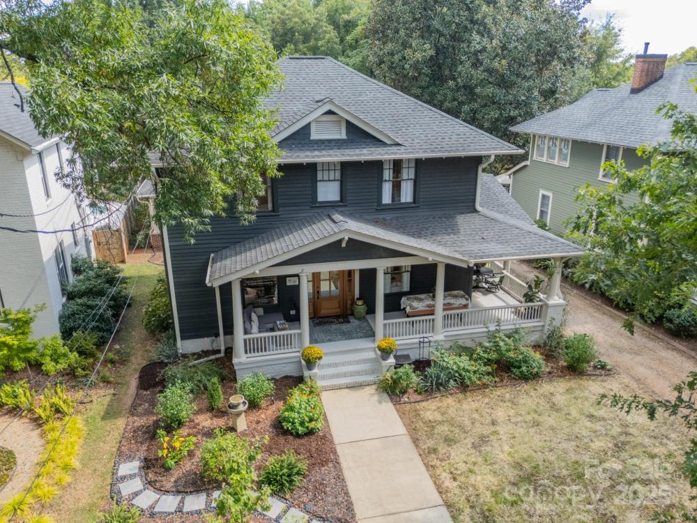 Welcome to this beautiful 1926 gem in the heart of Elizabeth, one of Charlotte’s oldest and beloved neighborhoods. Nestled just minutes from Plaza Midwood, the new Commonwealth development, and 7th Street’s vibrant restaurants and shops, this home combines timeless character with modern comfort. Step inside and be greeted by light-filled living spaces showcasing original charm and thoughtful updates. Elegant hardwood floors and stylish lighting fixtures create a warm, inviting atmosphere. The living areas flow seamlessly, featuring two distinct gathering rooms, anchored by a fireplace and surrounded by custom built-ins and designer finishes. The bedroom downstairs is currently being used as an intimate den. The chef’s kitchen boasts custom cabinetry painted in a rich navy, open shelving, a professional-grade range, and plenty of prep space. The adjacent dining and entertaining areas make this home perfect for both intimate evenings and lively gatherings. Upstairs, you’ll find three spacious bedrooms and two full baths, offering comfort and flexibility for family and guests alike. Outside, enjoy a generous, nicely landscaped lot with mature trees and manicured beds. The detached carport includes a conditioned office space, perfect for working from home, a studio, or a creative retreat. The backyard patio provides a private oasis with space for outdoor dining, lounging, and entertaining. This rare Elizabeth beauty is the perfect blend of classic architecture, curated design, and prime location—just waiting for its next chapter.