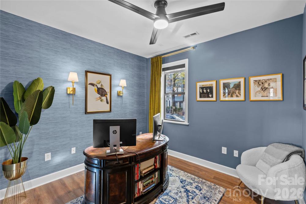 Nestled on a picturesque tree-lined street just moments from Uptown, this impeccable renovated three-level residence combines sophistication, comfort, and convenience. The open-concept main level features a seamless flow between the living, dining, and kitchen areas, an inviting space for both daily living and entertaining. The third floor showcases an elegant primary suite complete with a full bath and a flexible loft, perfect for a home office or sitting area. A private rooftop terrace offers sweeping seasonal views of the Uptown skyline. The lower level includes a guest bedroom, full bath, and additional flexspace with private patio access. Assigned parking completes this rare offering. Don't miss the opportunity to own a refined urban retreat in vibrant Charlotte.