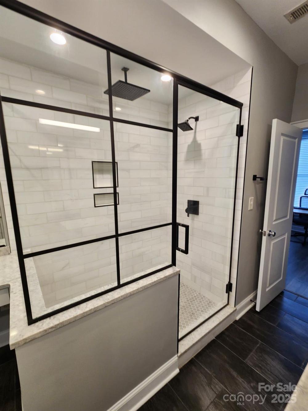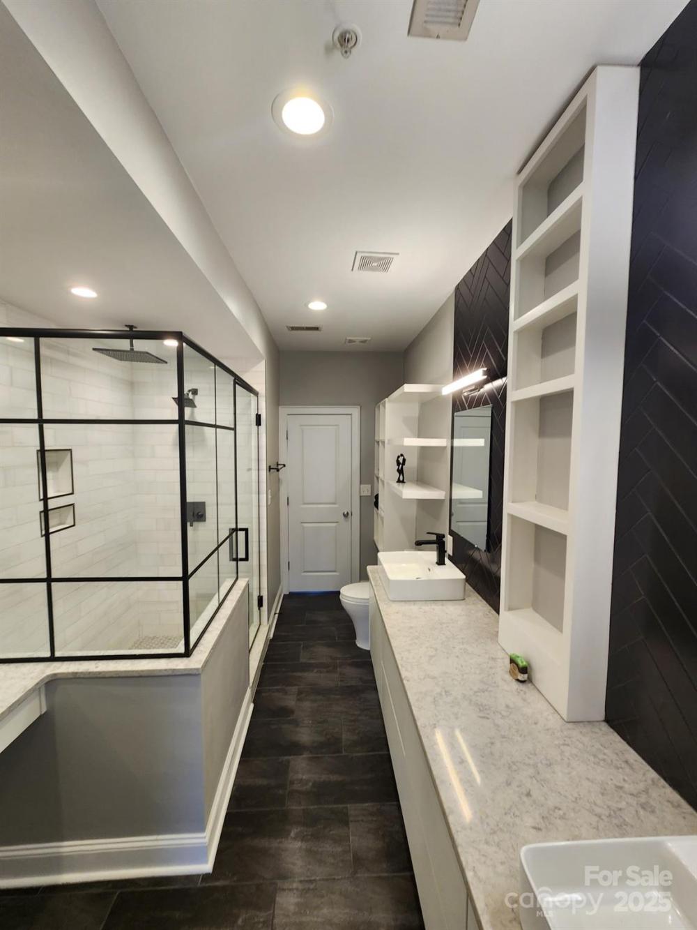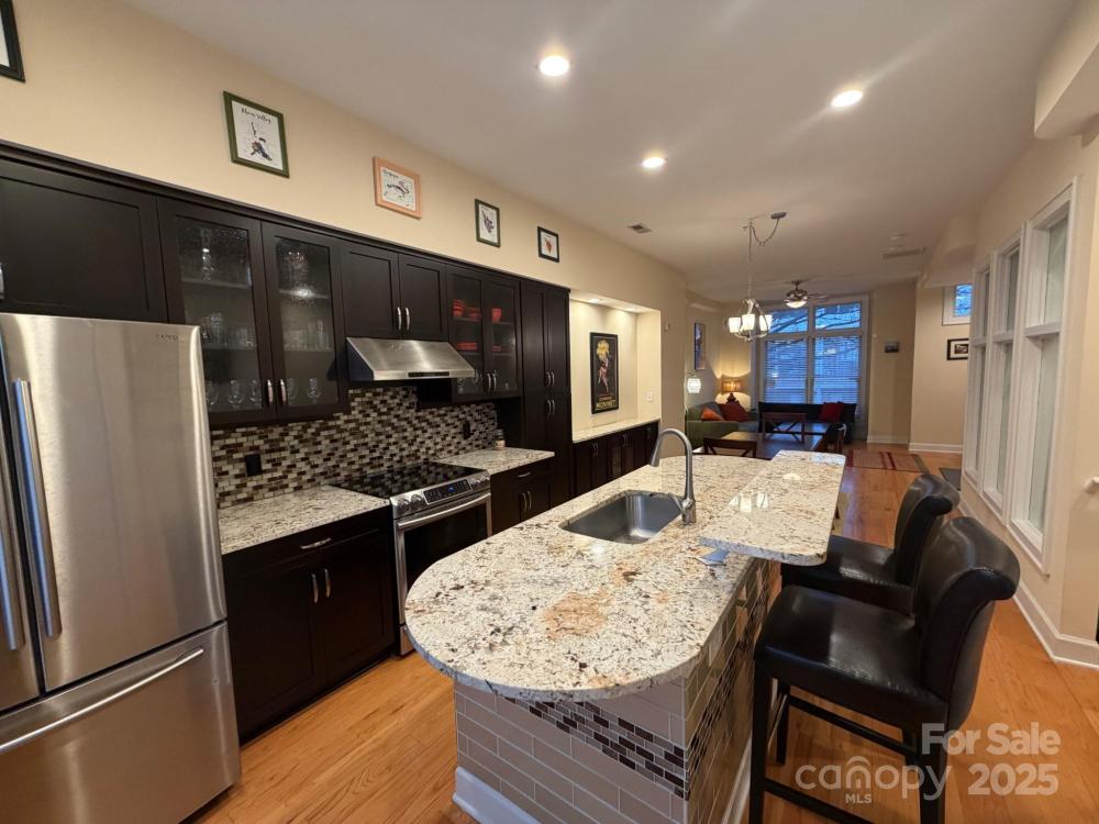 Enjoy stunning skyline views from the rooftop terrace, complete with a wet bar, in this well-maintained and updated townhome. Ideally located in the highly sought-after First Ward neighborhood, just blocks from the Light Rail, First Ward Park, Spectrum Center, and more. This tri-level townhome offers 3 bedrooms and 2.5 bathrooms, featuring a remodeled kitchen with a raised island bar, stainless steel appliances, granite countertops, and ample soft-close cabinetry. The open-concept layout is perfect for entertaining, with a conveniently located half bath just off the kitchen. The updated primary bathroom boasts a spacious tiled shower with granite accents, dual-sink vanity, and a built-in makeup nook/alcove. The lower-level bedroom includes a full ensuite bath, making it ideal for guests or a private office. Additional highlights include a rear-entry, off-street garage with space for one vehicle plus extra storage.