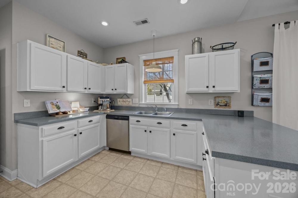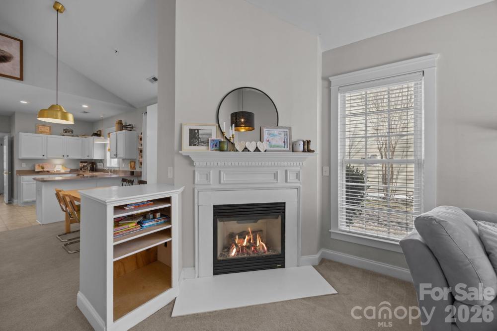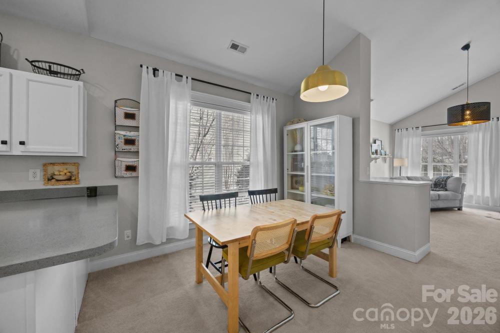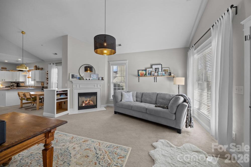 Looking for the perfect place to call home, or that desirable ranch floor plan... Look no further. This quintessential charming cottage style home blends warmth, character, and space in all the right ways. The open concept family room flows seamlessly into the kitchen, highlighted by soaring cathedral ceilings and a cozy fireplace, perfect for this cold winter. At the heart of the home, the spacious kitchen is sure to impress with abundant counter space, stainless steel appliances, a breakfast bar, and a dedicated dining area ideal for everyday living. A desirable split floor plan ensures privacy for the primary suite, complete with hardwood plank flooring, ceiling fan, and an adjacent En Suite featuring a generous walk-in closet. Enjoy the convenience of a detached 2-CAR GARAGE with easy access to the laundry and mud area. Situated on a corner lot, the home provides added privacy and a large side yard for outdoor enjoyment. The community features a clubhouse, outdoor pool, and playground. Recent upgrades include a new furnace and hot water tank. Located in the highly sought after and booming Huntersville area, this home is a fantastic investment opportunity. Prime location, just minutes from Lake Norman, a short walk to McDowell Creek Greenway trails, and close to Torrence Village shopping and dining. Easy access to Gilead Road exit and Highway 77 completes the package.