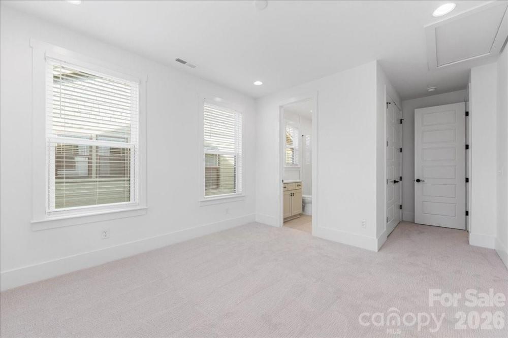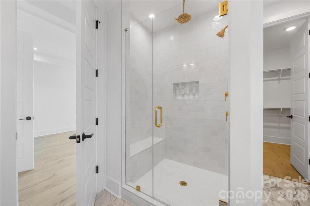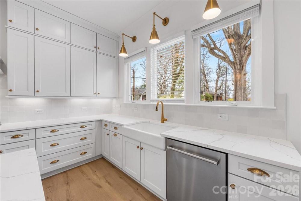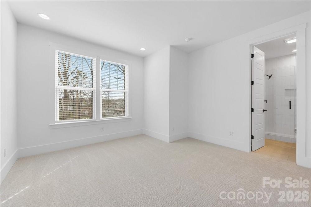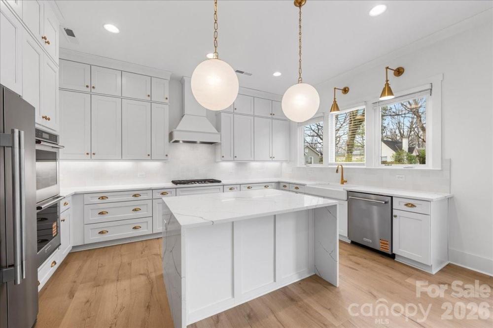 Stunning new construction in the highly sought-after Oakhurst neighborhood. This home offers a thoughtfully designed open floor plan with elevated, high-end finishes throughout. Wide-plank hardwoods flow seamlessly through the main living areas, creating a warm and inviting atmosphere perfect for both everyday living and entertaining. The chef’s kitchen is the heart of the home, featuring custom cabinetry, quartz countertops, a large center island with waterfall edge,designer lighting, tile backsplash, stainless appliances, and a walk-in pantry for ample storage. The open-concept layout connects the kitchen to the spacious living area, highlighted by a beautiful stone fireplace with wood mantle and abundant natural light. The dual sided fireplace creates a cozy den sunroom for additional living space on the main level. Flex room with built in desk and storage is great for crafts, studying or home office. A convenient drop zone keeps daily life organized, while the upstairs laundry room adds ease and functionality. The primary suite is located upstairs and serves as a true retreat with separate area perfect for workout space or a sitting area. The luxurious en suite bath features a large walk-in shower, soaking tub, dual vanities, and a private water closet. Secondary bedrooms are generously sized withg reat natural light and ample closet space. Blending modern design with timeless details, this Oakhurst home delivers comfort, style, and exceptional craftsmanship in one of Charlotte’s most desirable neighborhoods.