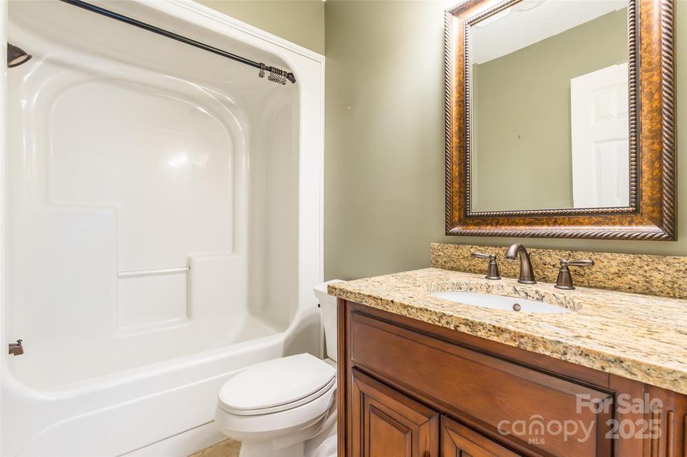 MUST SEE FRESH NEW LOOK - SELLER ENHANCED LANDSCAPING W/ ADDITIONAL TREES FOR BUFFERING IN THE BACKYARD! Impeccably maintained all-brick home in the highly sought-after Oakhurst community. This beautiful residence offers 4 bedrooms and 3 full bathrooms, inc. a main-level bedroom and full bath perfect as a guest suite, 2nd primary, or home office. The kitchen features granite countertops, SS apps, under-cabinet lighting, and a pantry. A frml dining room with bay window and chair railing provides a warm, inviting space. The spacious great room showcases a brick gas-log fireplace and rich hardwood floors throughout the main living areas. Upstairs, you’ll find the large primary suite, 2 additional bedrooms, and a bonus room. A metal railing and hardwood staircase add architectural detail, with storage tucked underneath. Sitting on nearly half an acre, the home has a landscaped yard, massive Trex deck, tall crawl space, tankless water heater, and an oversized garage with epoxy floors.