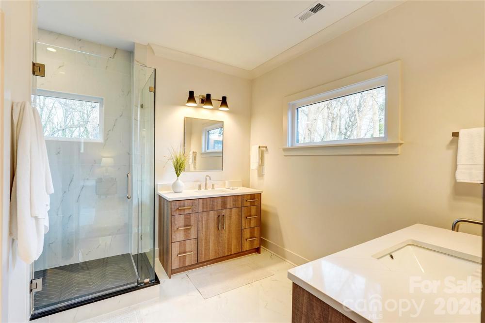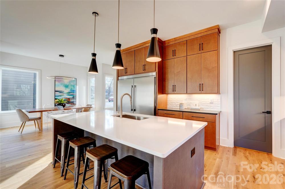Brand-new luxury living in one of Charlotte’s most sought-after enclaves. 4321 Raney Way is a true showcase home in the heart of Oakhurst, offering easy access to Cotswold, SouthPark, Midwood, and Uptown. Thoughtfully curated for its homesite, this new build features a rare full daylight basement and exceptional natural light throughout. Step through the two-story foyer into the main entertaining areas, where the light and openness immediately impress. The stunning kitchen offers cabinetry to the ceiling, quartz countertops, a professional-grade refrigerator/freezer, gas range with integrated vent hood, and a walk-in pantry. It flows seamlessly into the dining and living rooms, highlighted by a gas log fireplace and a dramatic wall of windows. Upstairs, three bedrooms include the primary suite with private balcony, custom walk-in closet, and spa-like bath. Bedrooms two and three share a connected bath with private vanities, and bedroom three also enjoys access to an incredible roof deck overlooking the streetscape. The daylight basement adds another bedroom and full bath, plus a spacious family room with wet bar and sliding glass doors to a 347-square-foot covered outdoor living area. Additional basement storage and a two-car garage complete the home. Enjoy peace of mind with a full builder warranty, including 10-year structural coverage. Right around the corner from coffee, a gym, and lunch/dinner options. Welcome home!