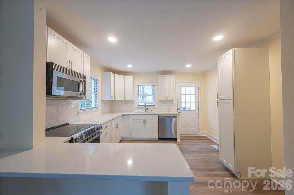 Wonderful mid century modern ranch home in desirable Oakhurst. This home has been recently renovated to include new kitchen, two full baths and three large bedrooms. Living room is flooded with light and sets off the beautifully refinished original hardwood floors. Notice the wide base moldings and attention to detail. Living room opens into a beautiful new kitchen to include quartz countertops, custom cabinets, island for those special meals. New exterior doors and updated appliances. The flooring in the kitchen is premier wide plank luxury vinyl. Primary bedroom suite includes en-suite bathroom for a private oasis. Ample his and hers closets along with a small sitting area enhances the ambience. The primary bath includes full floor to ceiling tile with all new fixtures. Second bedroom is light filled and includes refinished original hardwood floors. Bedroom three could easily be used for playroom, den or that special guest bedroom filled with light and warm rich hardwood floors. The hall bath includes an original pedestal sink indicative of the period of the house as well as full floor to ceiling tile shower. Convenient laundry closet off the hall with a stack washer and dryer that conveys. All this house on over 1/3 acre in convenient Oakhurst, it’s all anyone could want.