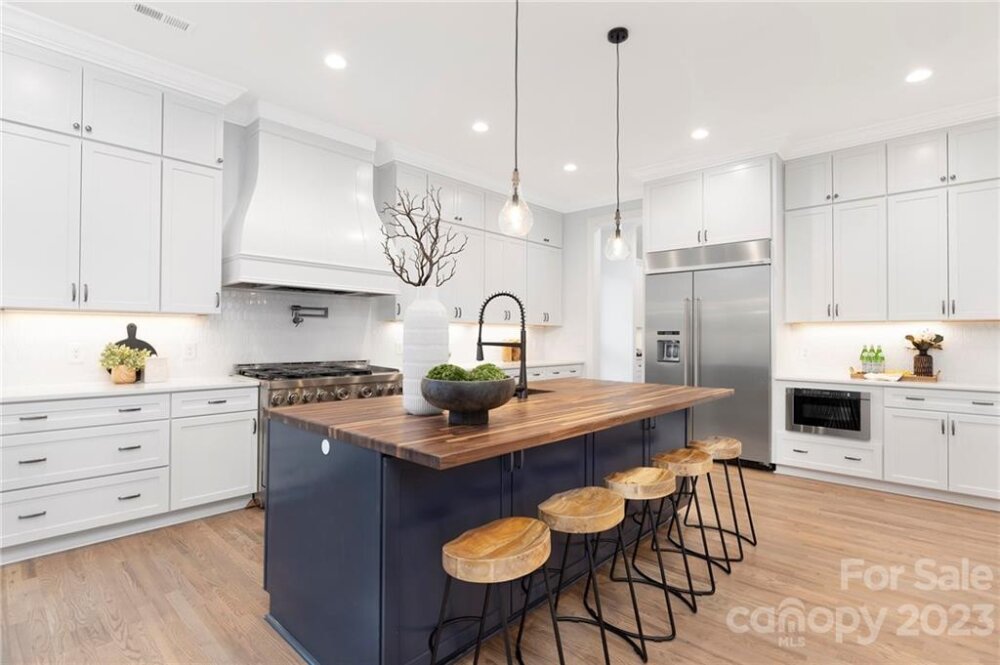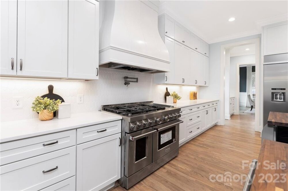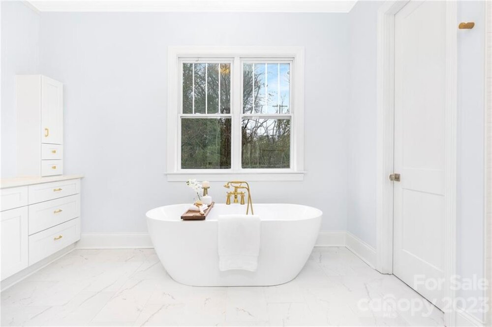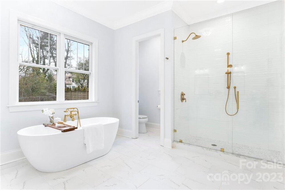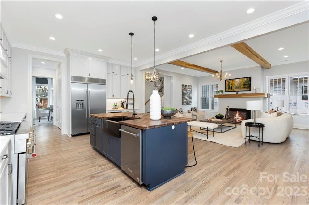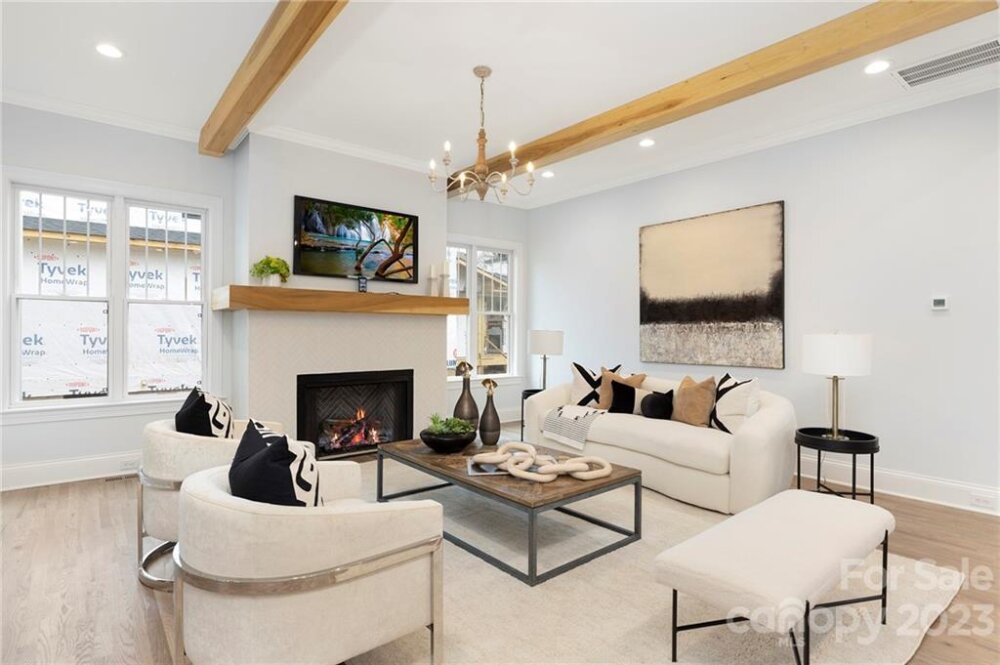 Gorgeous custom home in the heart of highly-sought-after Sedgefield rebuilt from the foundation. The first floor boasts grand 10-ft ceilings and high-end finishes throughout, an open floorplan living room w/ gas fireplace, large kitchen w/ quartz countertops and custom cabinetry, and breakfast nook. Stunning hardwoods, custom trim, and accent details to offer character as soon as you walk through the front door. Owner’s suite with his and her closets, a large walk-in shower, and a generously-sized freestanding tub. The main floor also includes a formal dining room, study, walk-in pantry, and full laundry room. Upstairs you will find 9 ft ceilings throughout w/ 3 additional bedrooms, 2 full bathrooms, and a large bonus room. This beautifully modernized traditional style home features all new plumbing, electrical, and HVAC and efficient LED can-lighting. All bathrooms have custom cabinetry and quartz tops. Located on a quiet, friendly street, w/ a large backyard perfect for entertaining.