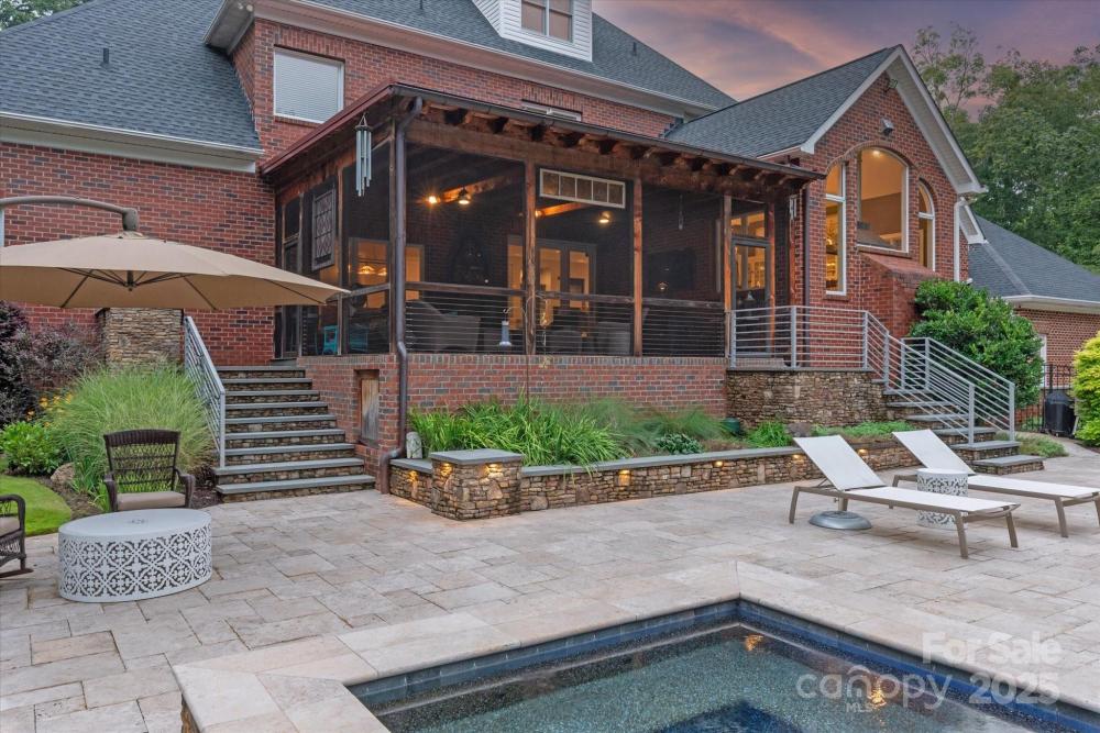 Welcome to your private retreat - a stunning luxury estate on over 2 acres and surrounded by undisturbed nature. Offering nearly 8,000 square feet of refined living space this home is in prestigious, gated Sedgefield. From the moment you arrive, the circular driveway, manicured lawn, and stately curb appeal set the tone. The main level spans over 3,500 square feet, flowing effortlessly onto the screened porch and outdoor entertaining areas - perfect for large gatherings, sporting events, or quiet relaxation. Originally built in 2000 and fully remodeled in 2018, this home now includes a show-stopping oversized heated saltwater pool and a kitchen that is every chef's dream. Gourmet kitchen with commercial-grade appliances, large scullery, and endless natural light! Primary Suite on main level and upper level - both with spa baths and custom closets. Upstairs includes 2 additional bedrooms with ensuites and a spacious loft. 3rd floor is a private bedroom with full bath. Basement level offers pool bath, recreational spaces and endless storage. 4-car oversized garage is constructed for lifts — ideal for the car collector! This home was built for both entertaining and everyday luxury. Whether you're relaxing poolside, hosting a crowd, or enjoying a quiet evening at home, every square inch of this estate reflects quality and thoughtful design. Top rated Marvin Ridge Schools!