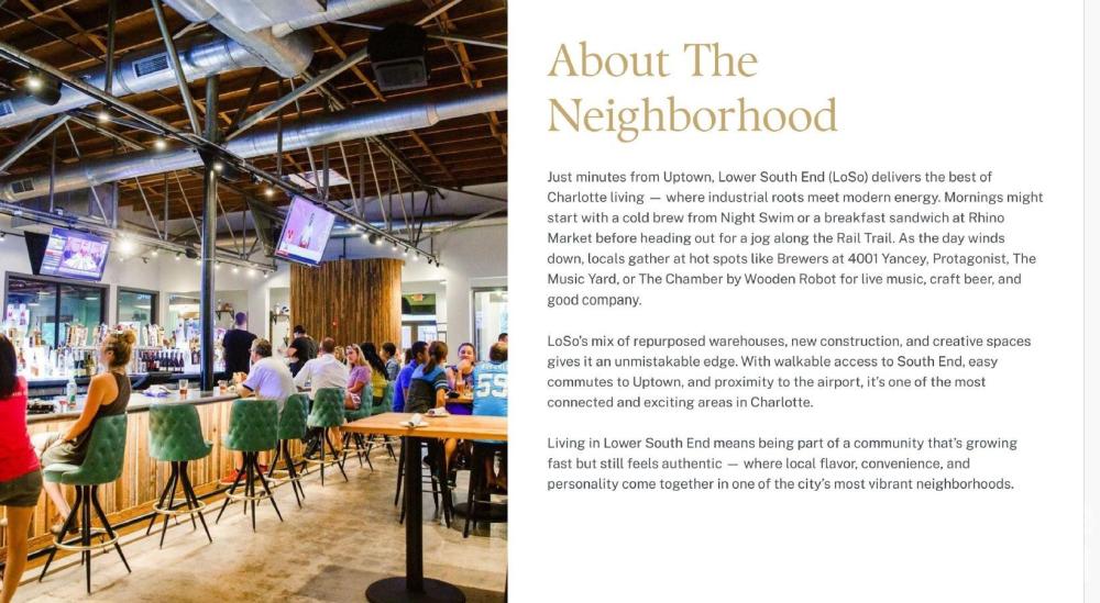 Price Points: If you are looking for that amazing new loft with floor-to-ceiling windows looking out over the beautiful buildings of Uptown, you have found your answer with Southend. Condos range from $180,000 for a small starter to more than $2 million for a high-rise penthouse.