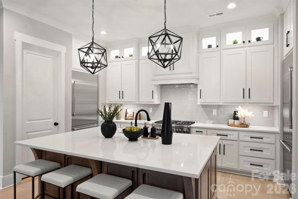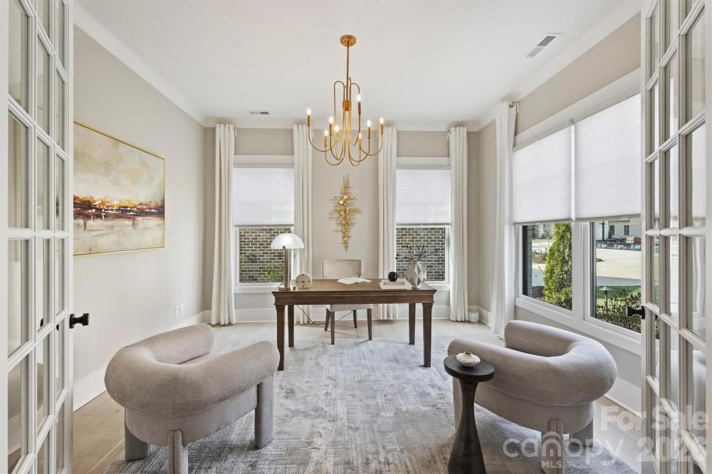 Welcome to The Courts of Prince Charles, an exclusive enclave of 10 new construction homes nestled in the heart of Foxcroft. Where modern comfort meets exquisite craftsmanship, these luxurious full-brick homes are engineered for a peacefully quiet interior—while offering unmatched convenience to everything SouthPark has to offer. Designed with both elegance and function in mind, this home features a primary suite on the main level, hardwoods throughout, and an open-concept layout bathed in natural light. The stunning kitchen is a true chef’s dream, showcasing handmade white-painted maple cabinetry, designer lighting and finishes, gorgeous quartz countertops, and an oversized island with farmhouse sink. High-end Thermador appliances, including two refrigerators, elevate both everyday living and entertaining. Custom shelving in all closets, laundry rooms on both levels, Ply Gem Mira Series windows, and a fully foamed attic provide exceptional insulation, energy efficiency, and soundproofing. Enjoy outdoor living year-round on the covered back porch with a wood-burning fireplace, wired for sound and overlooking a professionally landscaped yard with full irrigation. Designer window shades—including a remote-controlled shade for the sliding glass doors—add both style and convenience. Perfectly positioned across from Charlotte Country Day School and moments from Foxcroft East Shopping Center—home to Barrington’s—this prime location is also just minutes to Phillips Place, SouthPark Mall, Red Rocks Cafe, The Fresh Market, and the charming neighborhoods of Myers Park, Dilworth, and Uptown. Lawn maintenance is included in the HOA, allowing for truly low-maintenance luxury living. Every detail has been thoughtfully considered—welcome home.