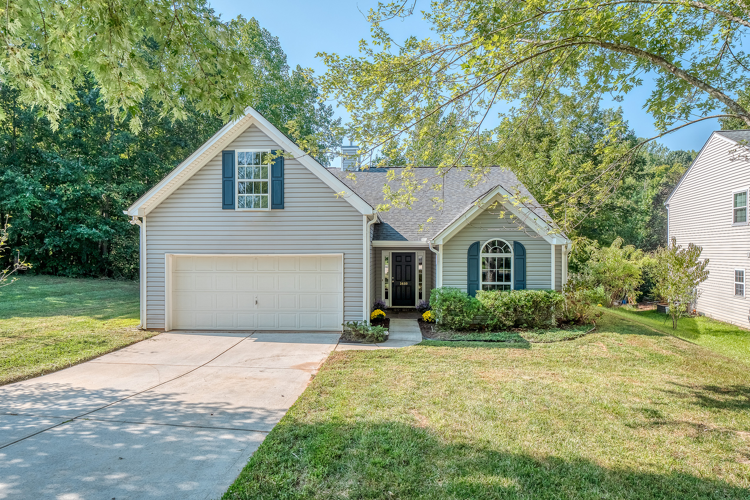 Description: This home is located in the heart of a wonderful neighborhood on one of the best lots backed by a natural-wooded area with a babbling brook and nature trail. So much privacy, you will think you are on vacation in the mountains! Host a party on the huge private deck, or just relax — there is not much yard work here. The split-bedroom plan is perfect for guests. Upstairs is a bonus space, perfect for a man cave or hobby room. The master is spacious with a walk-in closet, and the master bath features a separate shower and jetted tub. Neighborhood amenities include a wonderful swimming pool and clubhouse. Close to Route 521 and Providence Road shopping and restaurants!